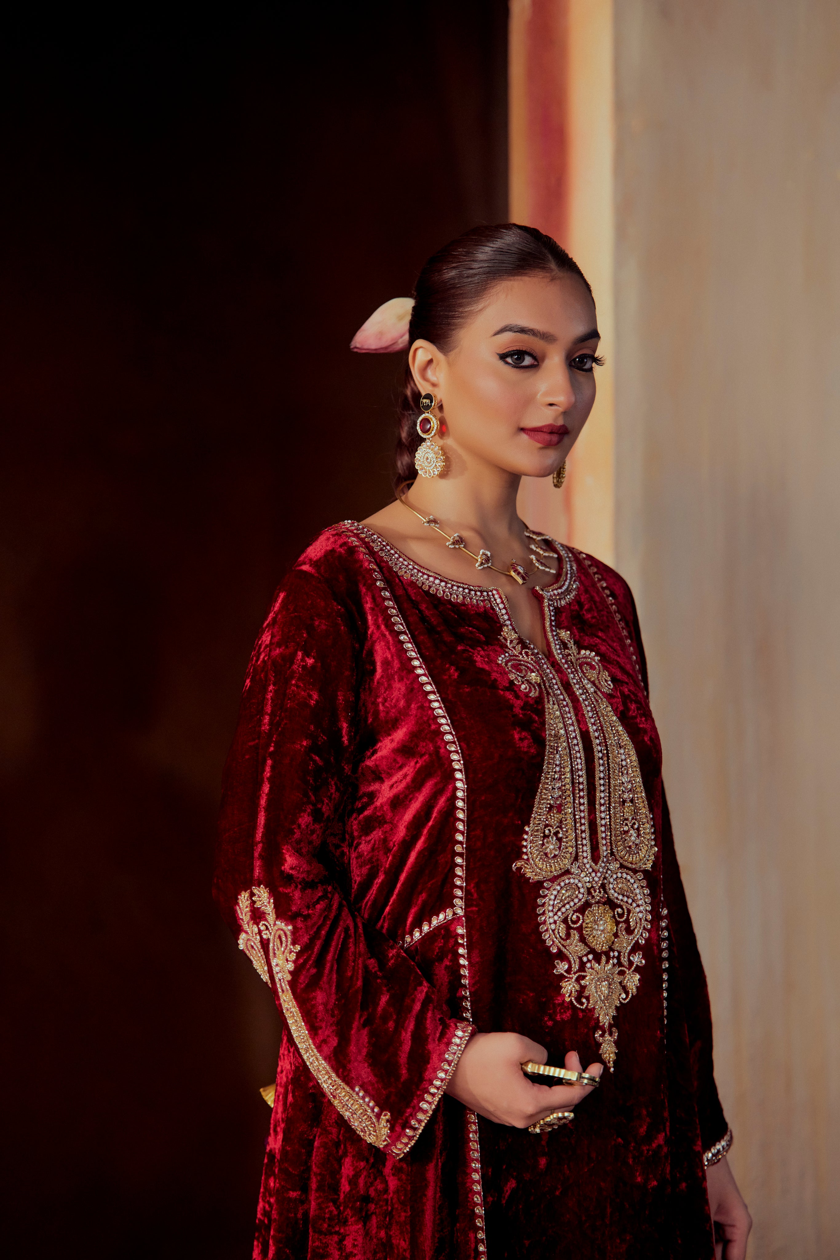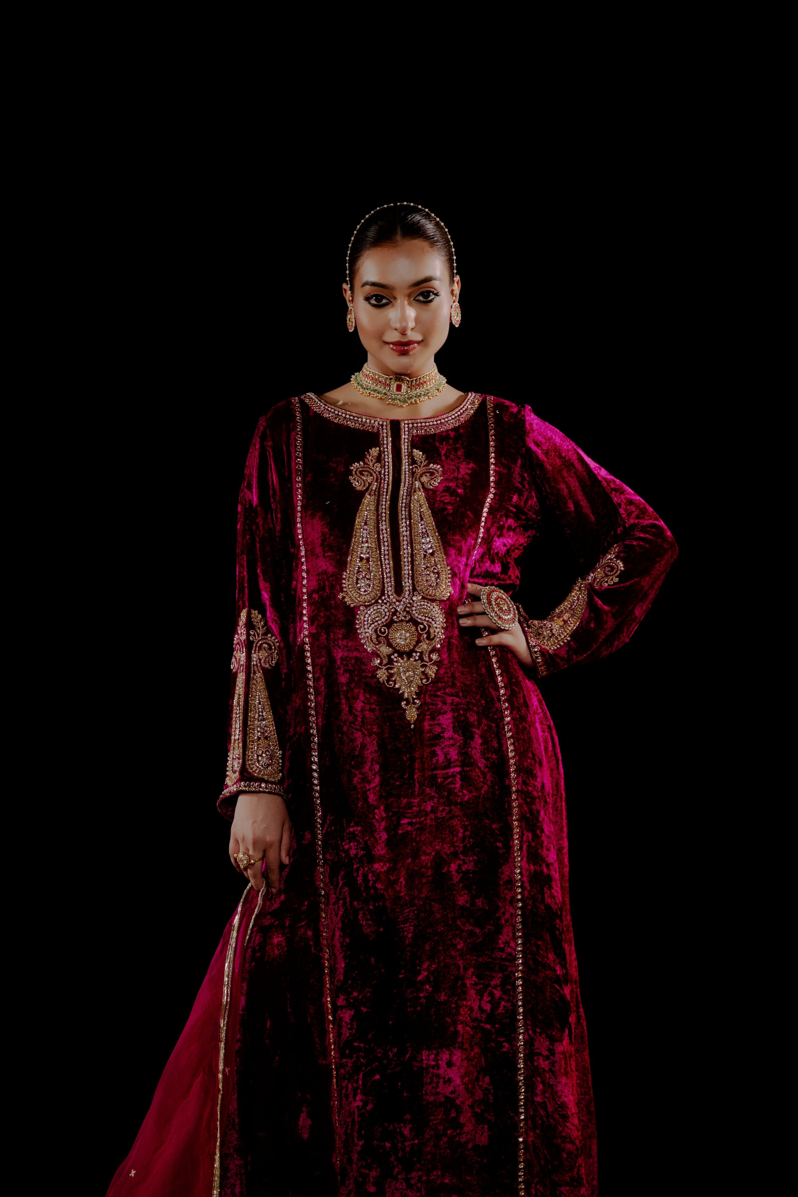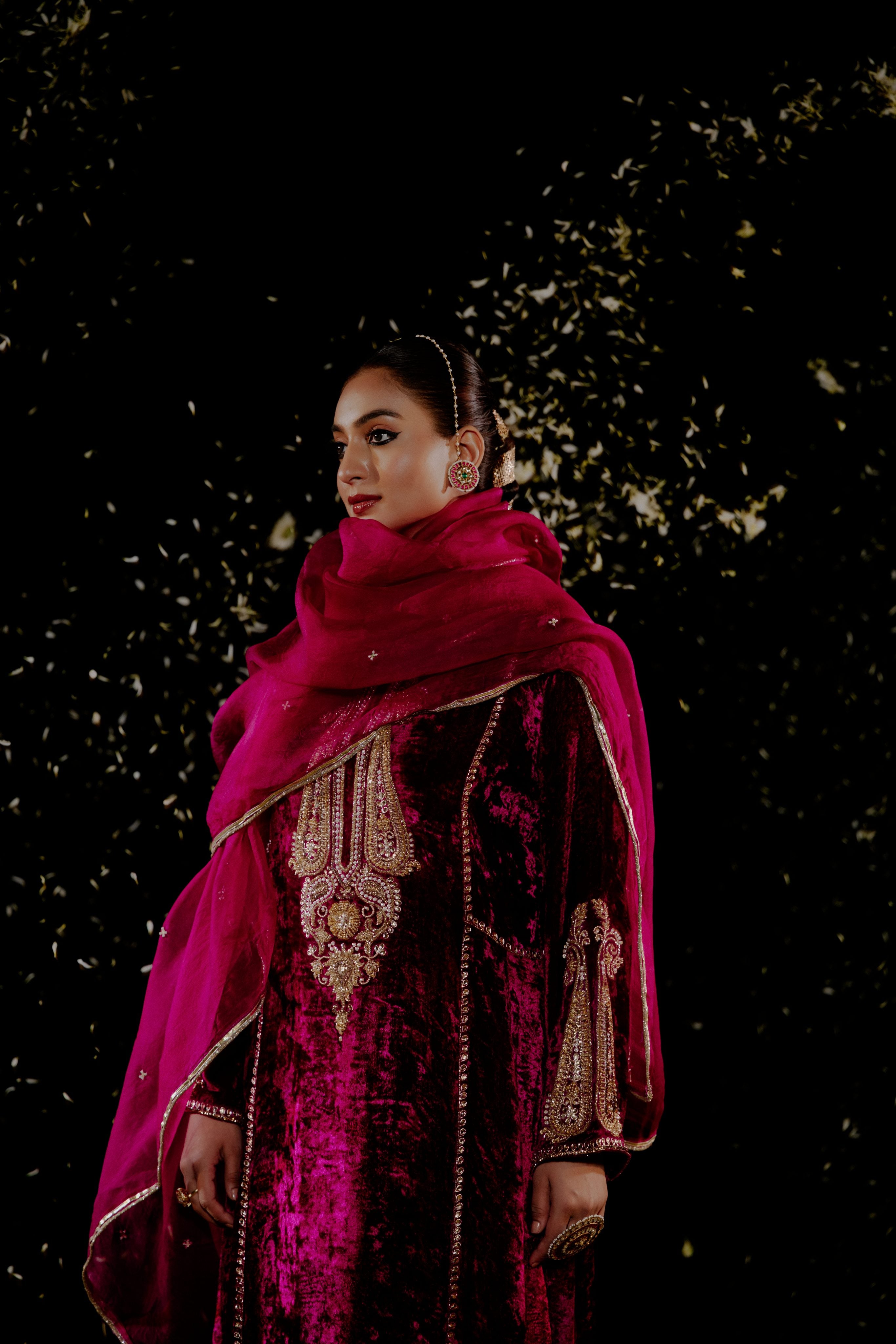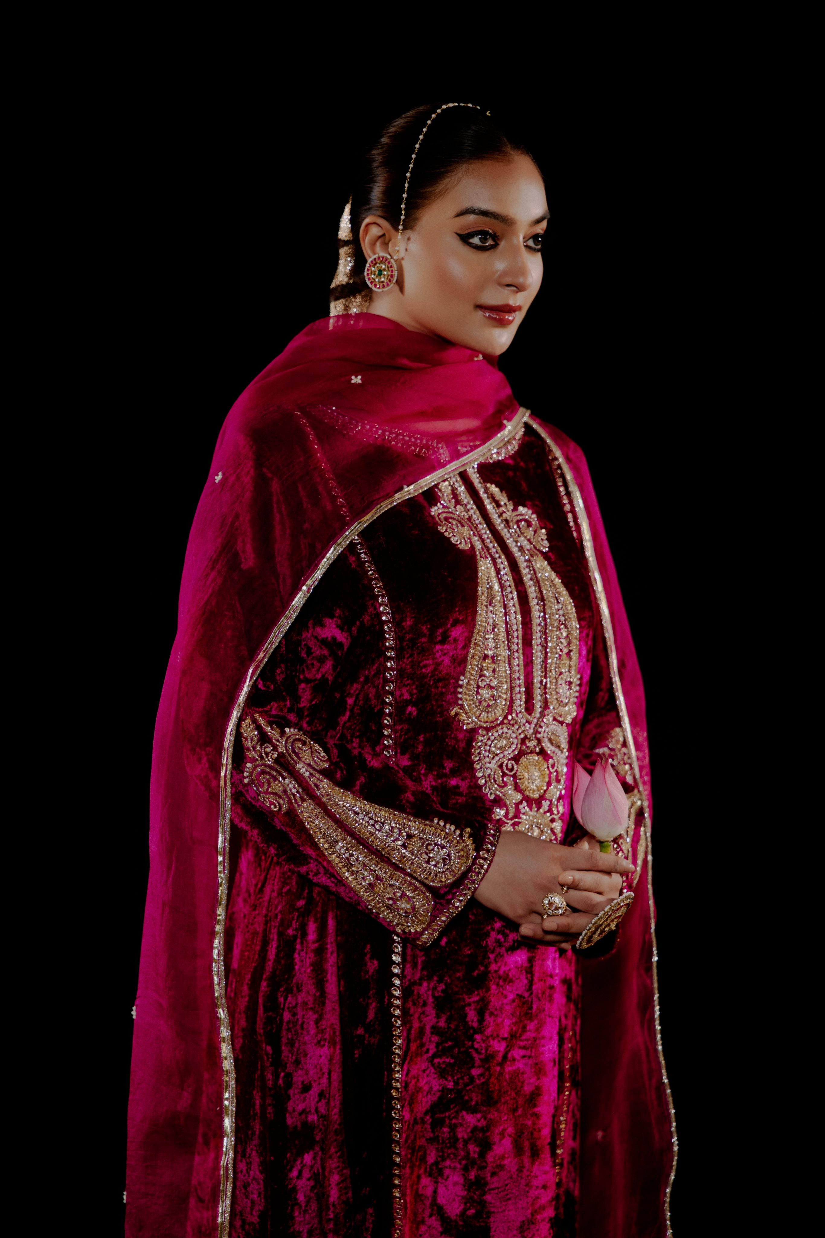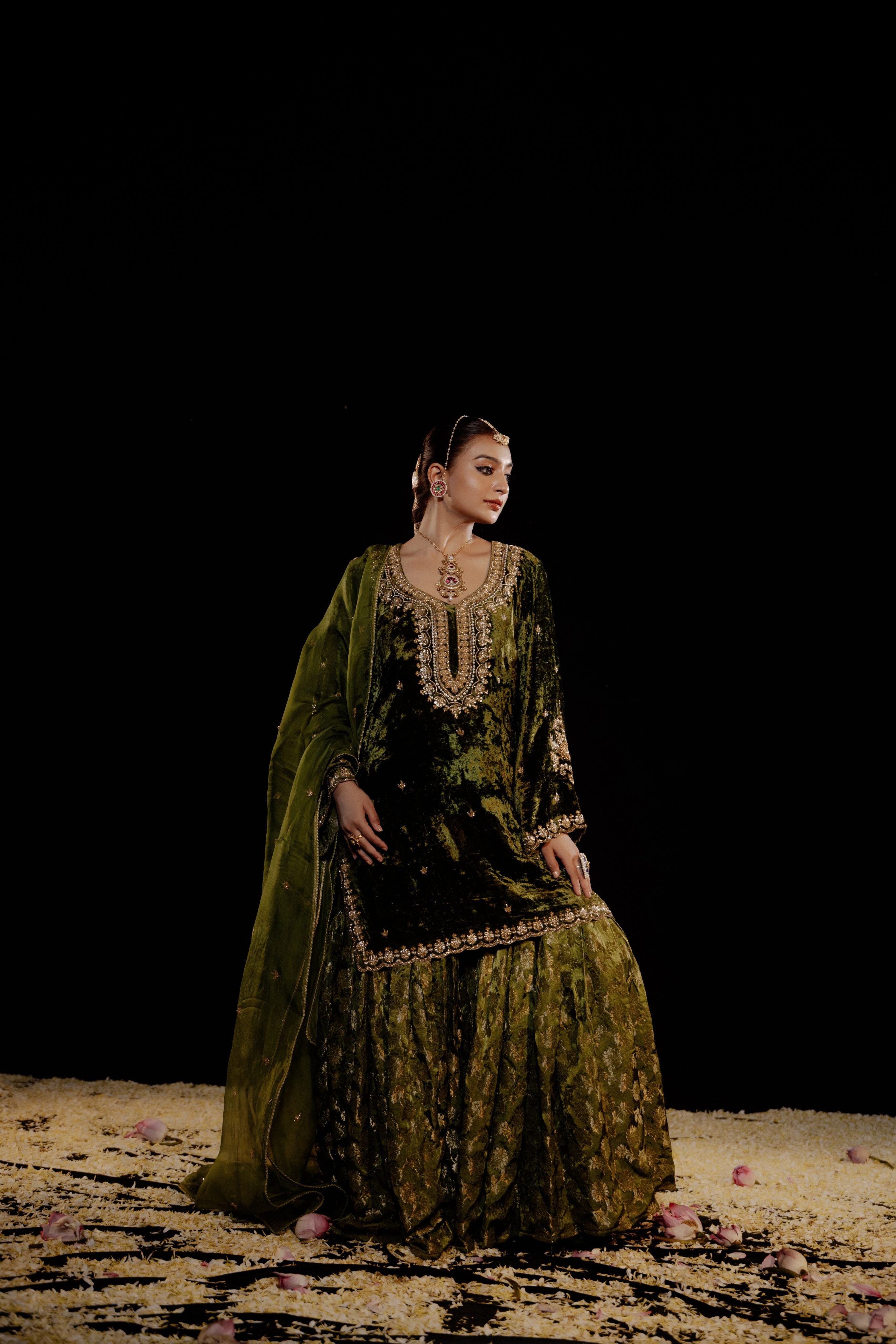 The Bottle Green Velvet Pakistani Suit Set from Gul is simply stunning. The intricate hand embroidery with zardozi, aari and cutdana work is absolutely exquisite and makes it perfect for weddings or other formal events. The velvet fabric is also very luxurious and comfortable to wear.