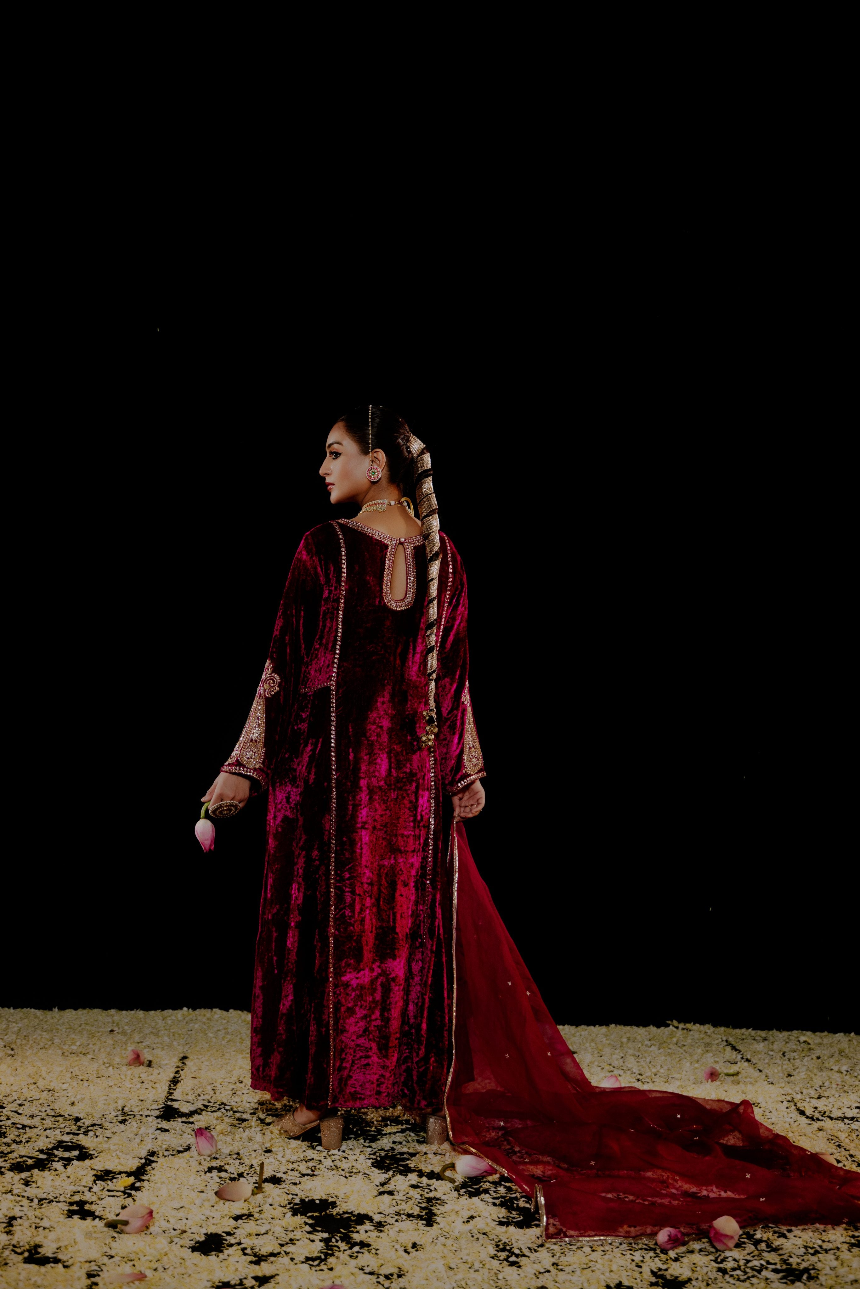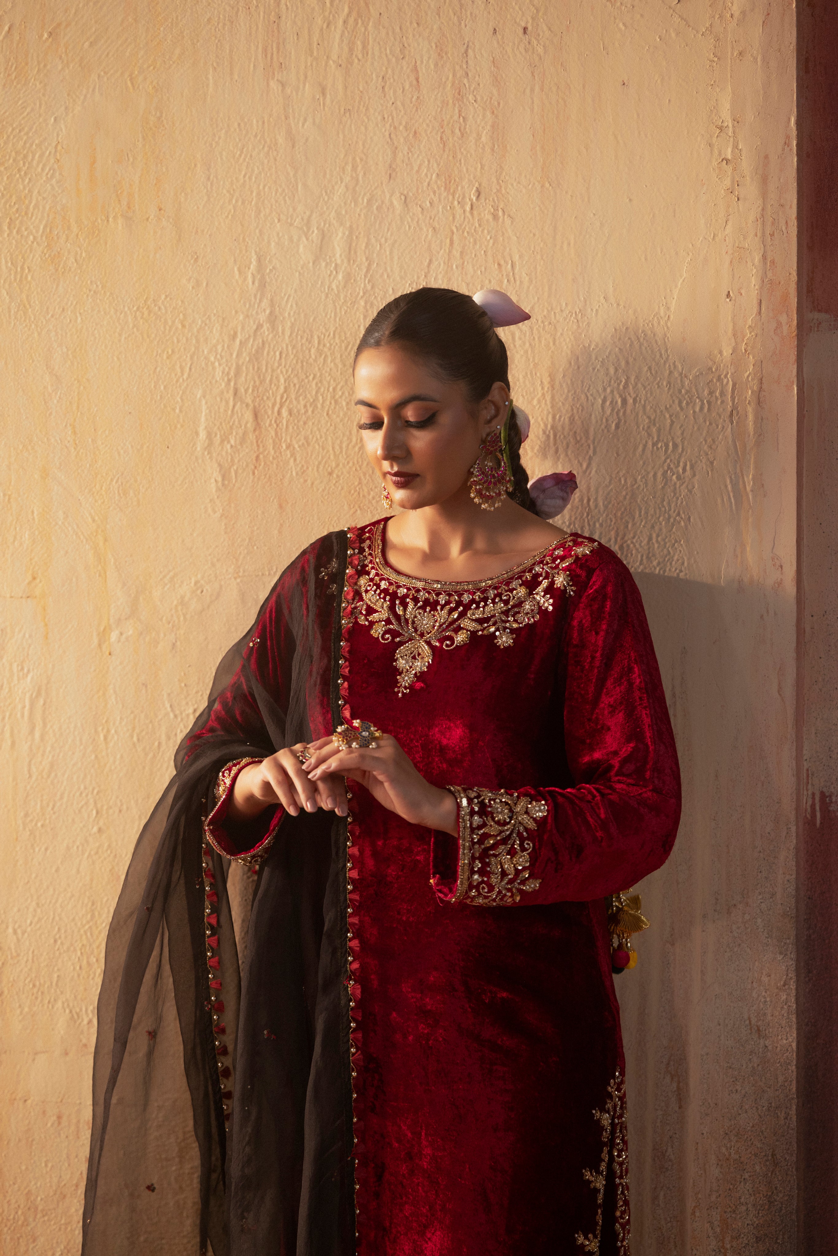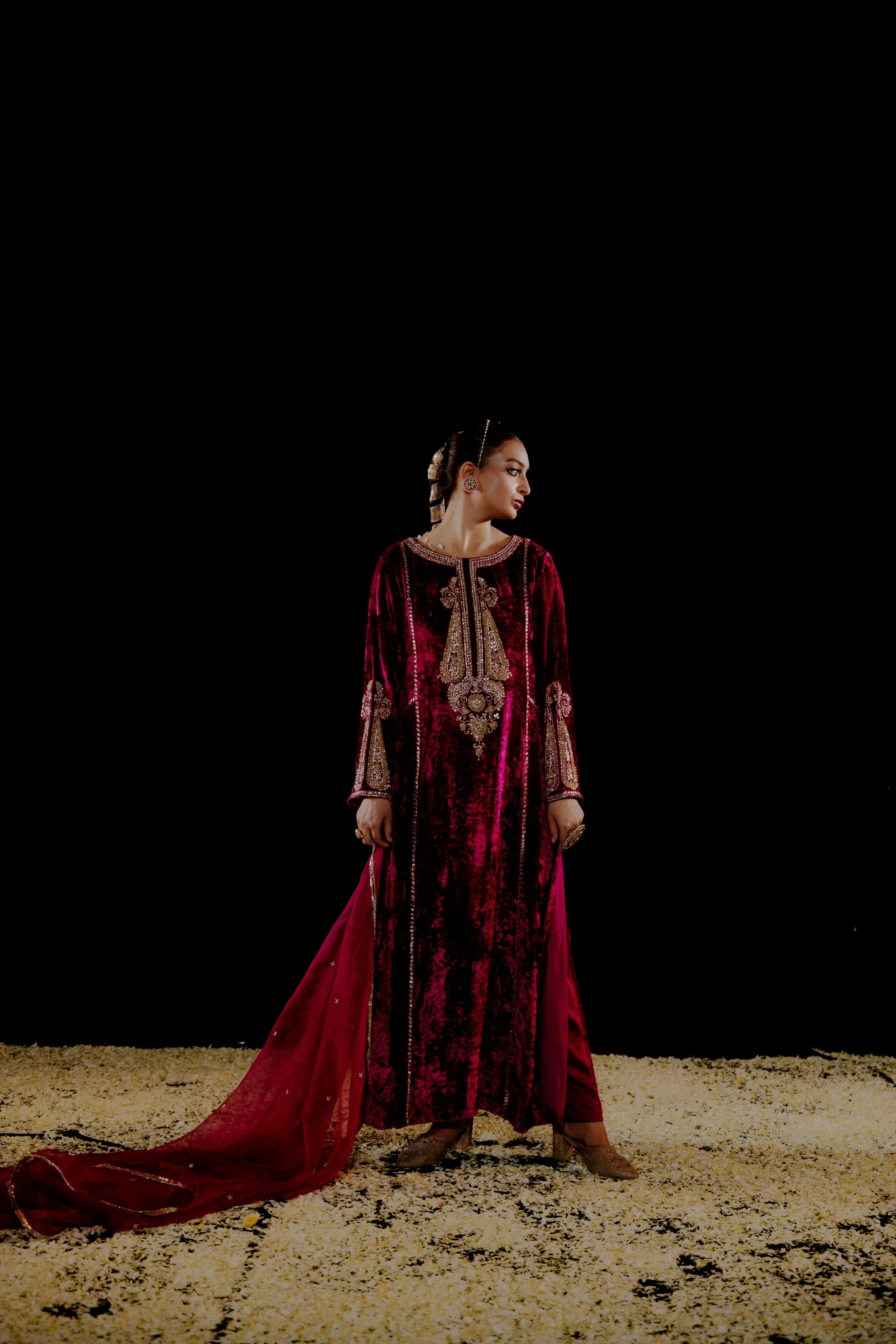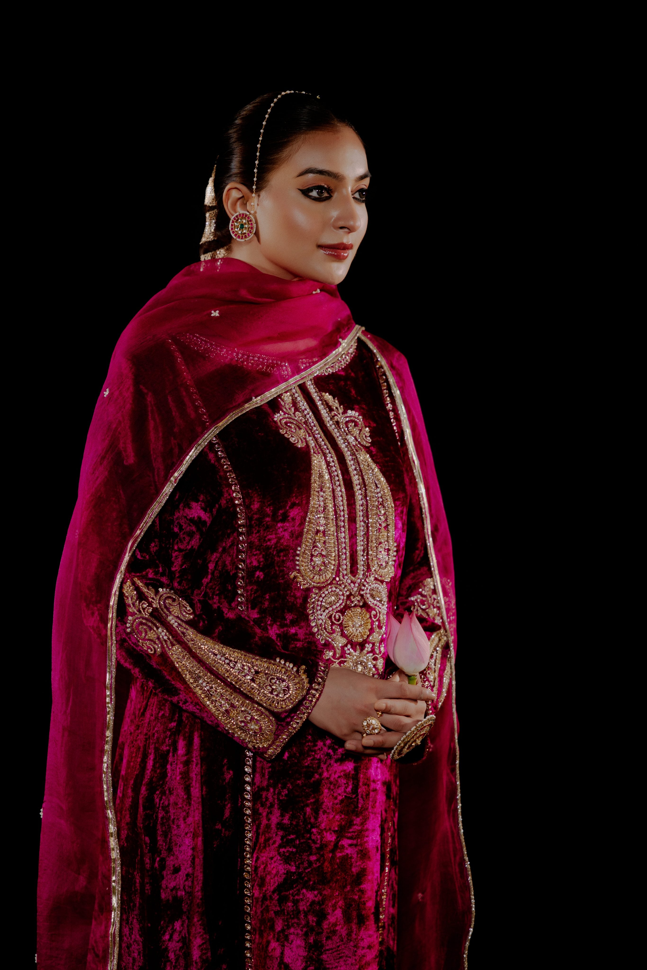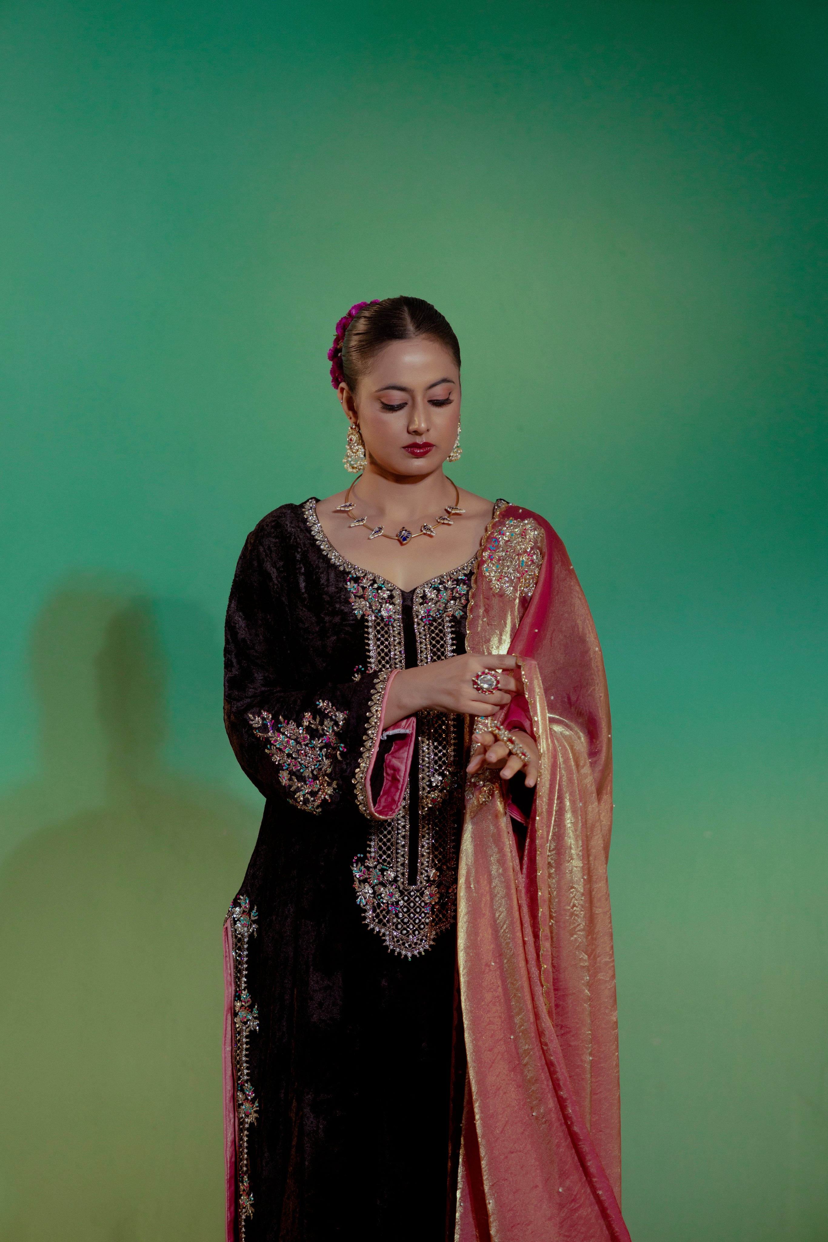 The Bottle Green Velvet Pakistani Suit Set from Gul is simply stunning. The intricate hand embroidery with zardozi, aari and cutdana work is absolutely exquisite and makes it perfect for weddings or other formal events. The velvet fabric is also very luxurious and comfortable to wear.
