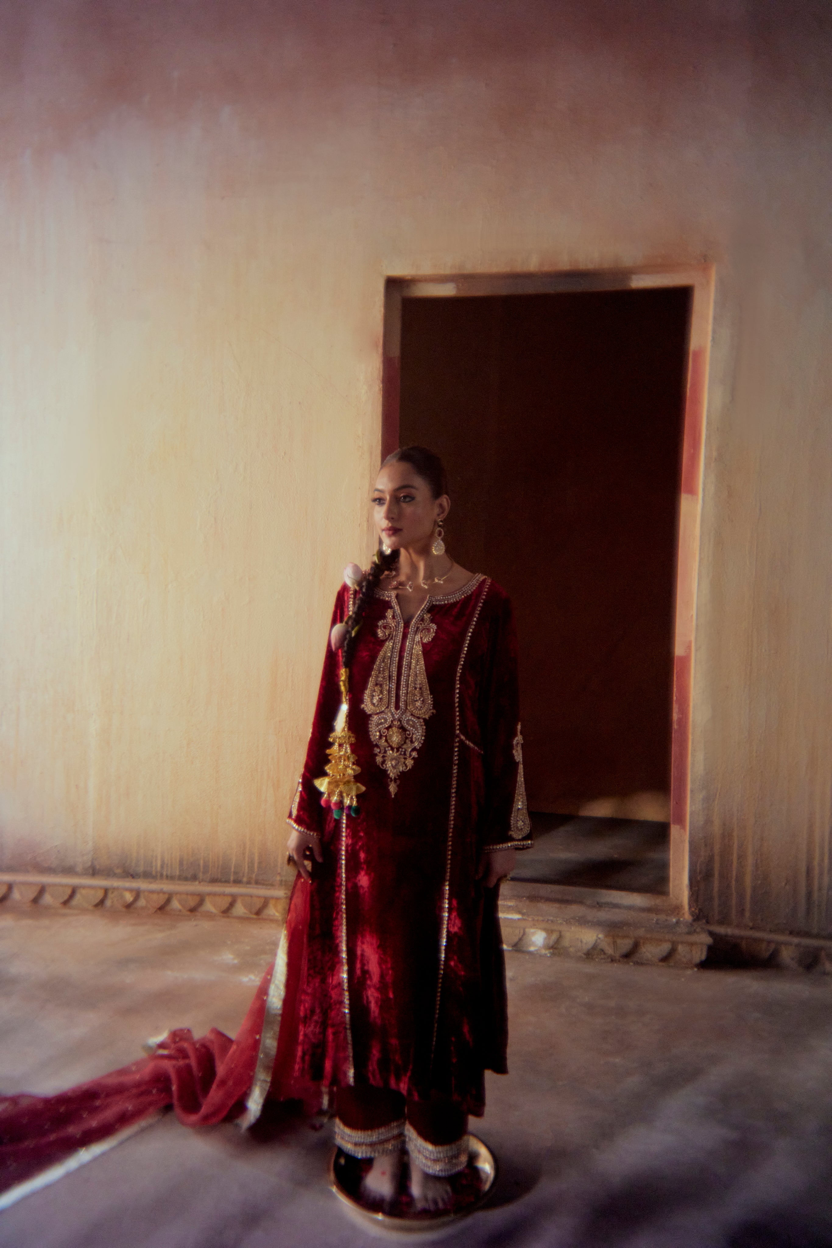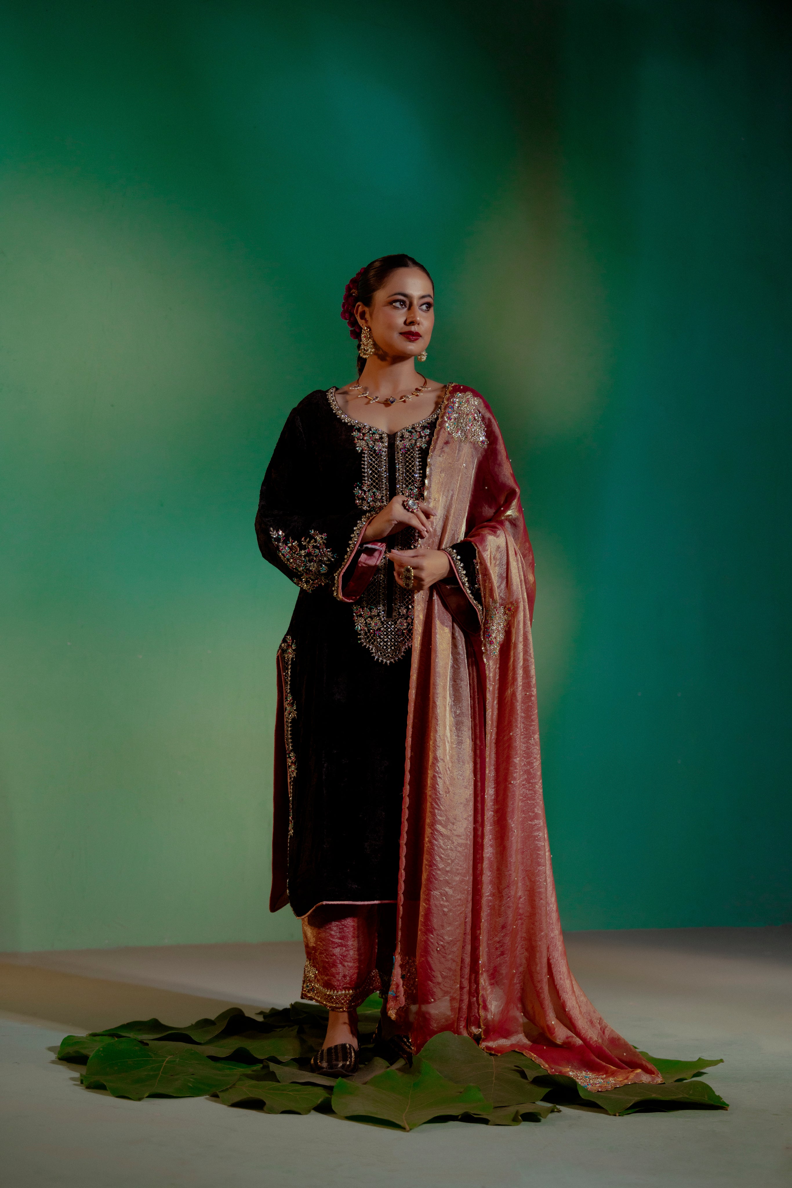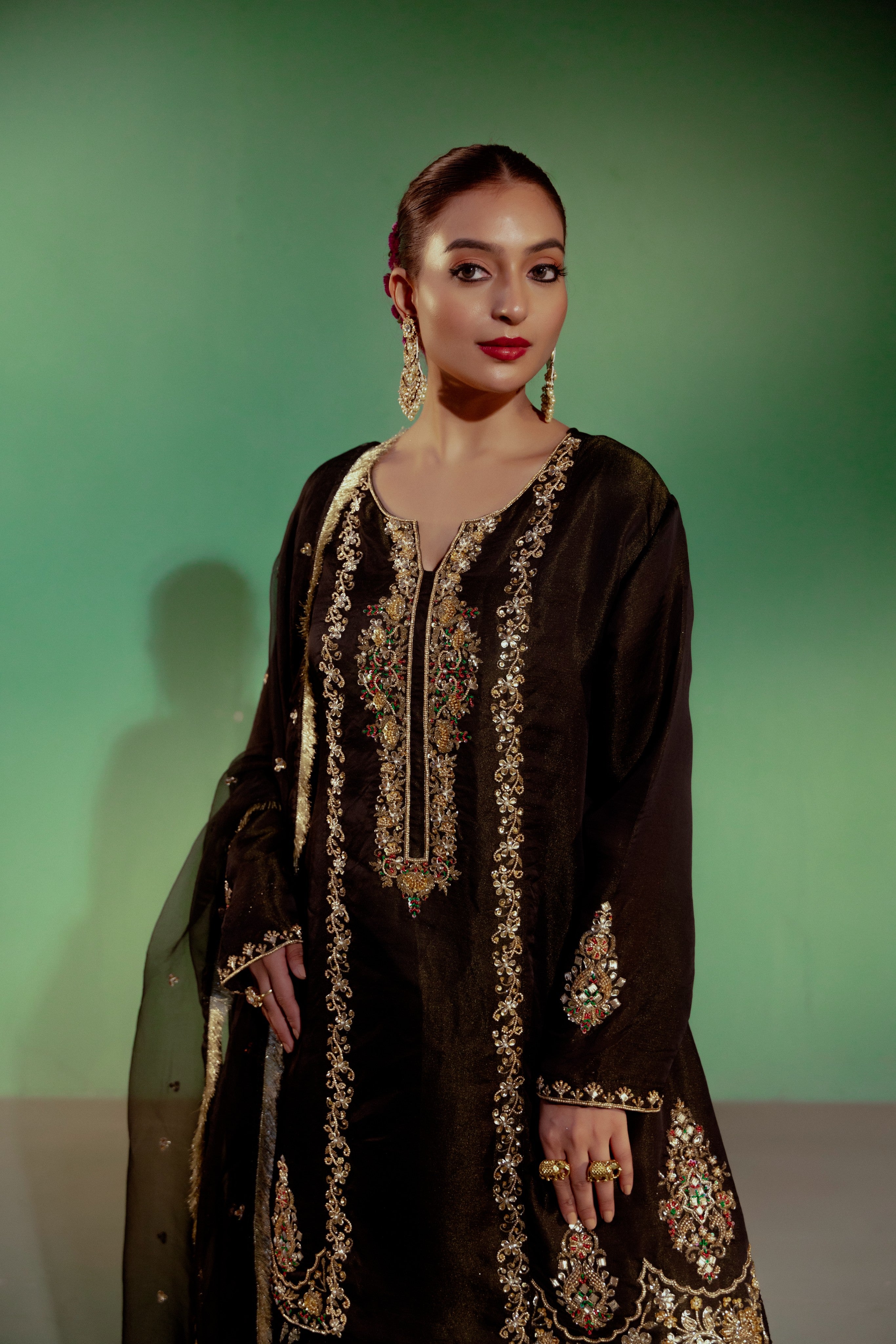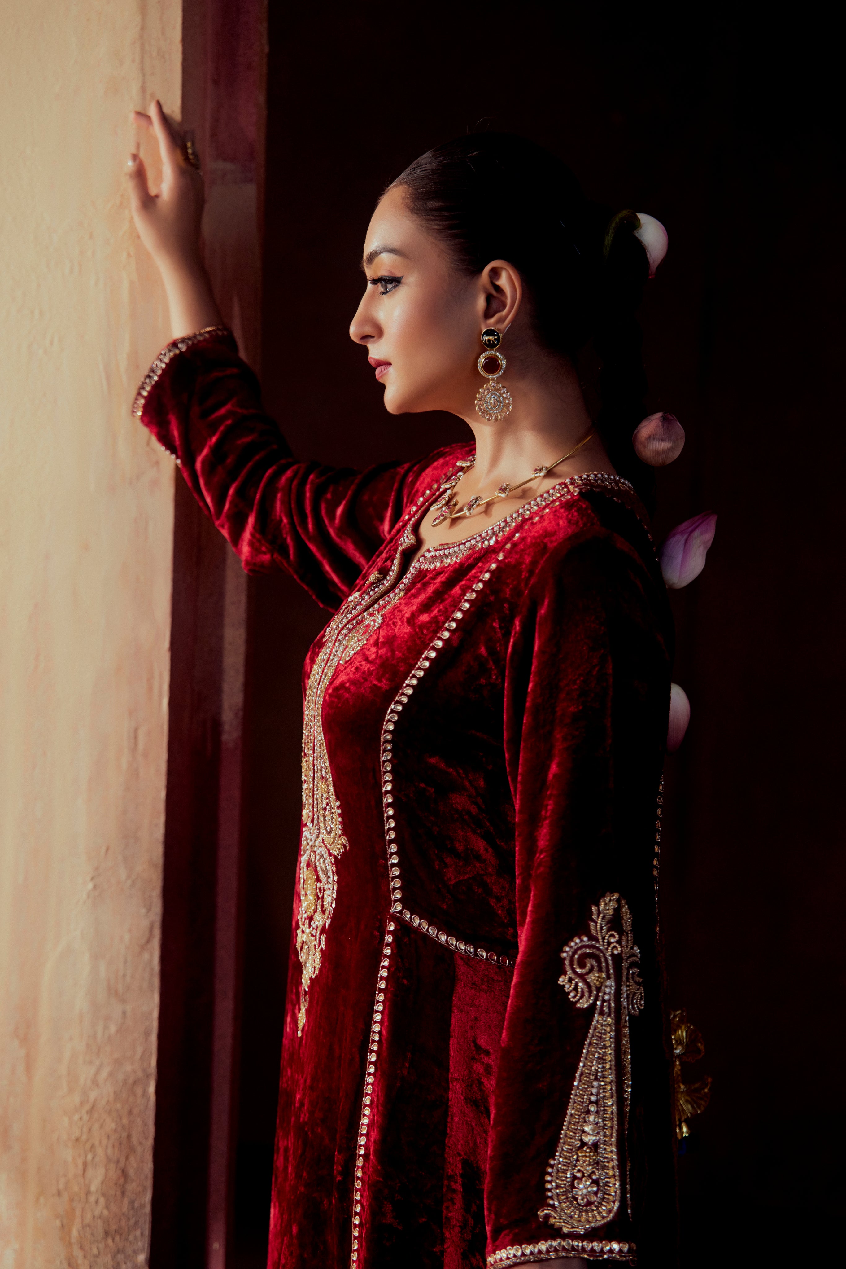 The Bottle Green Velvet Pakistani Suit Set from Gul is simply stunning. The intricate hand embroidery with zardozi, aari and cutdana work is absolutely exquisite and makes it perfect for weddings or other formal events. The velvet fabric is also very luxurious and comfortable to wear.