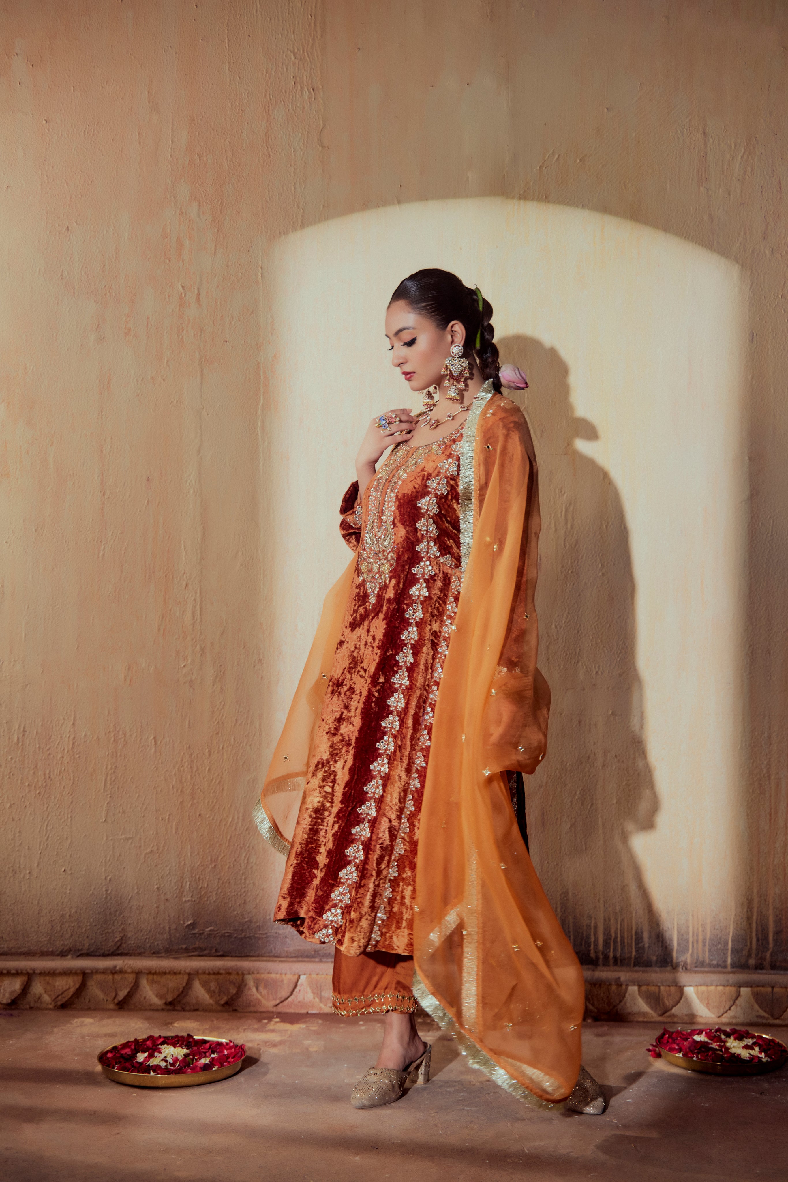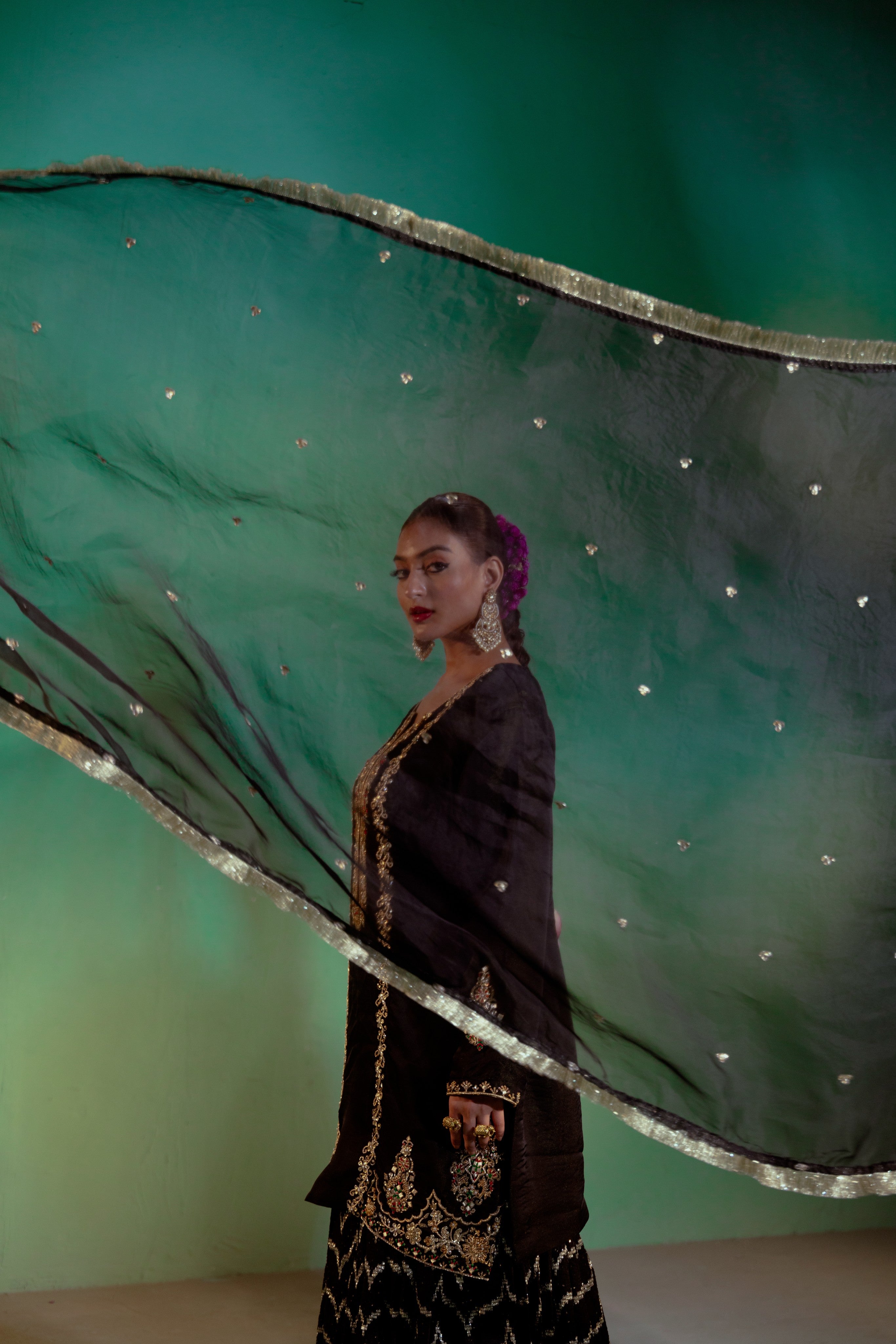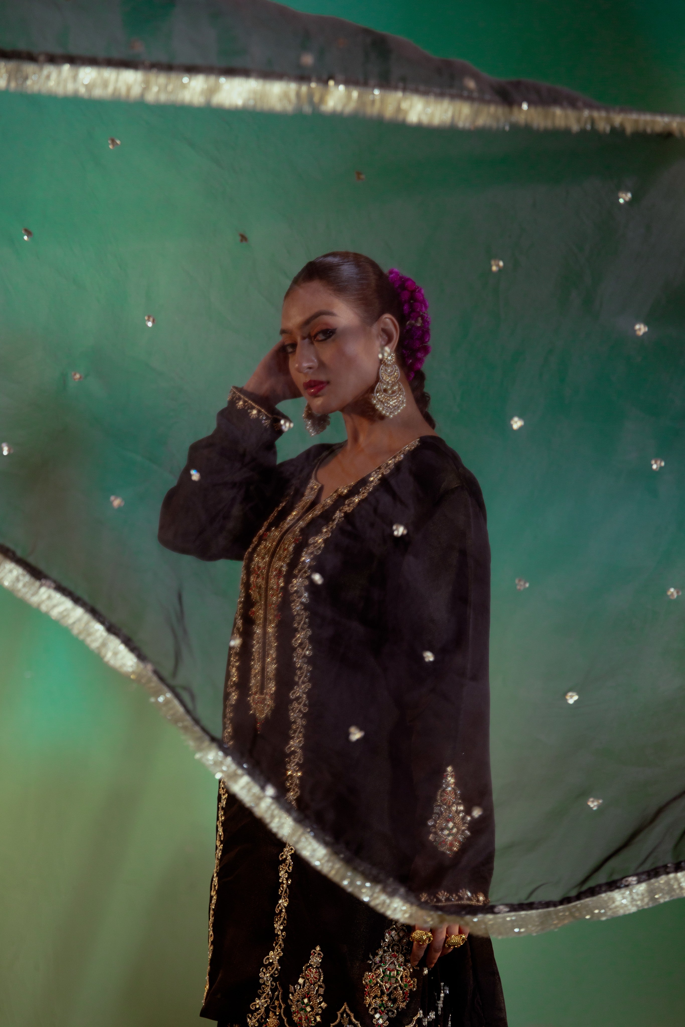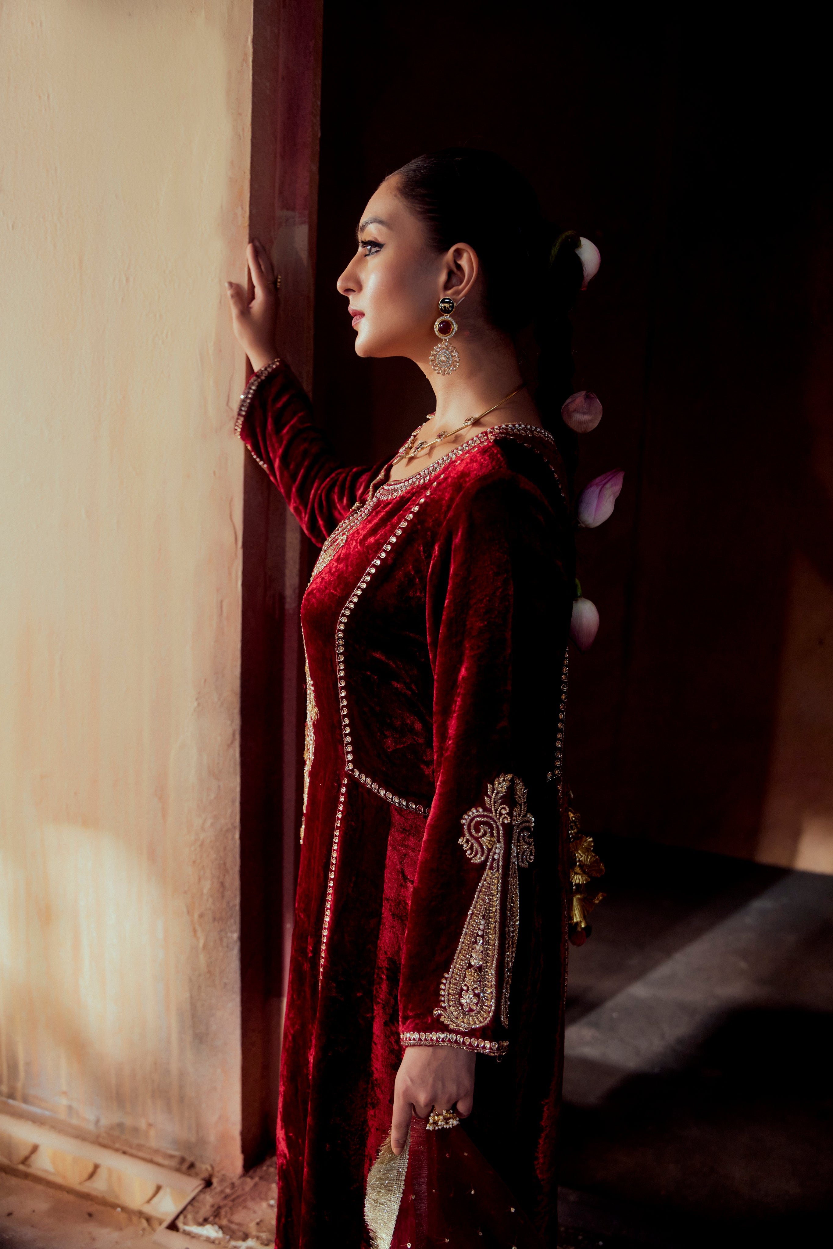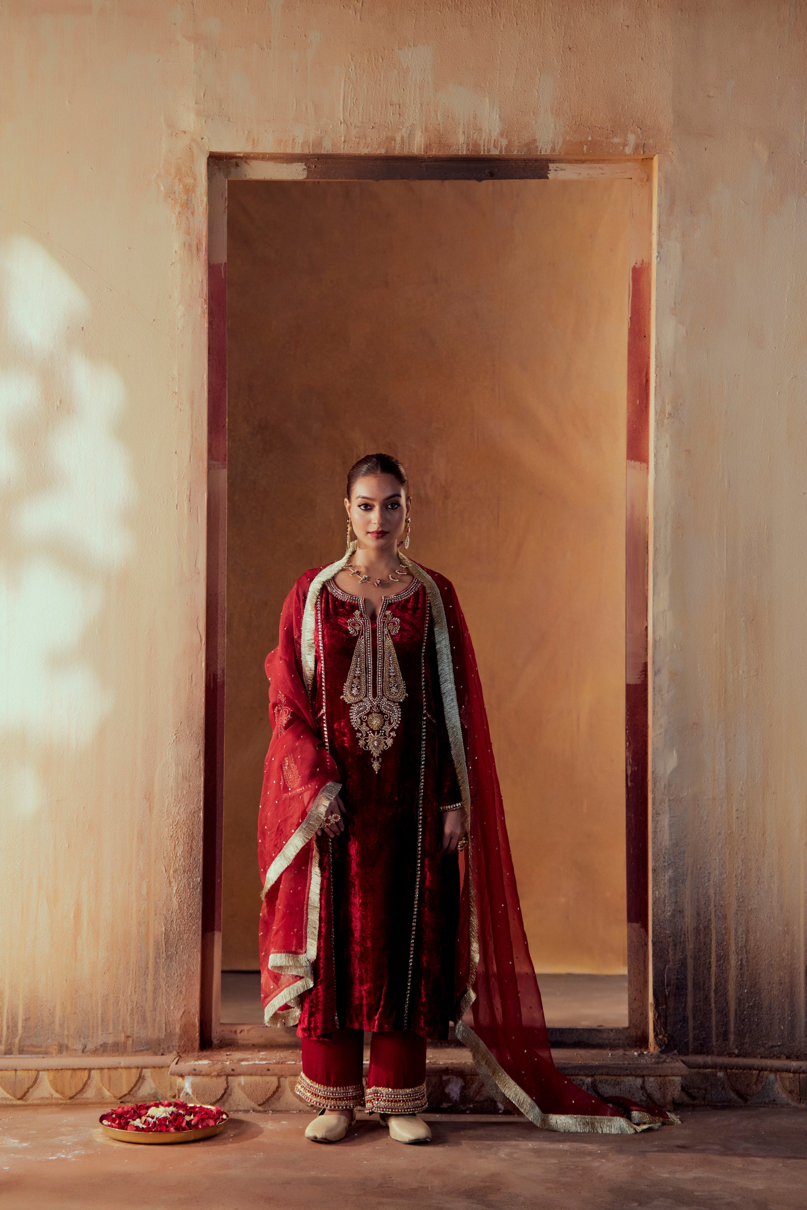 The Bottle Green Velvet Pakistani Suit Set from Gul is simply stunning. The intricate hand embroidery with zardozi, aari and cutdana work is absolutely exquisite and makes it perfect for weddings or other formal events. The velvet fabric is also very luxurious and comfortable to wear.