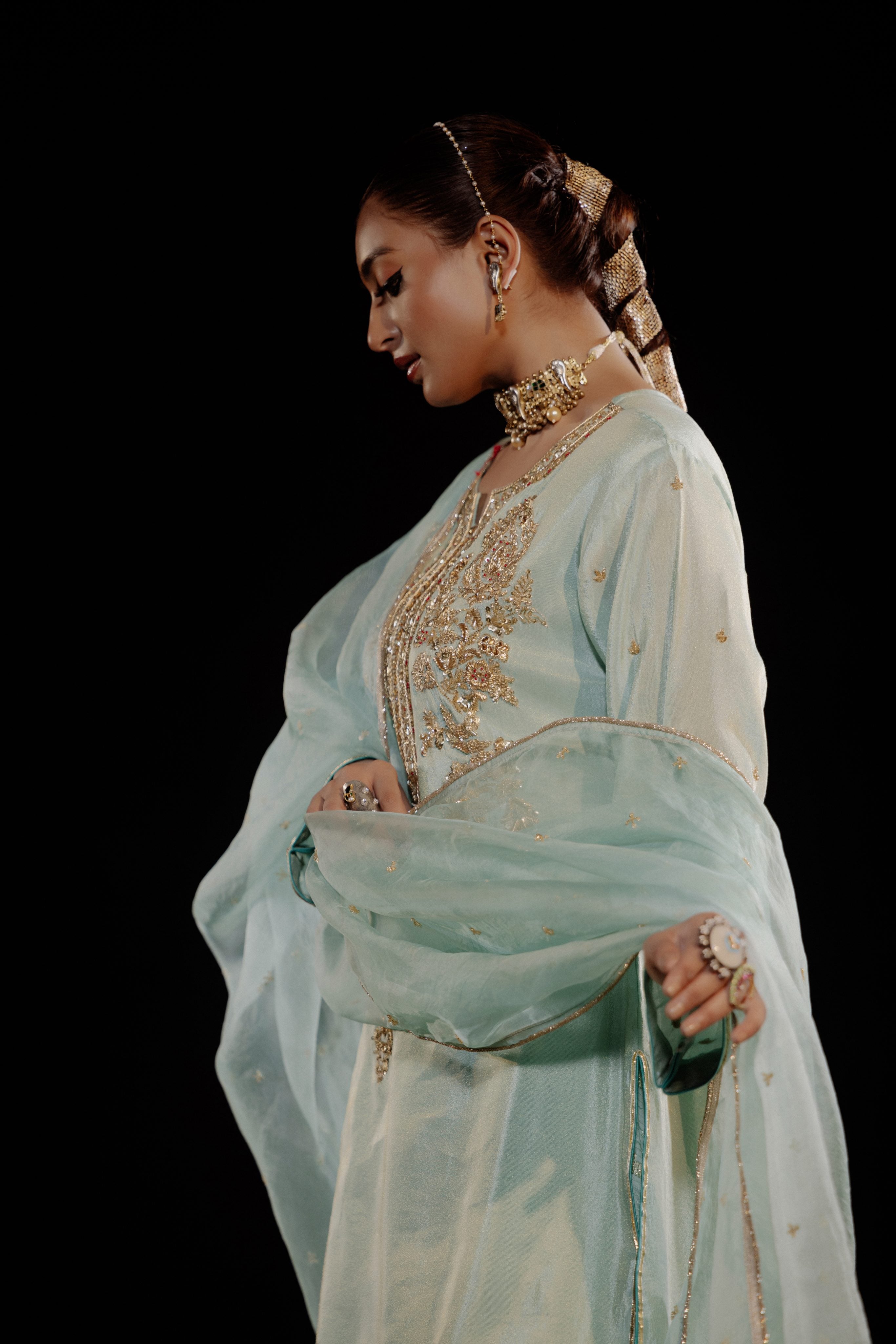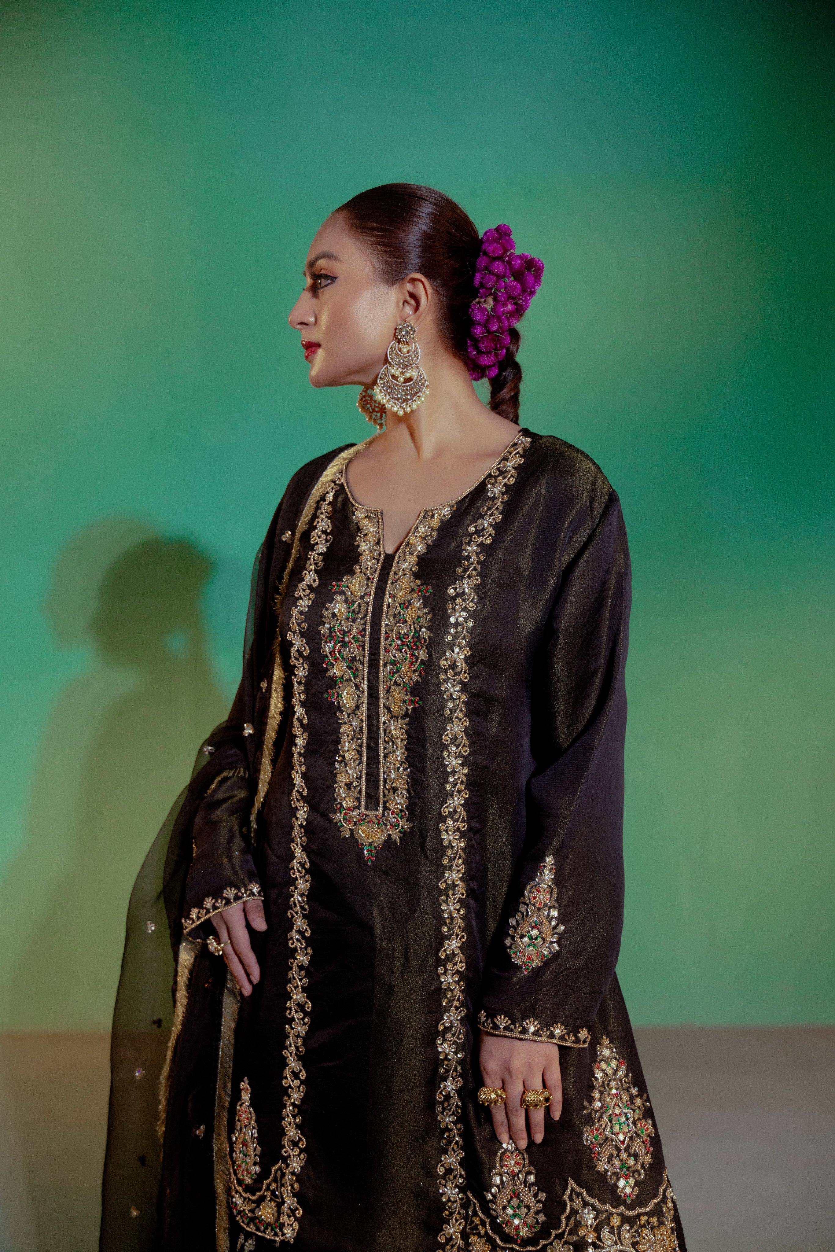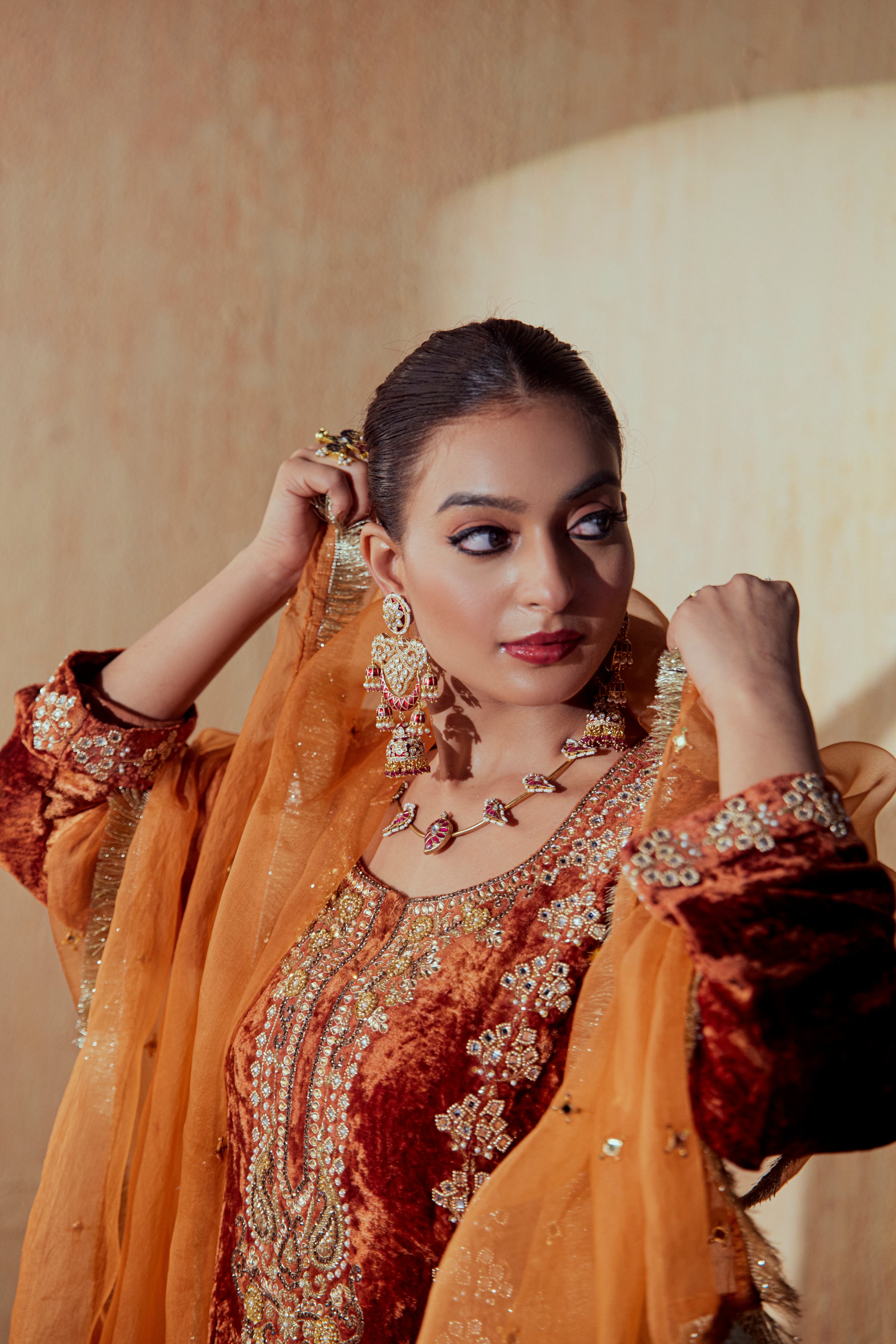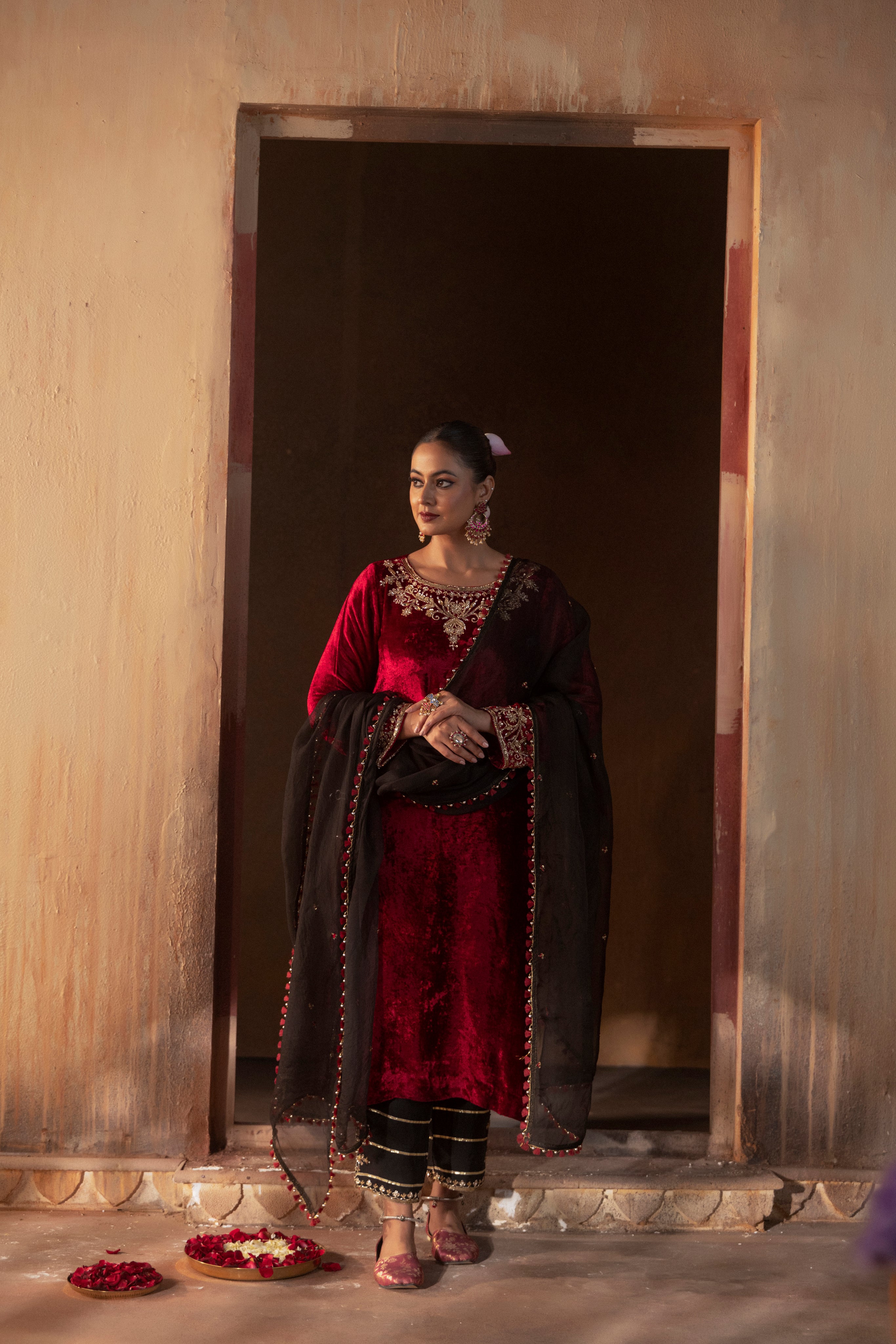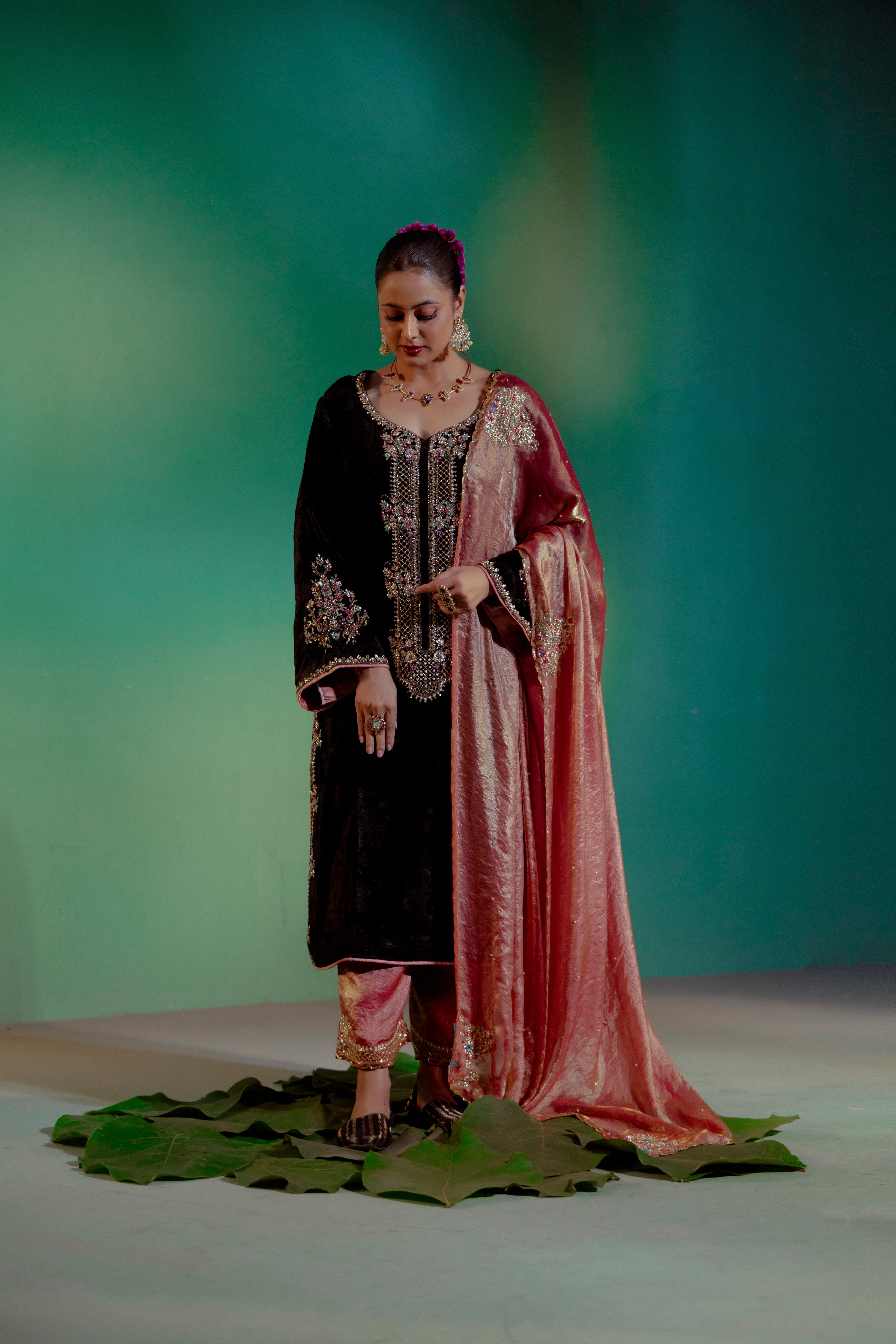 The Bottle Green Velvet Pakistani Suit Set from Gul is simply stunning. The intricate hand embroidery with zardozi, aari and cutdana work is absolutely exquisite and makes it perfect for weddings or other formal events. The velvet fabric is also very luxurious and comfortable to wear.