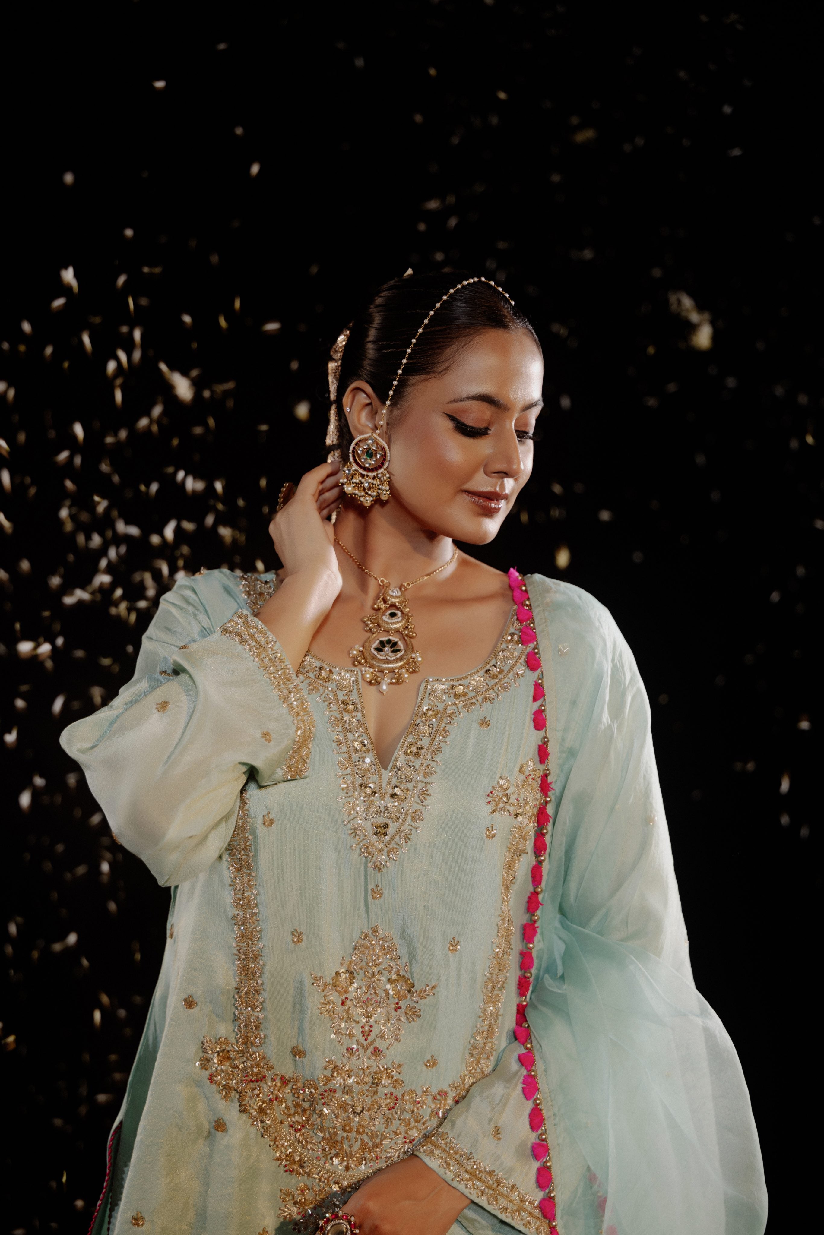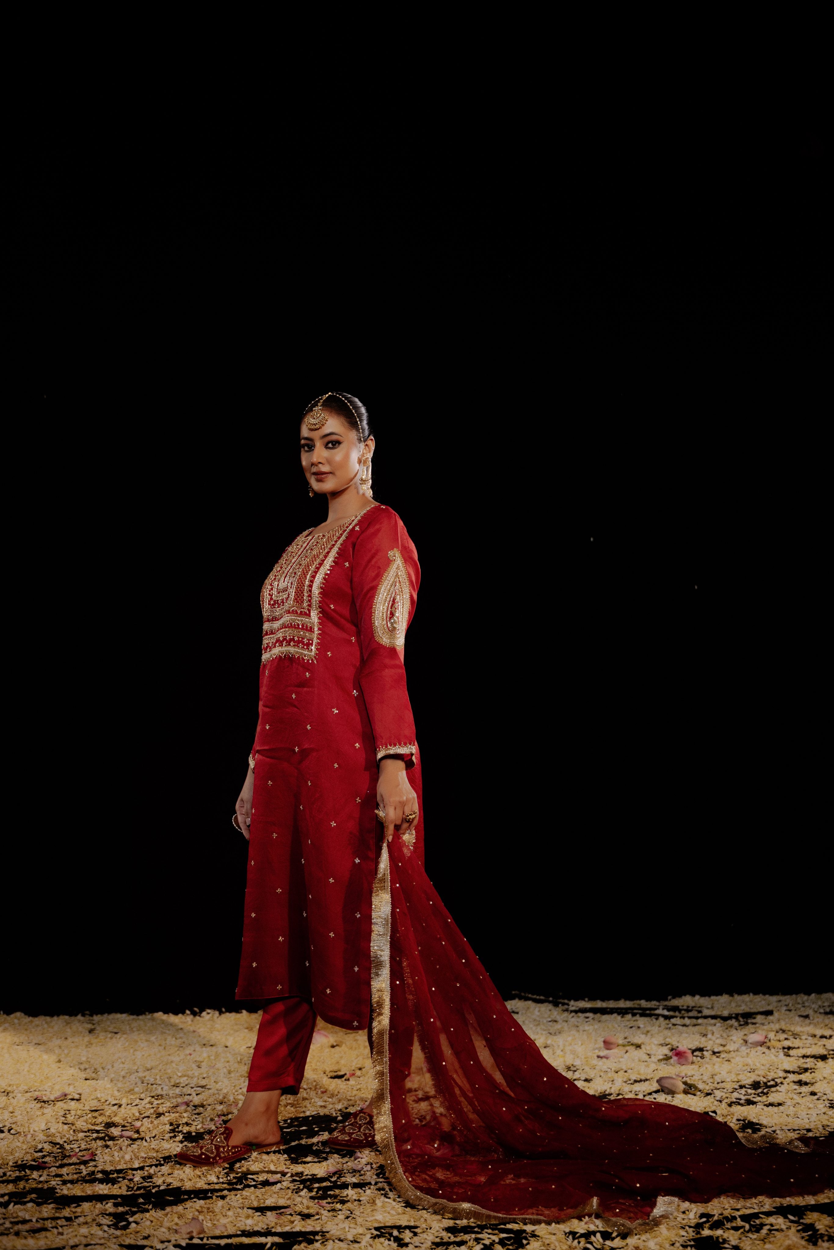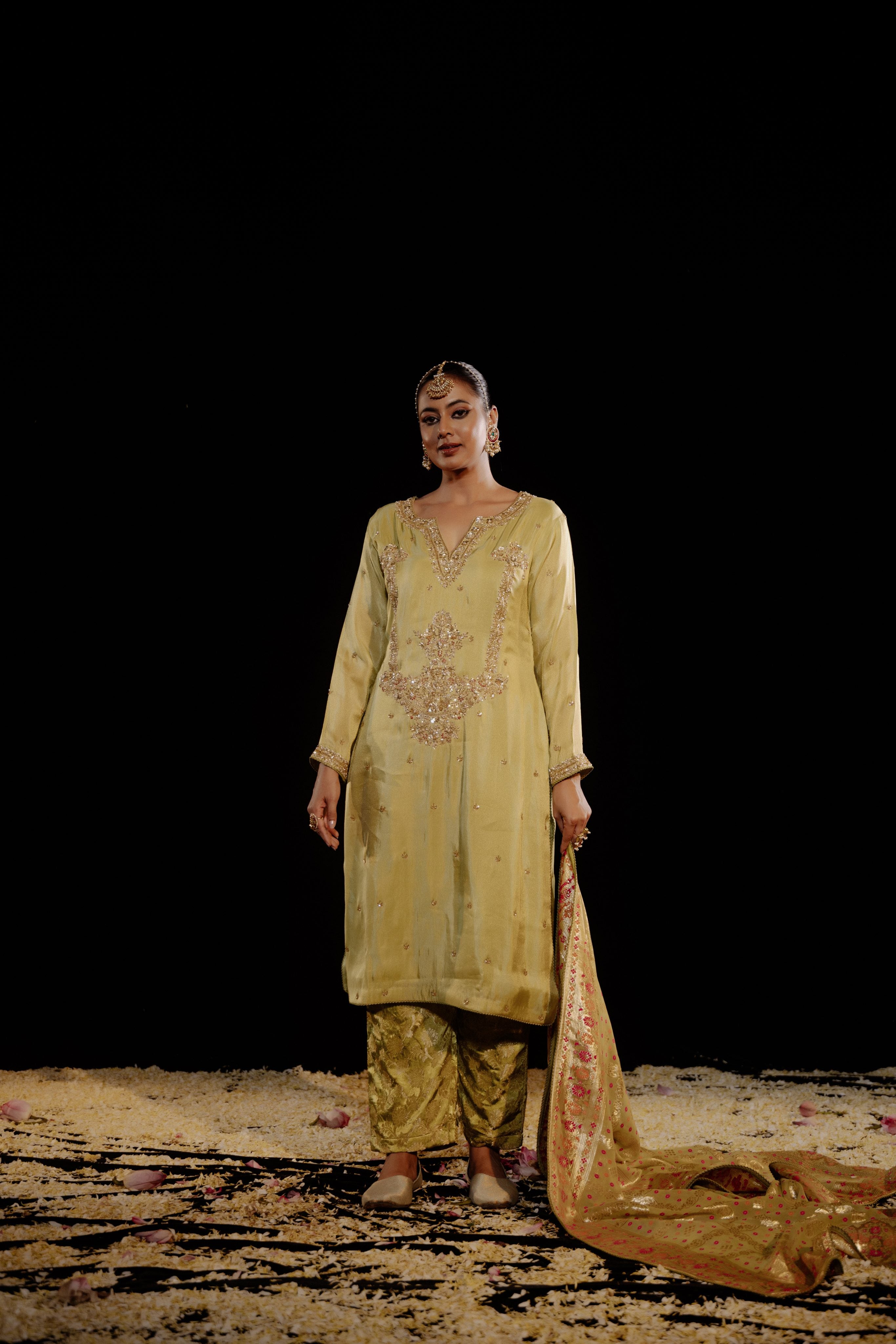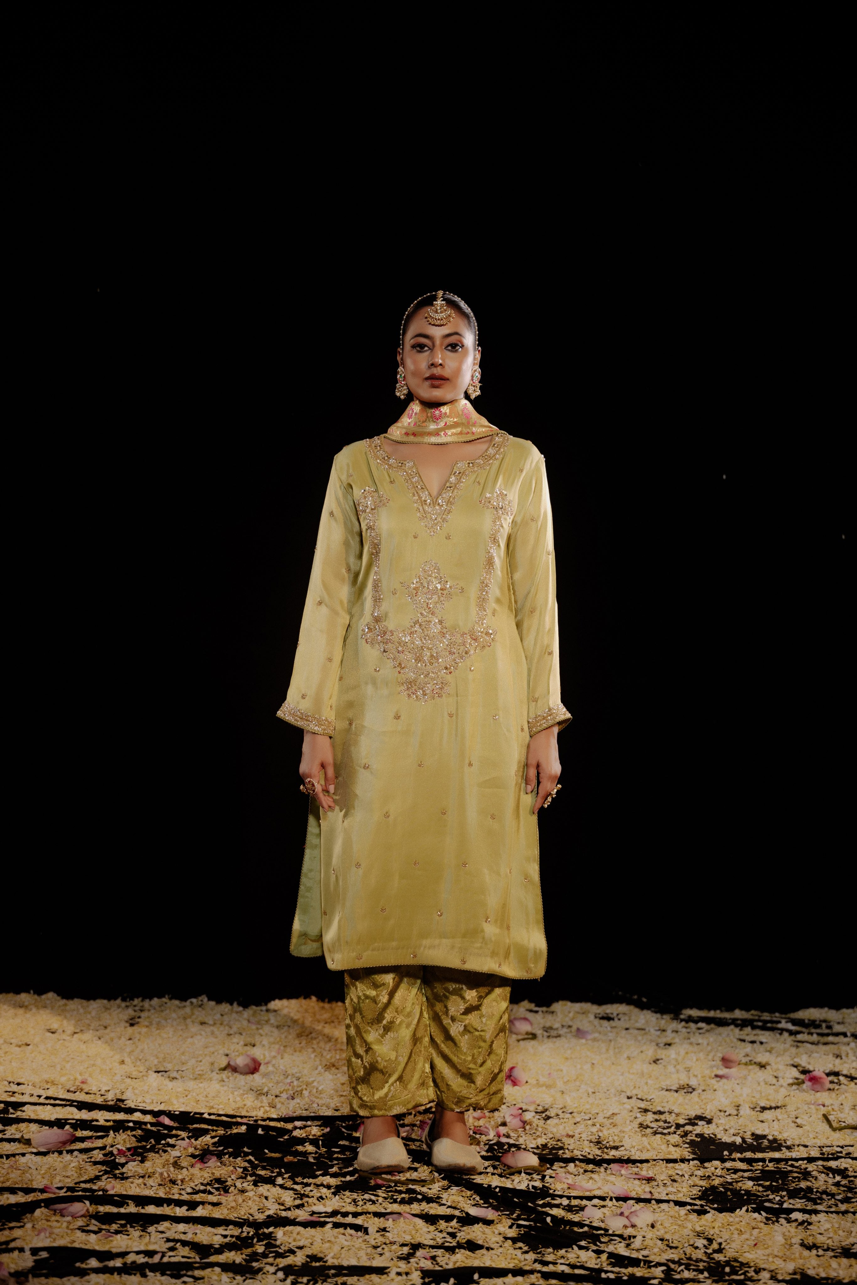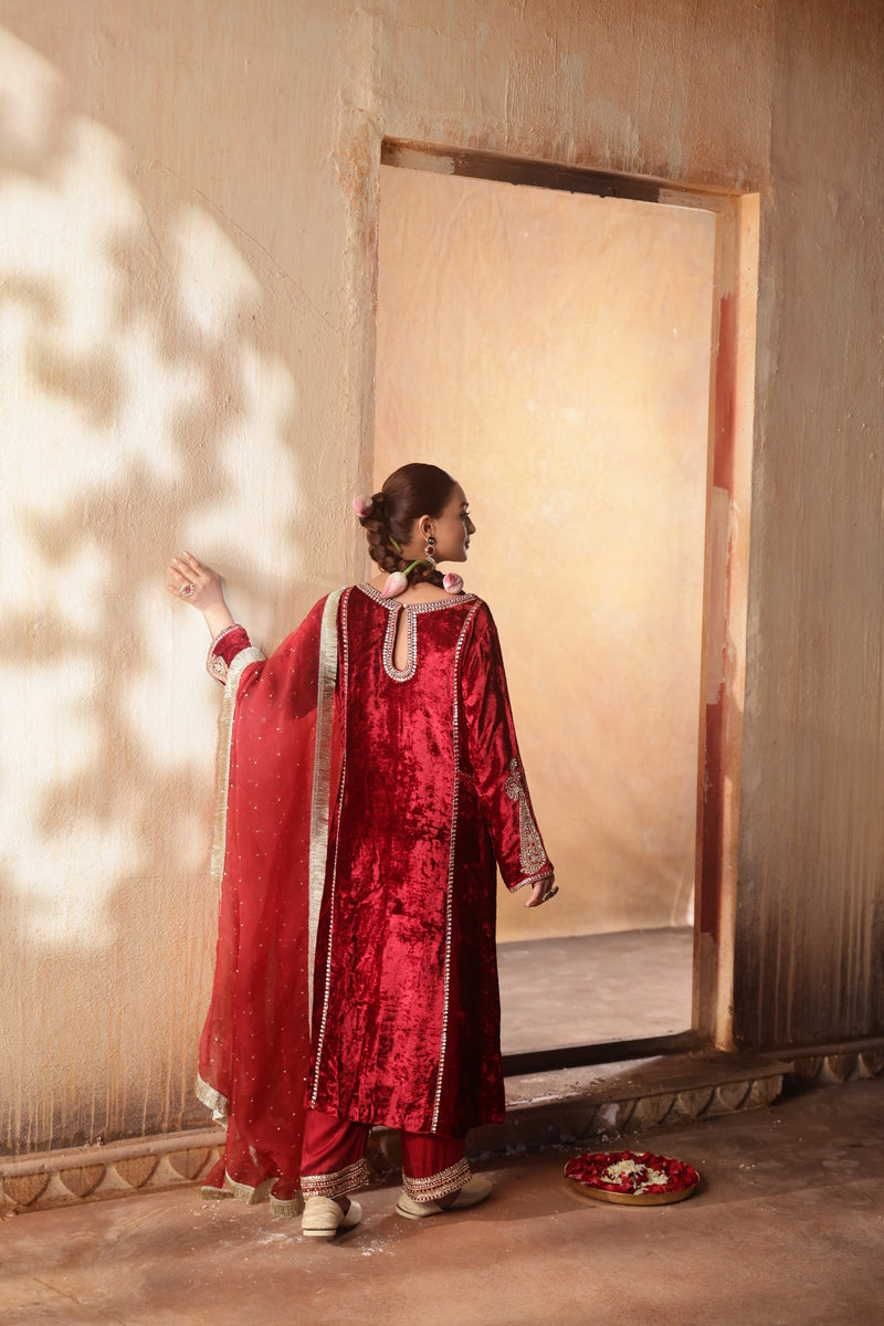 The Bottle Green Velvet Pakistani Suit Set from Gul is simply stunning. The intricate hand embroidery with zardozi, aari and cutdana work is absolutely exquisite and makes it perfect for weddings or other formal events. The velvet fabric is also very luxurious and comfortable to wear.