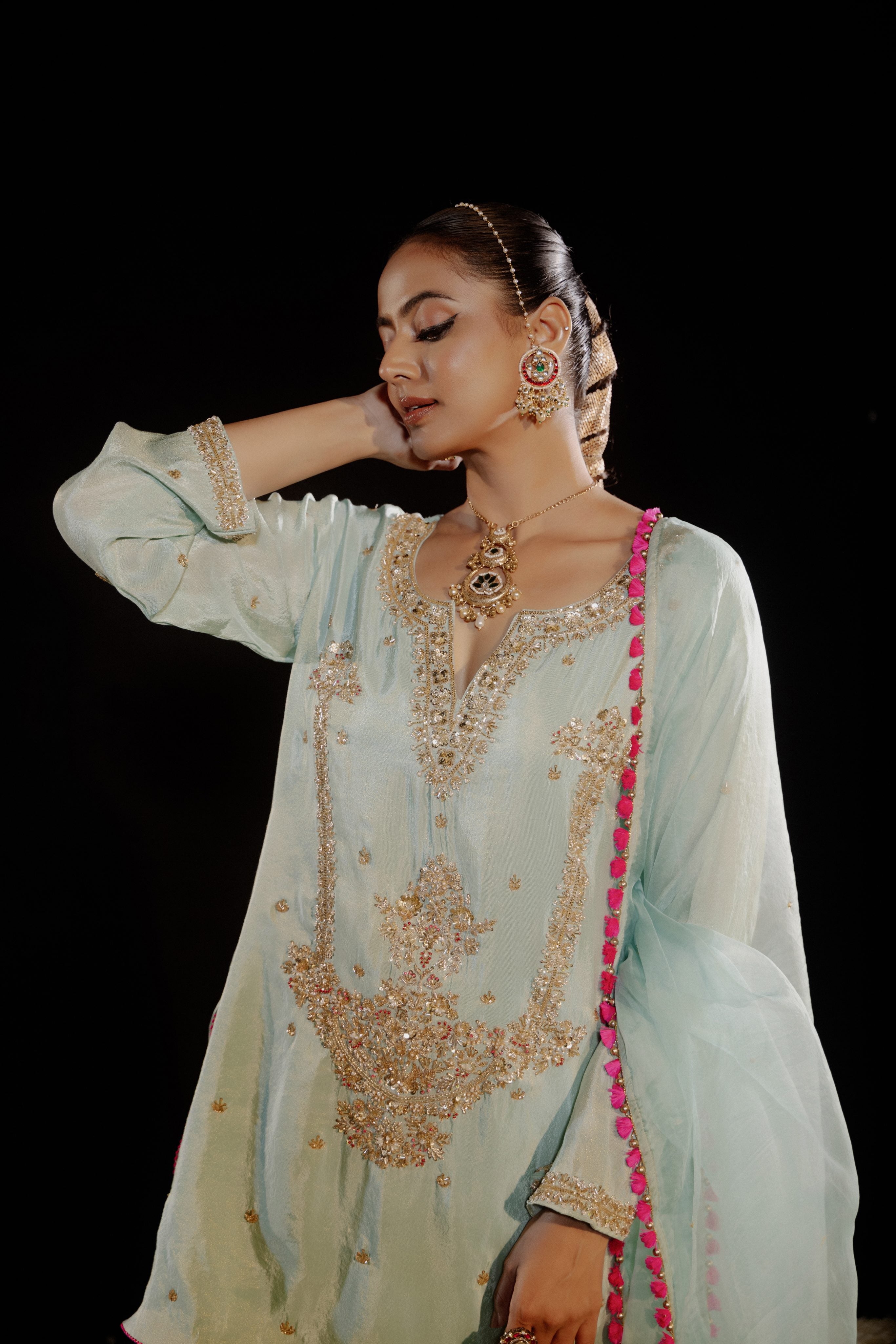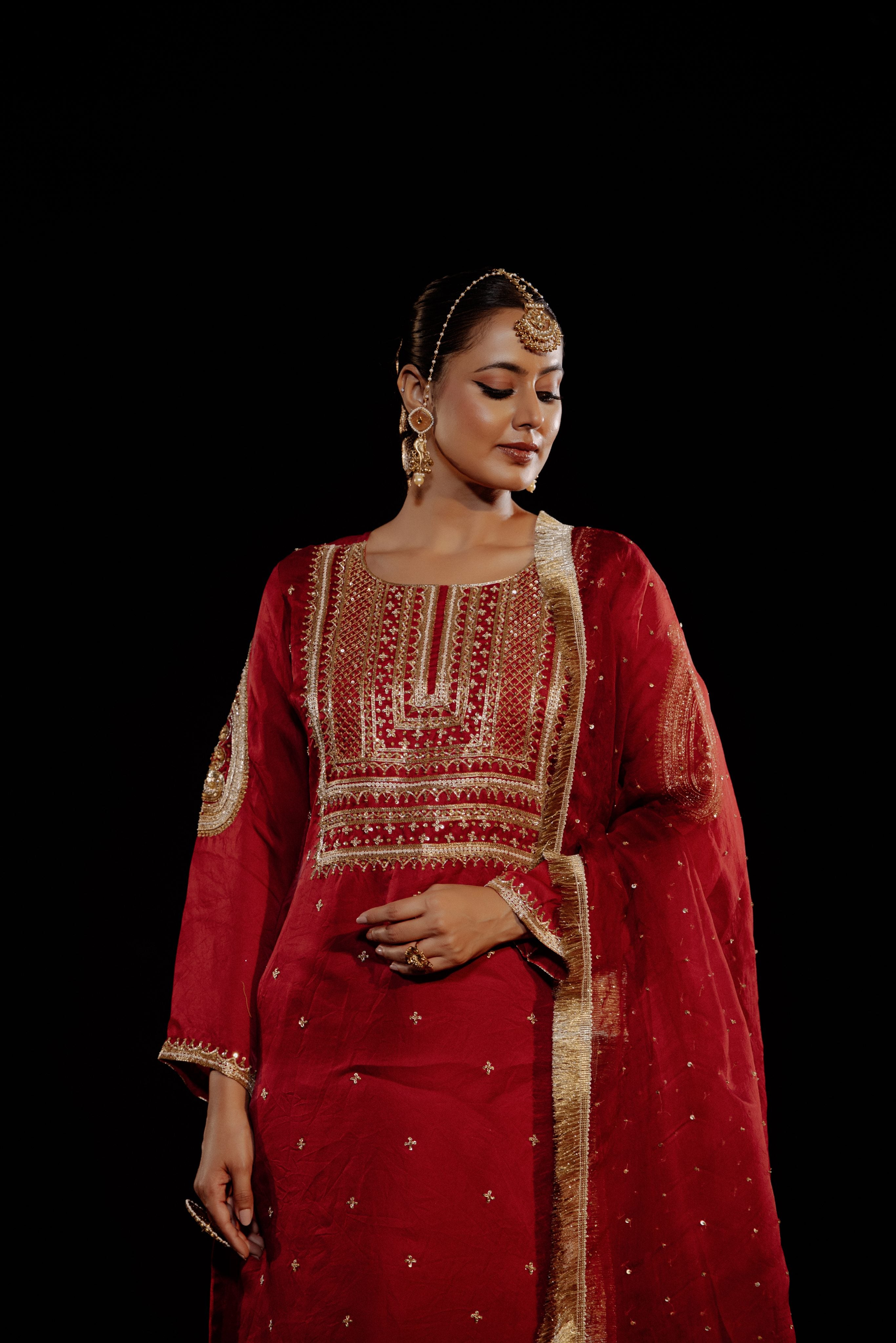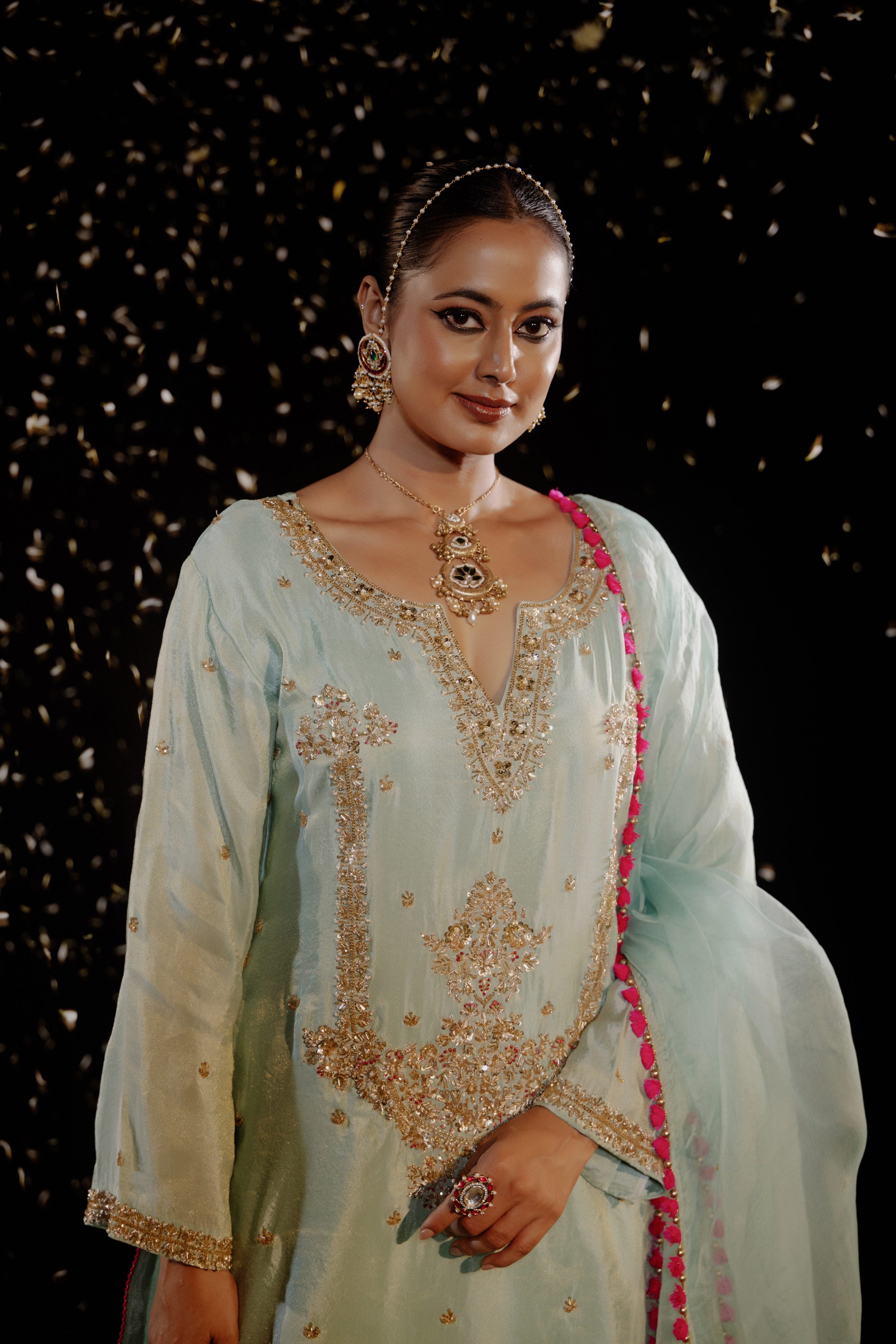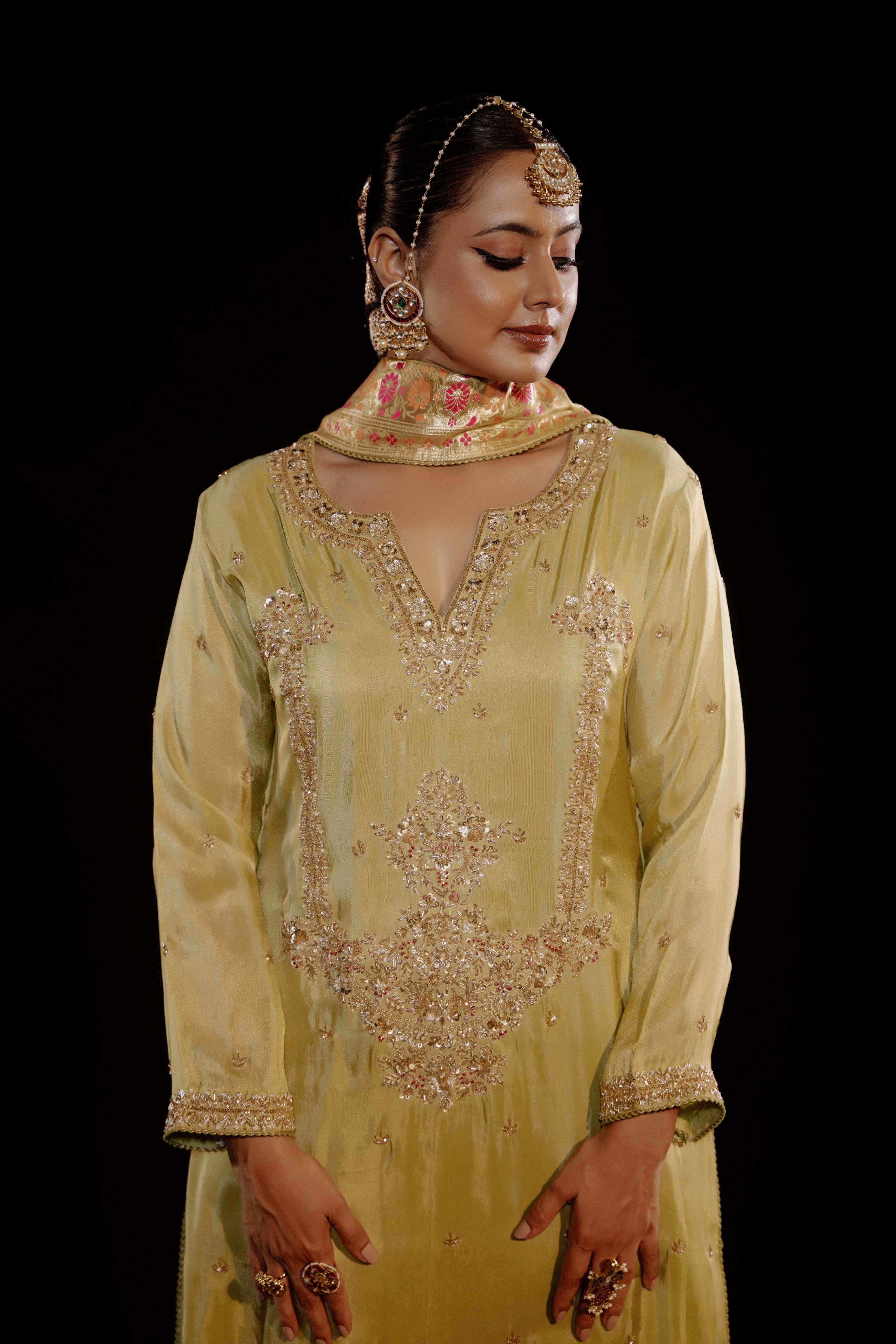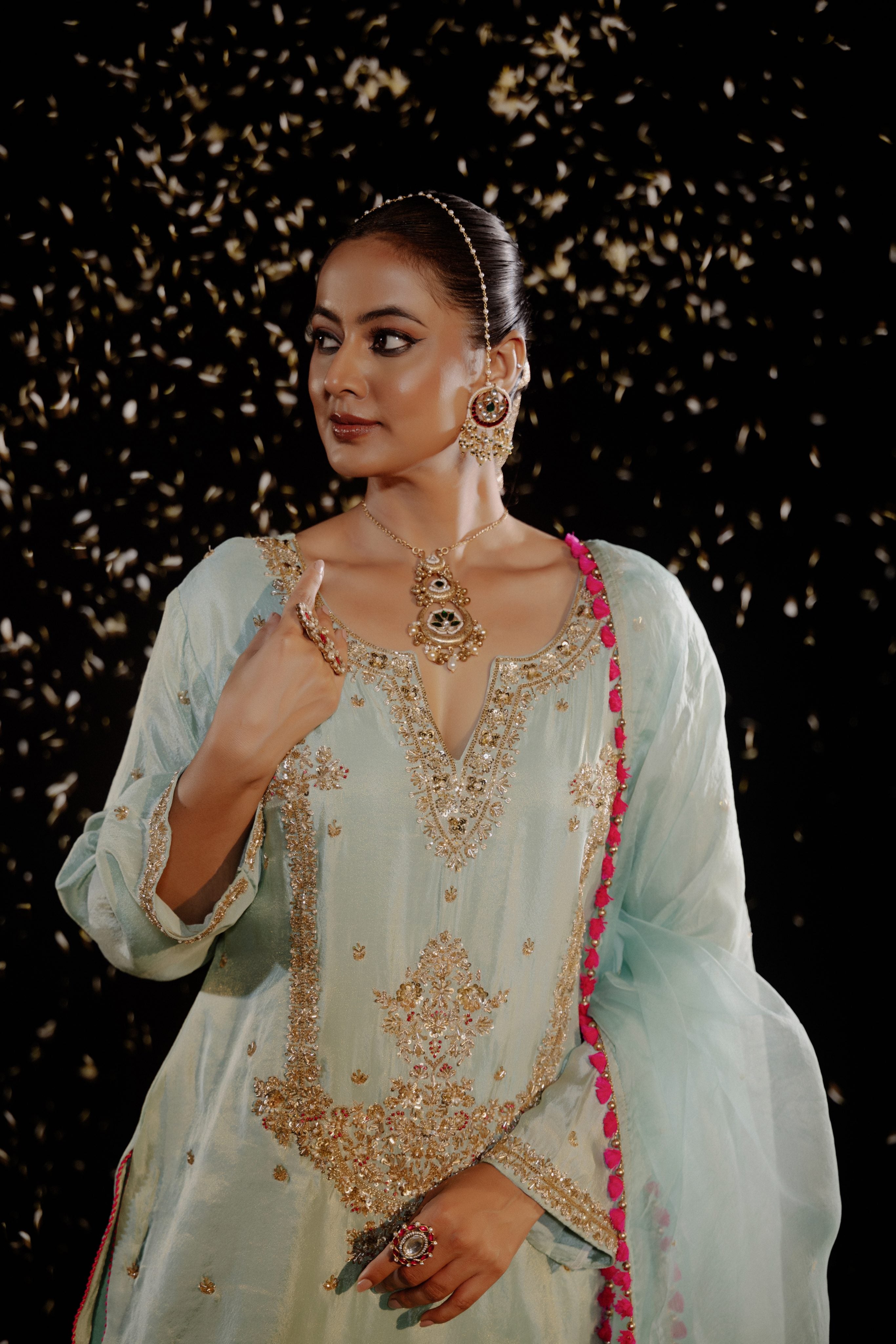 The Bottle Green Velvet Pakistani Suit Set from Gul is simply stunning. The intricate hand embroidery with zardozi, aari and cutdana work is absolutely exquisite and makes it perfect for weddings or other formal events. The velvet fabric is also very luxurious and comfortable to wear.