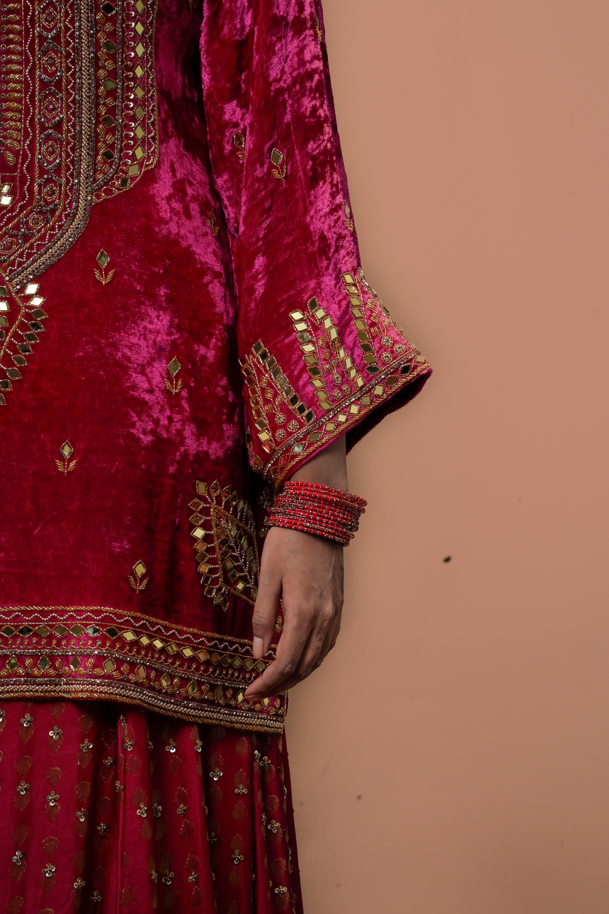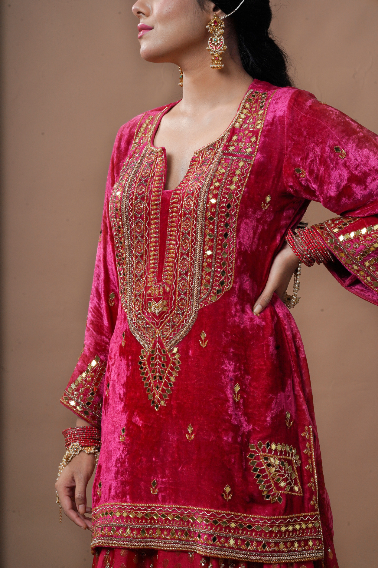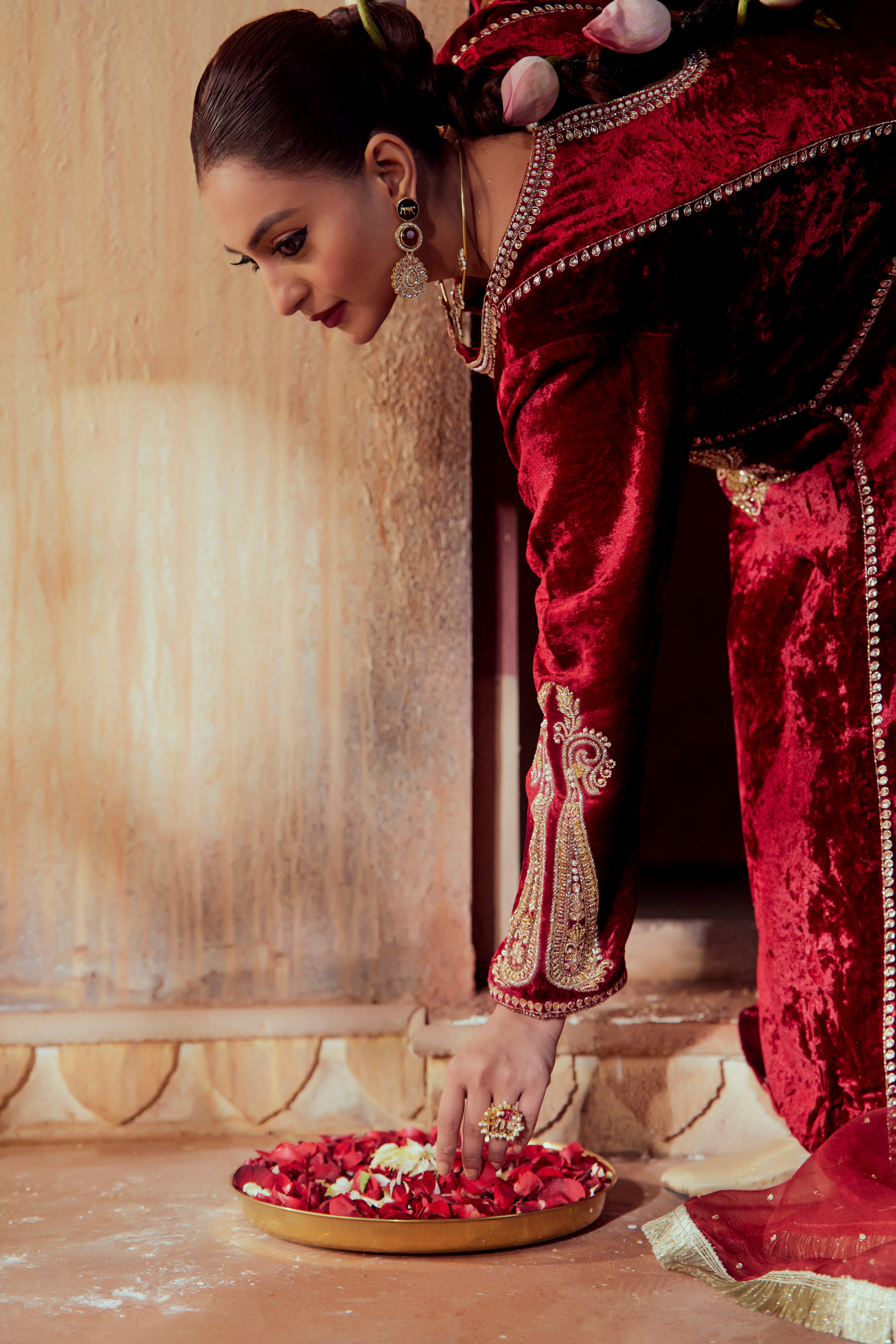 The Lehenga Set from Gul is absolutely stunning. The intricate hand embroidery with zardozi, aara, stone and mirror work is simply breathtaking and really makes the outfit stand out. The velvet fabric is also very soft and comfortable to wear.