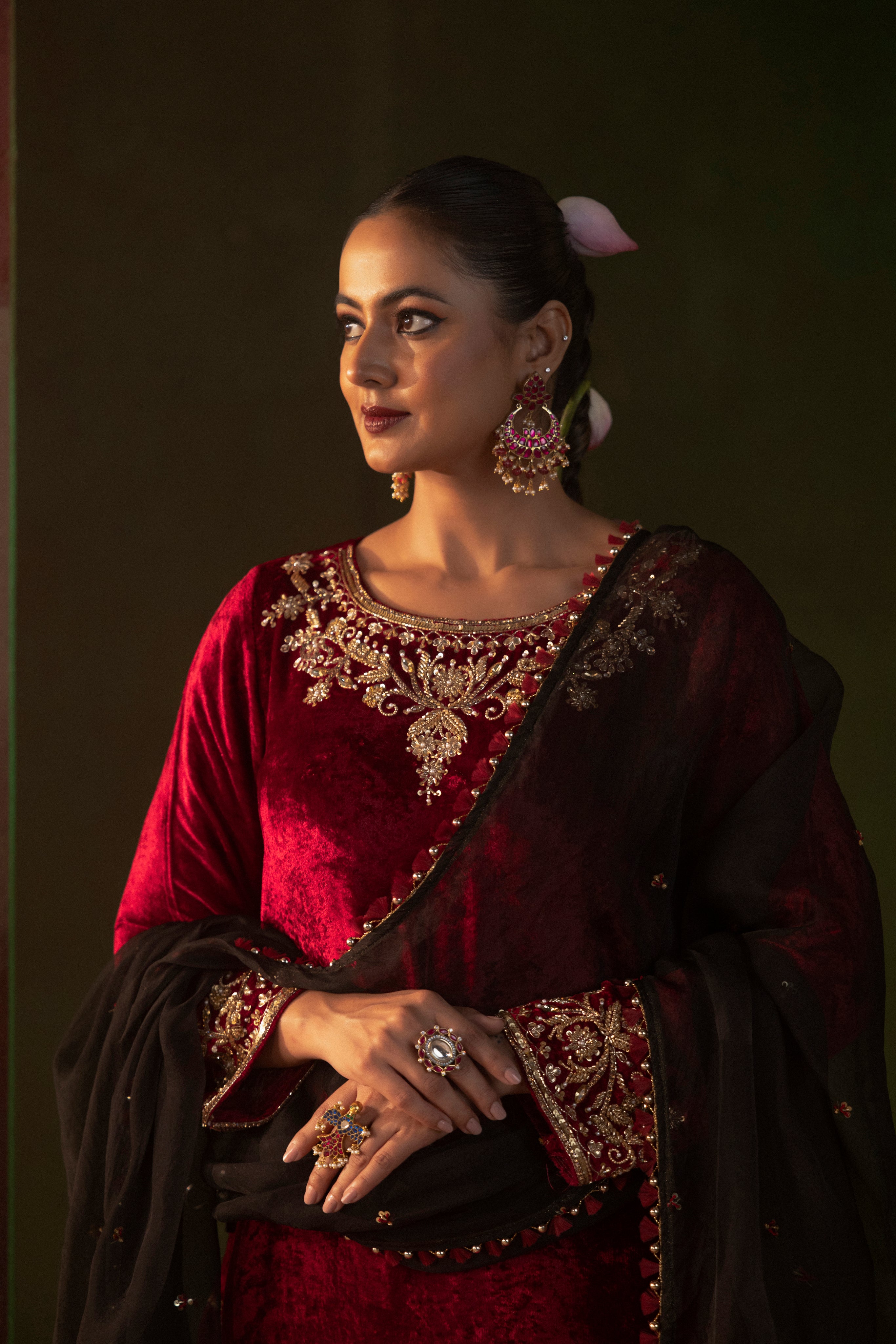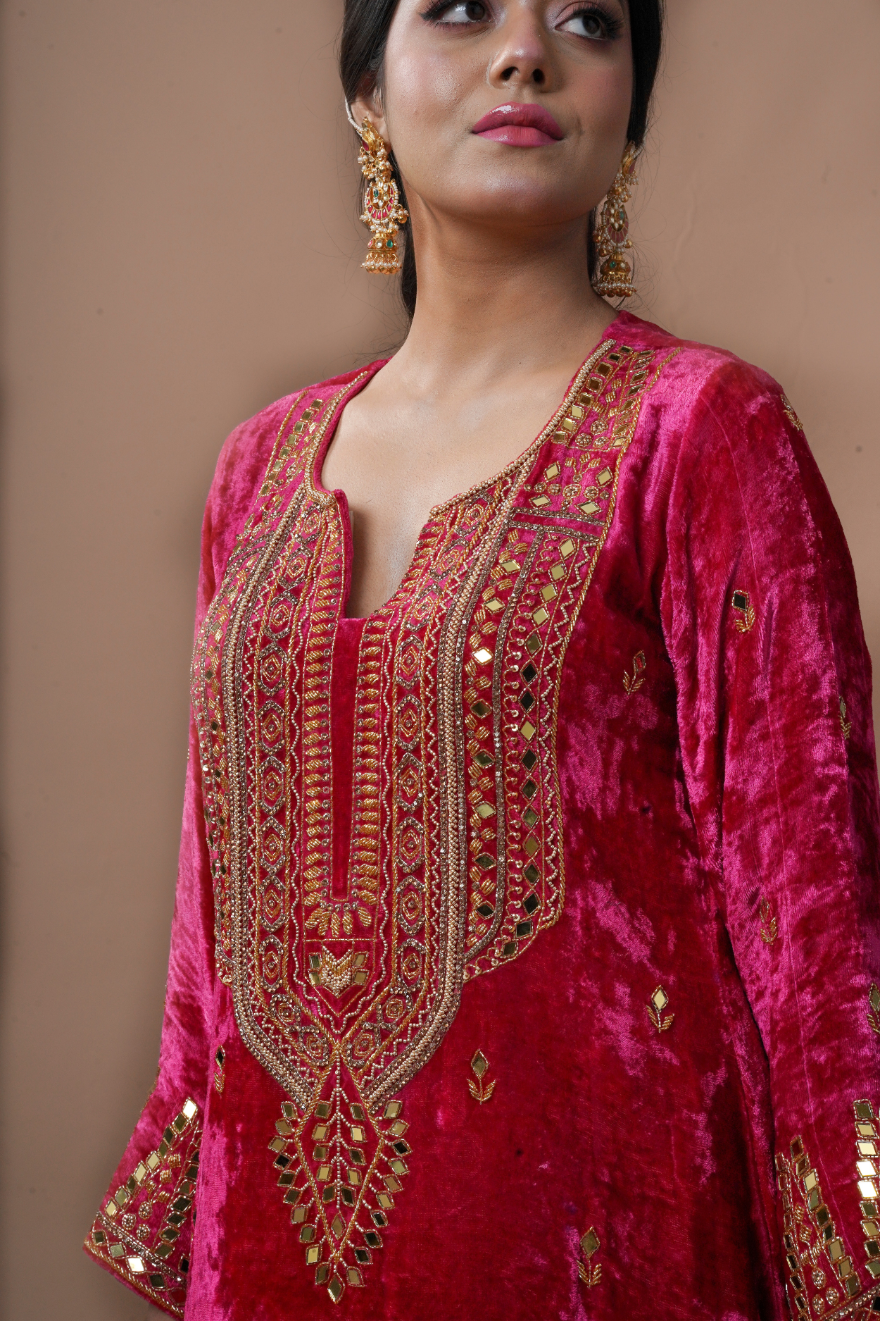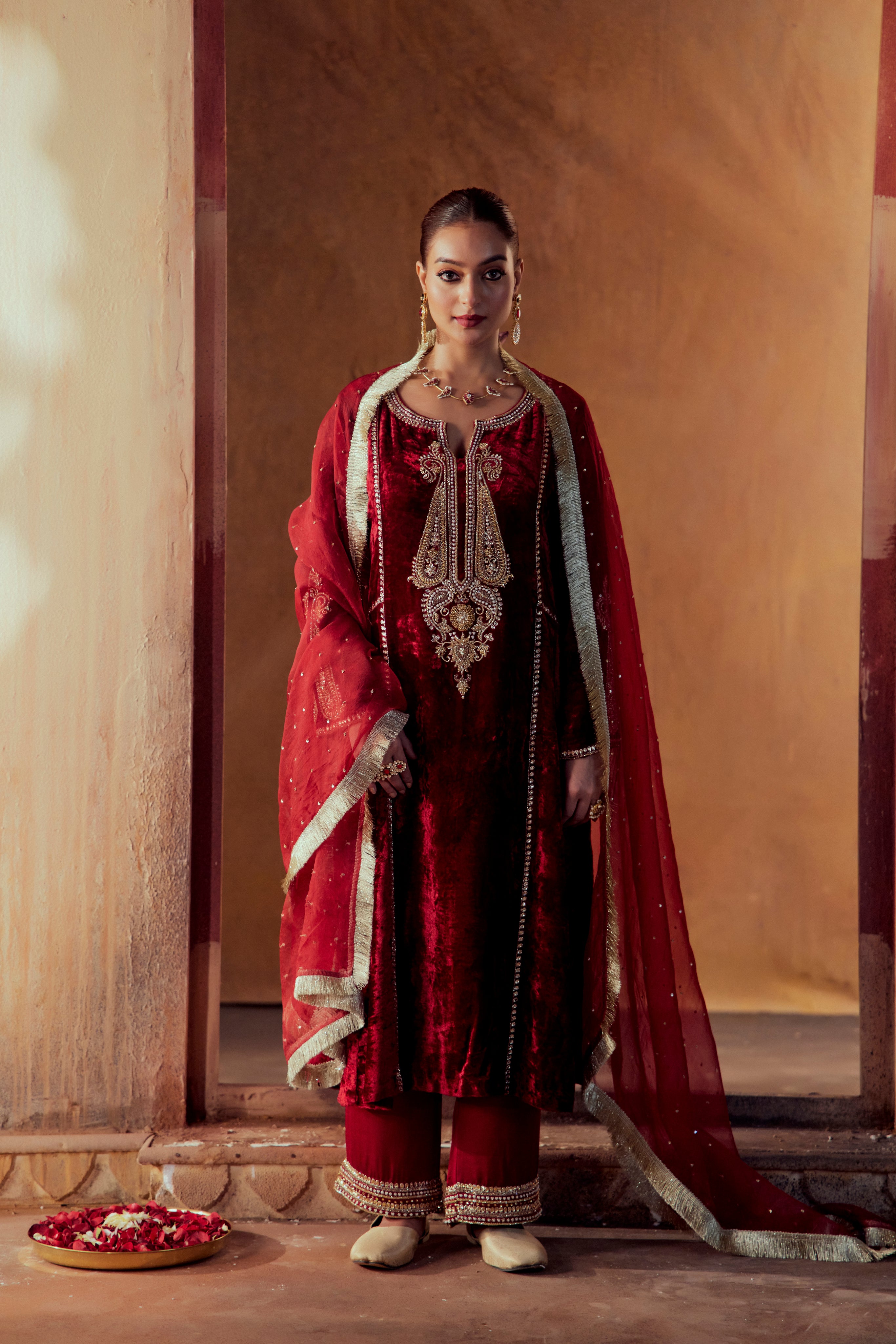 The Lehenga Set from Gul is absolutely stunning. The intricate hand embroidery with zardozi, aara, stone and mirror work is simply breathtaking and really makes the outfit stand out. The velvet fabric is also very soft and comfortable to wear.
