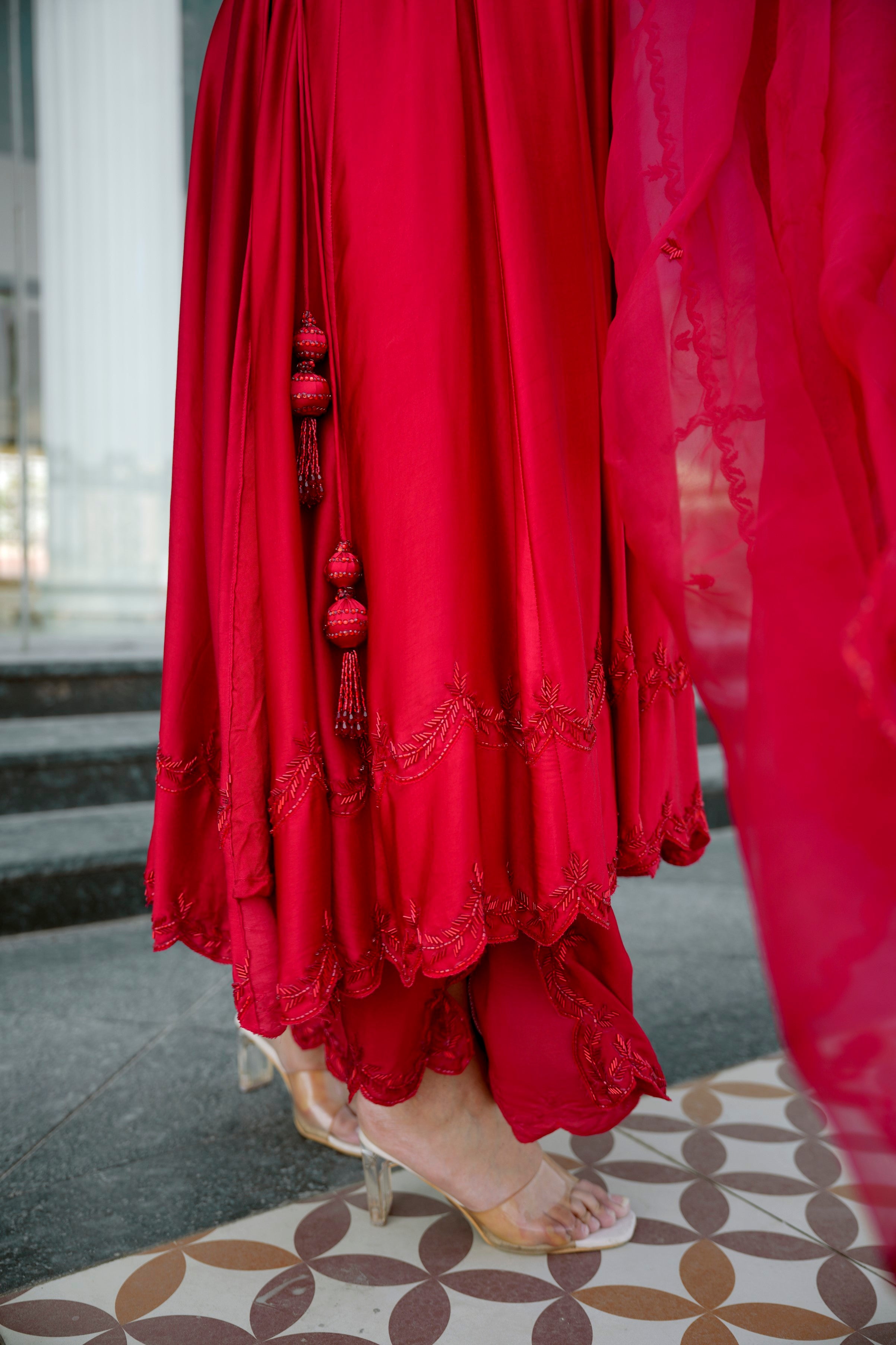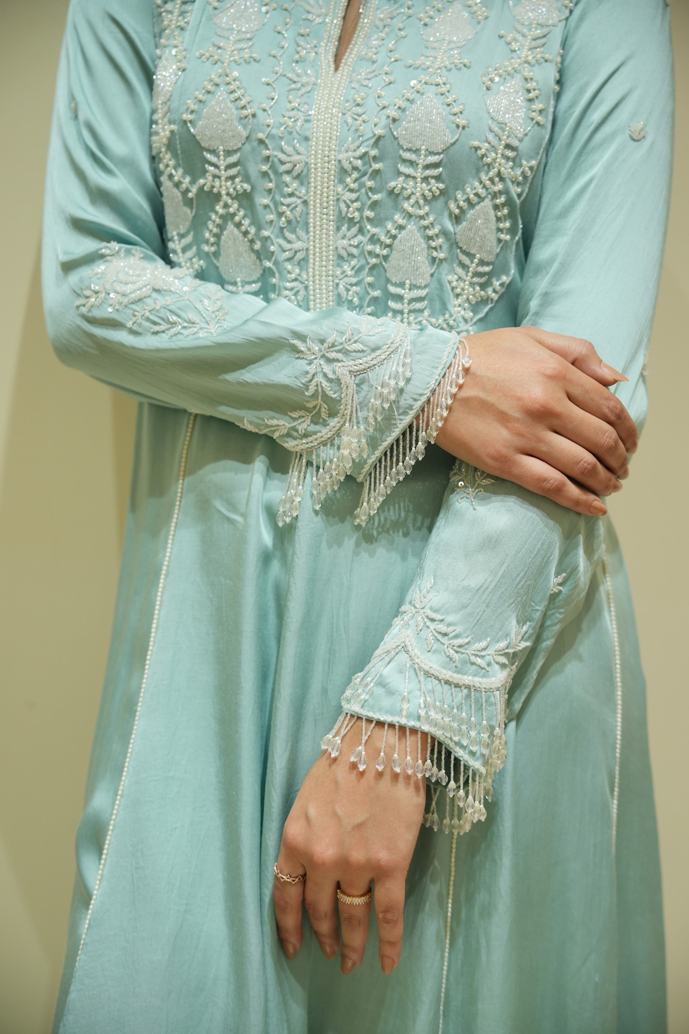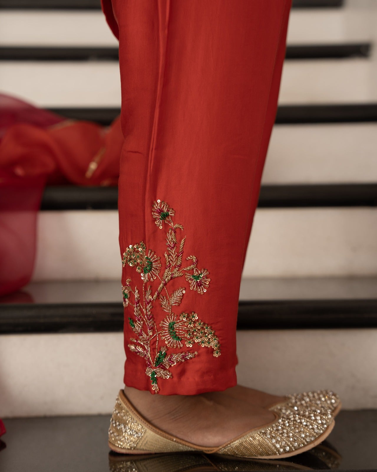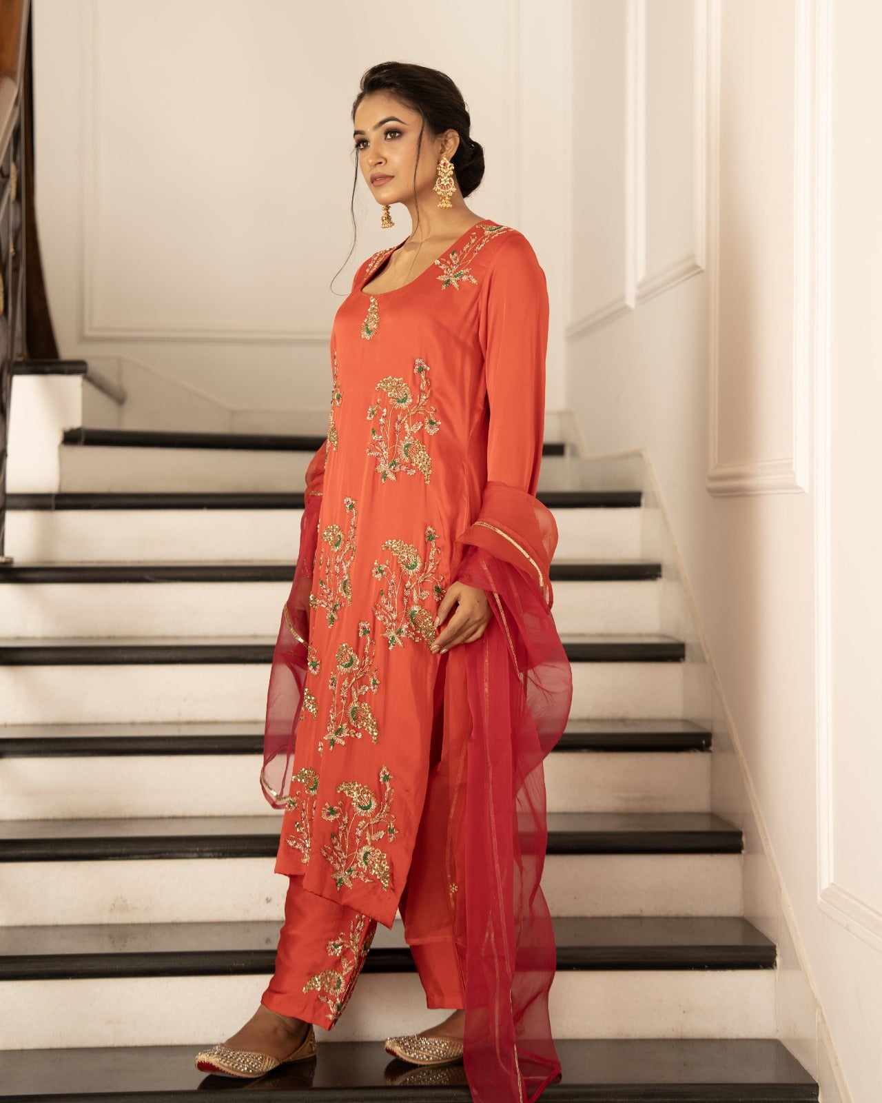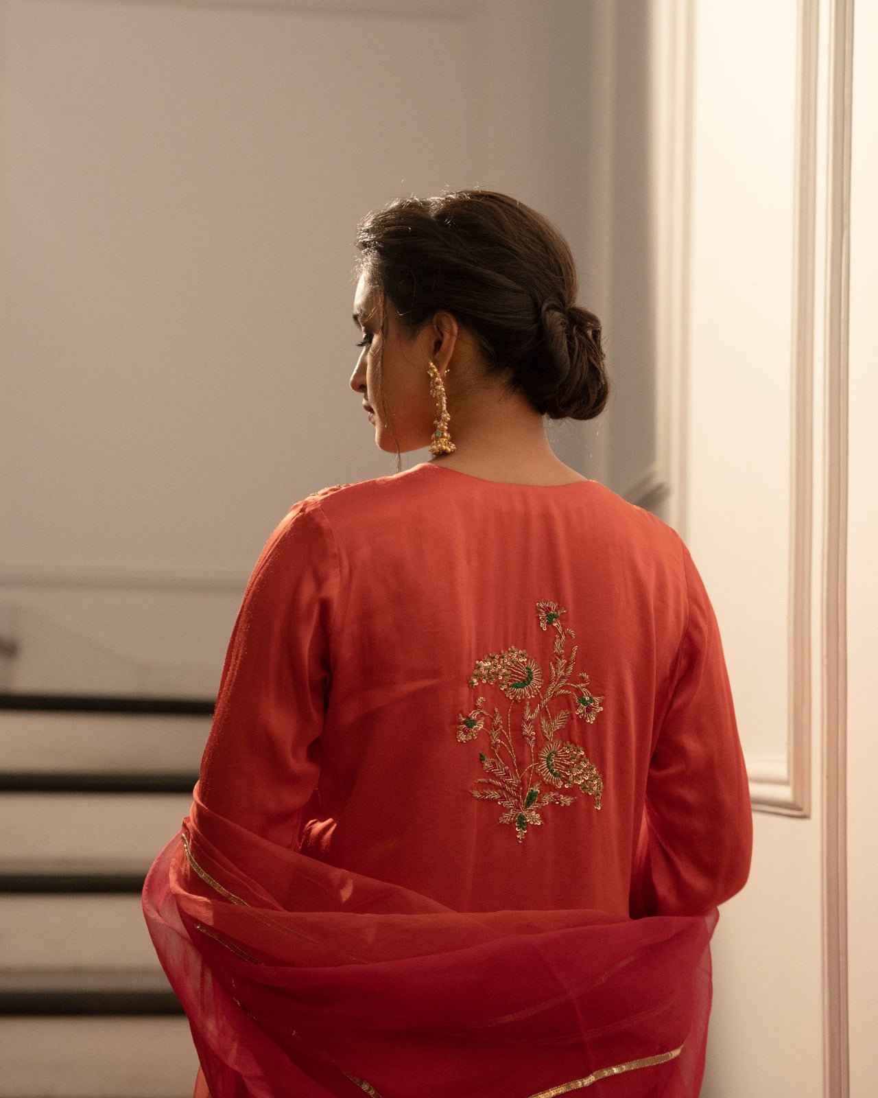 BOTTLE GREEN GARLAND NECKLINE KURTA SET