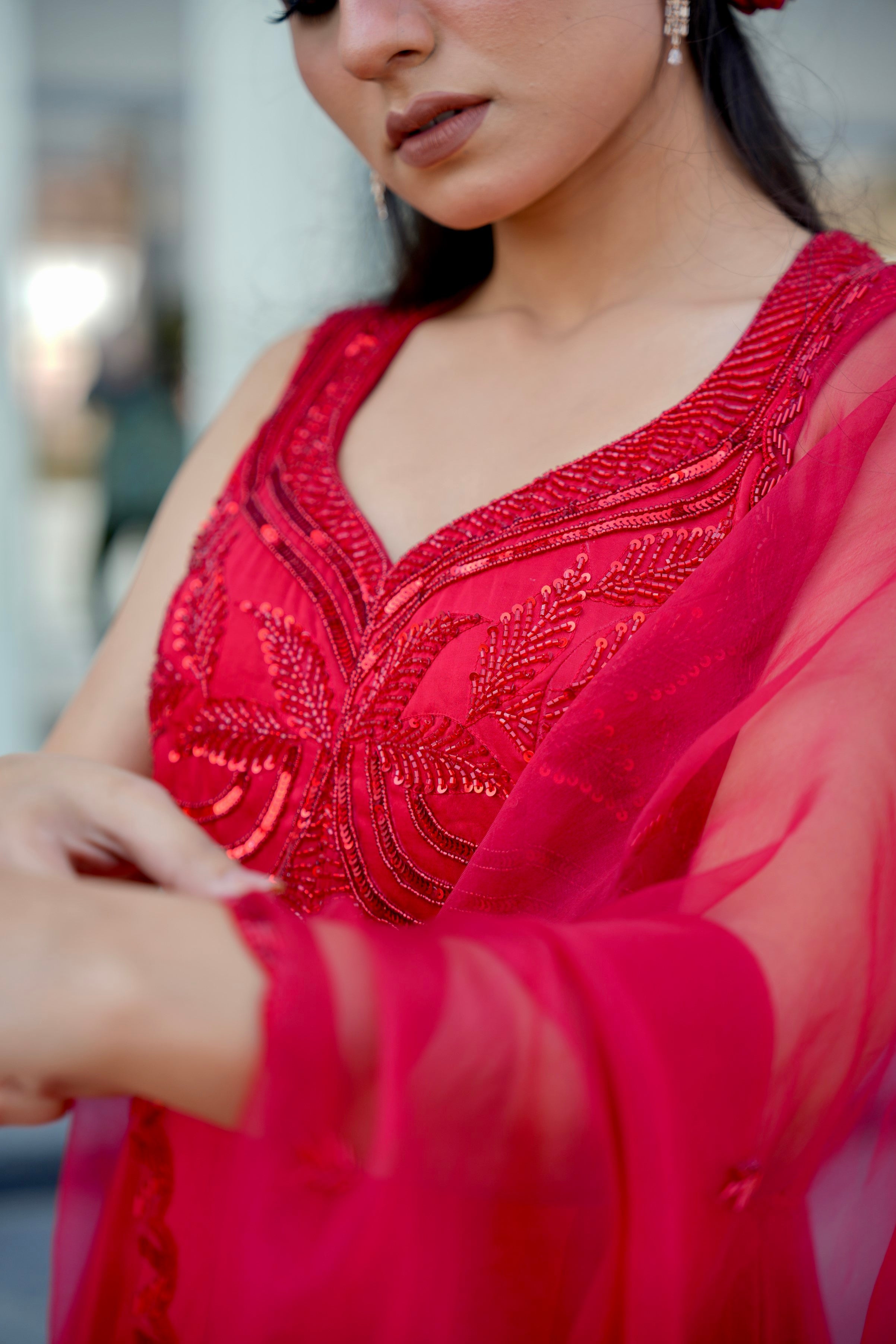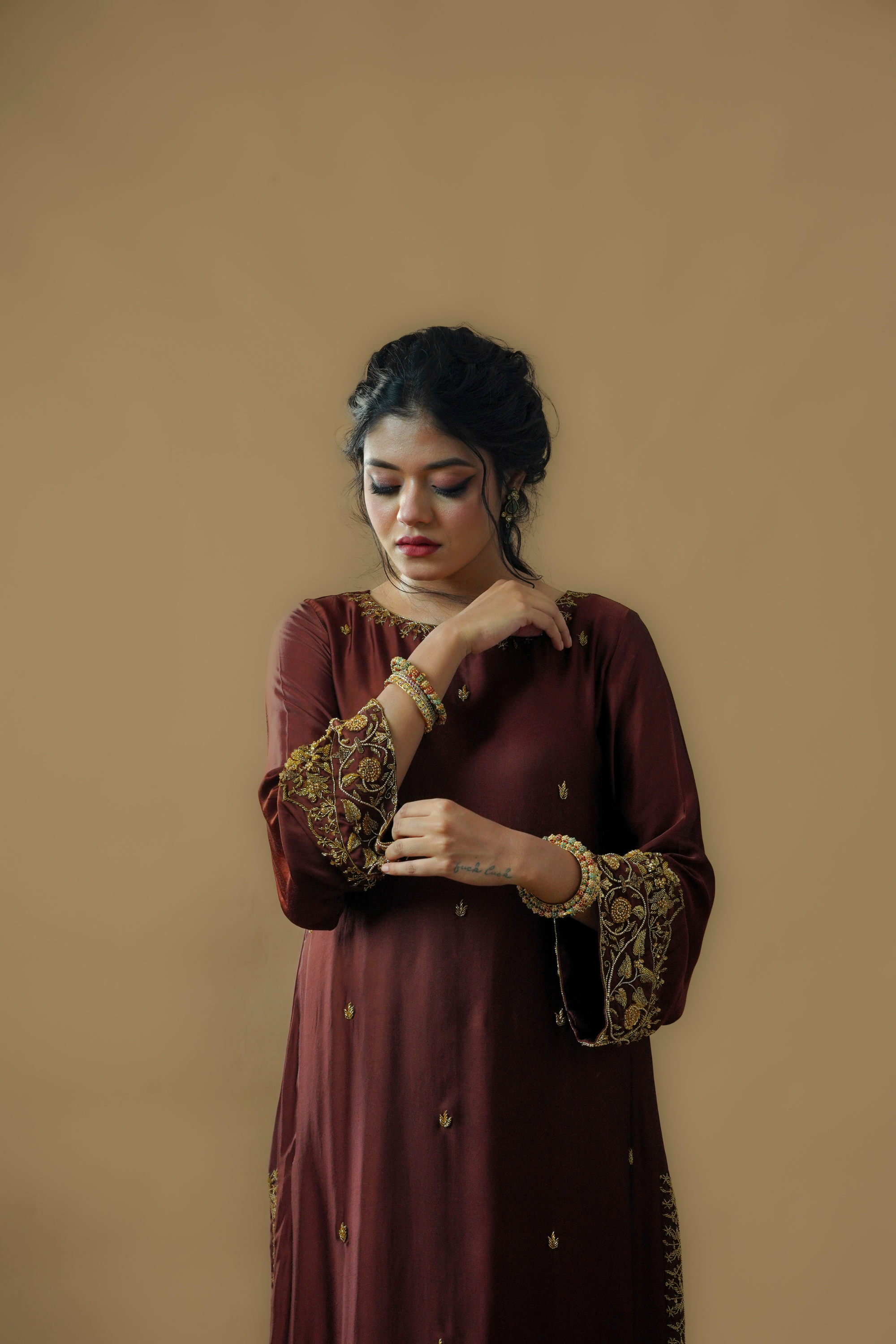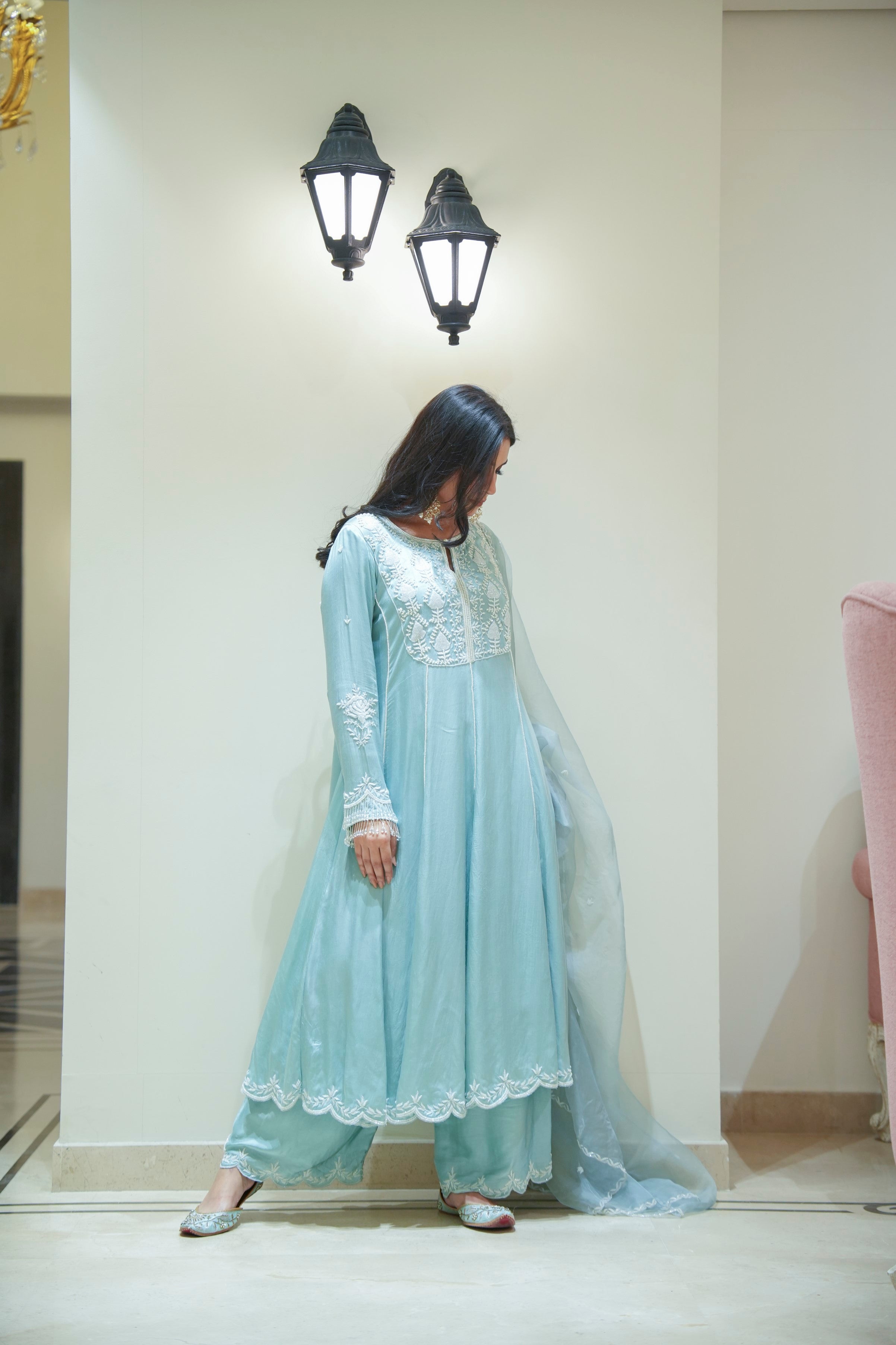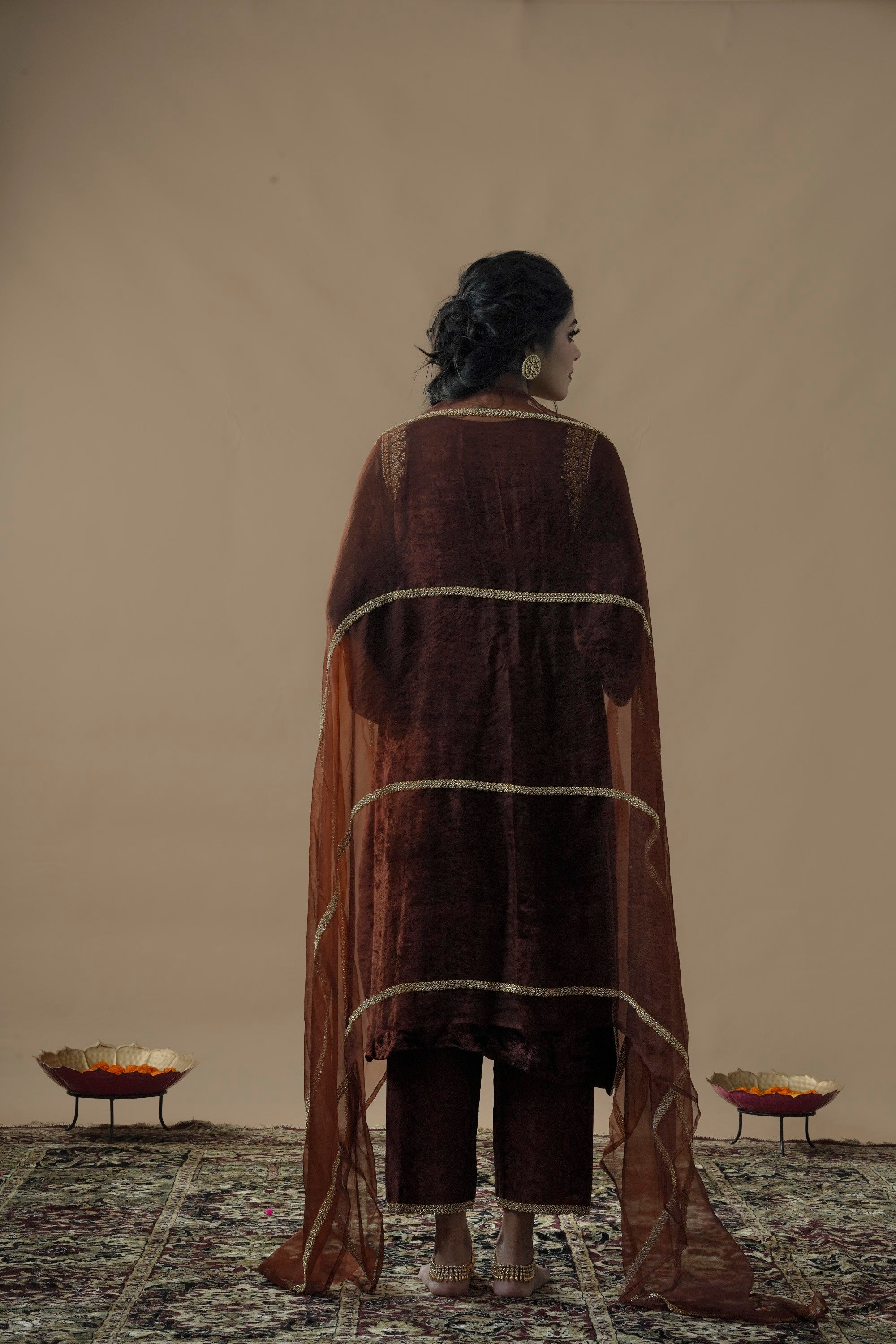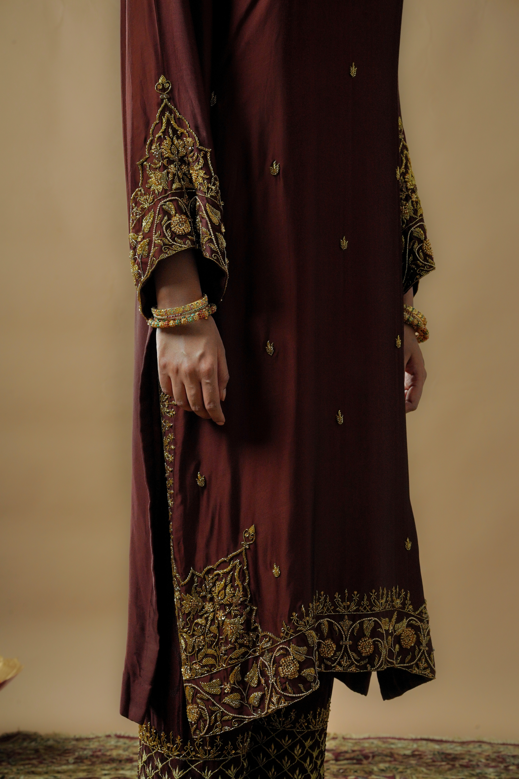 BOTTLE GREEN GARLAND NECKLINE KURTA SET