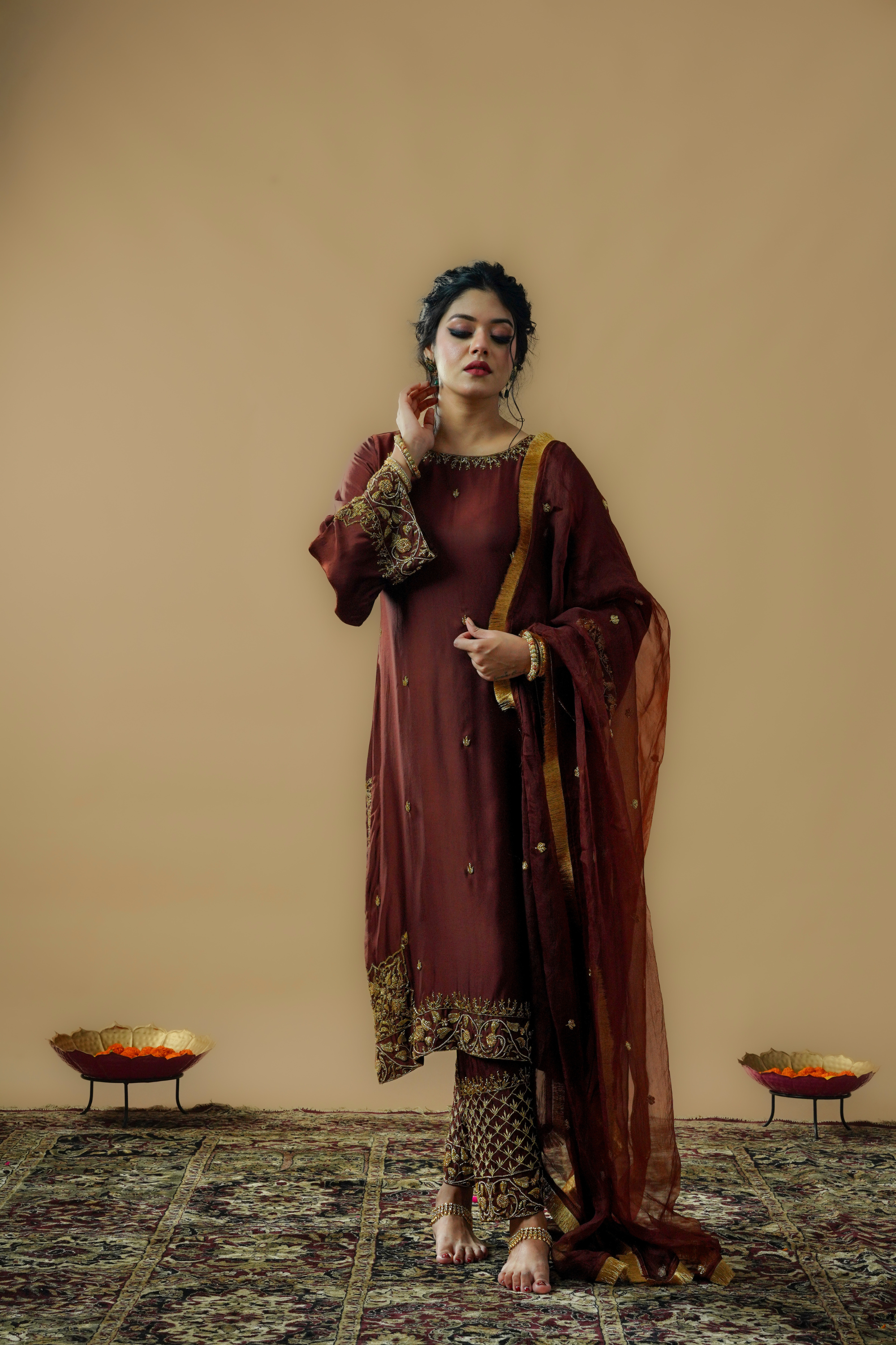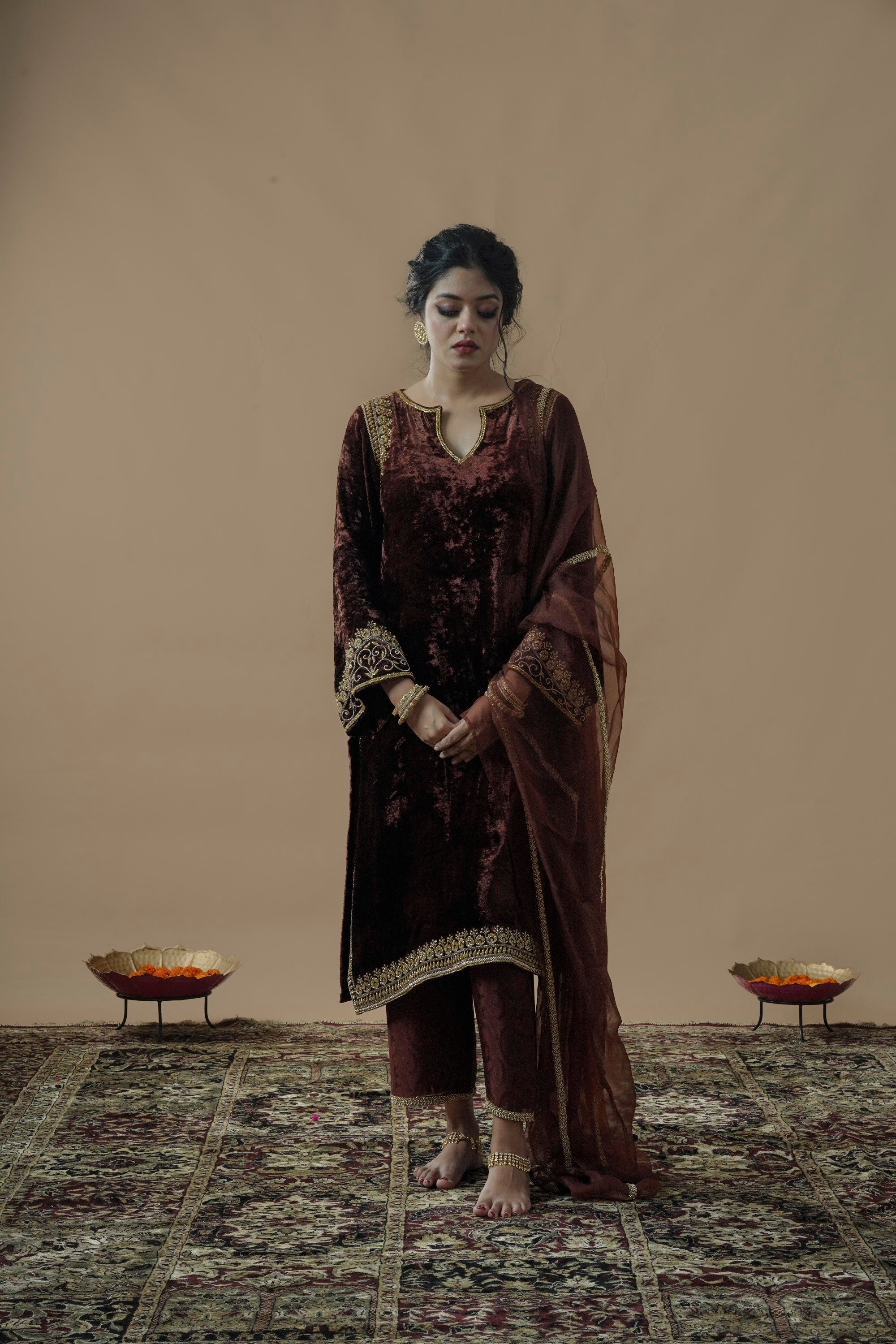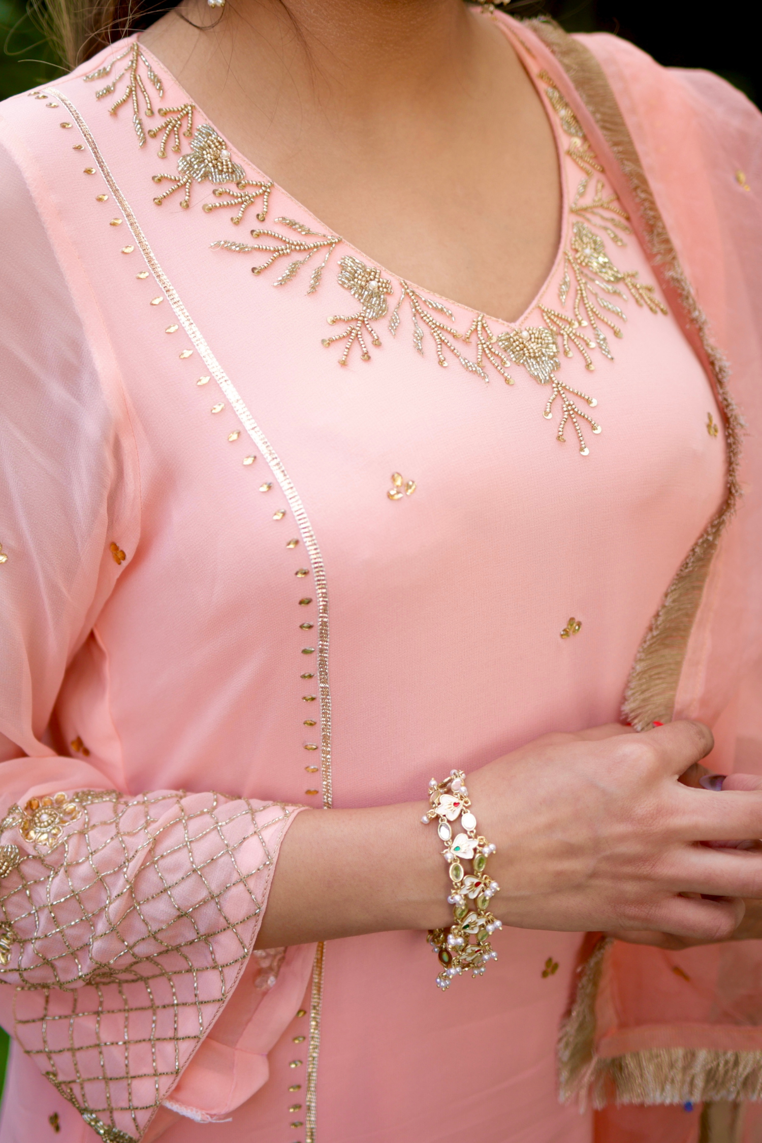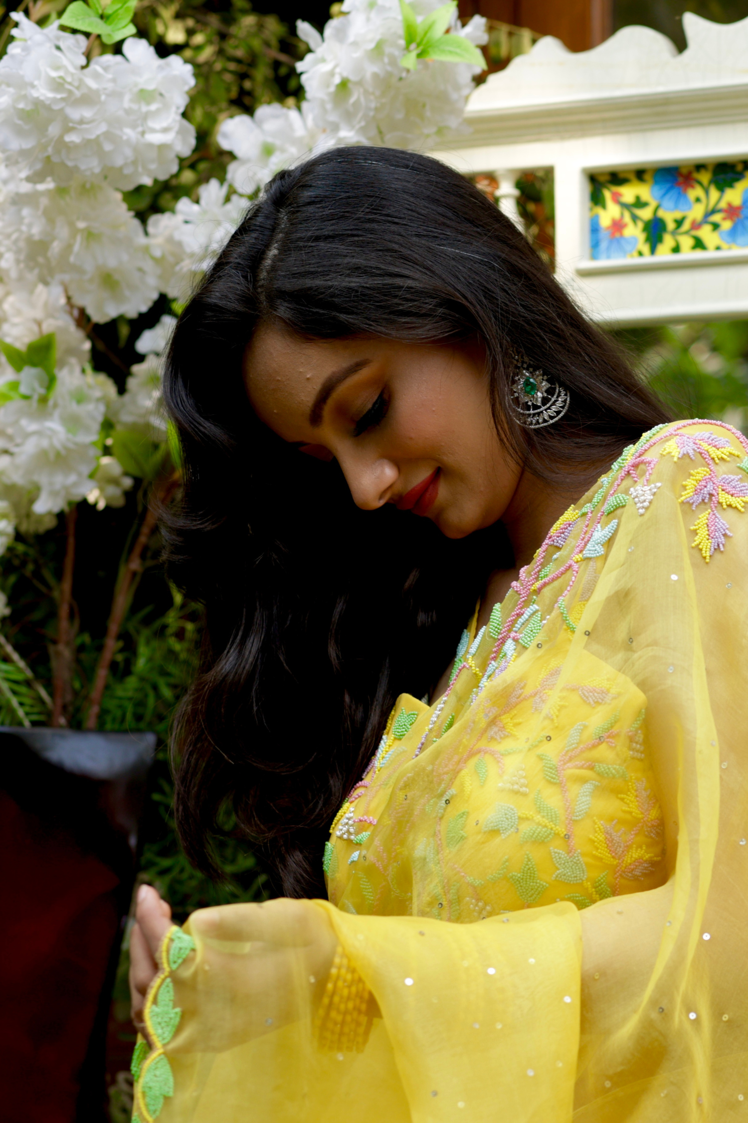 BOTTLE GREEN GARLAND NECKLINE KURTA SET