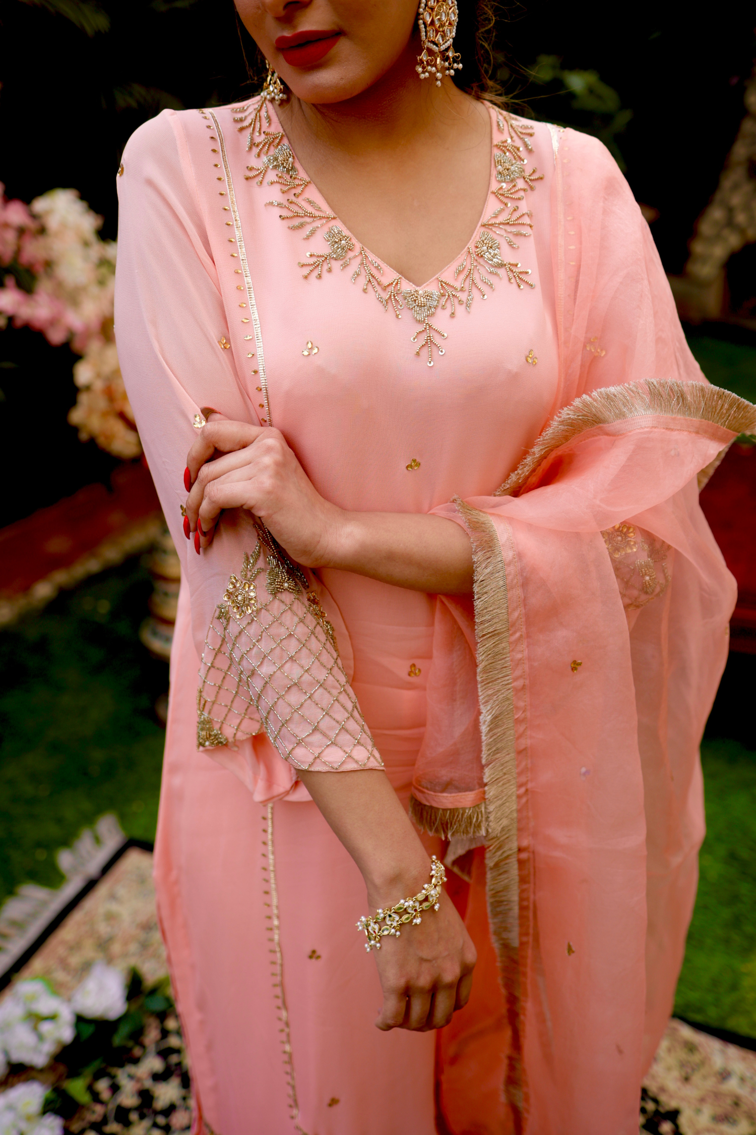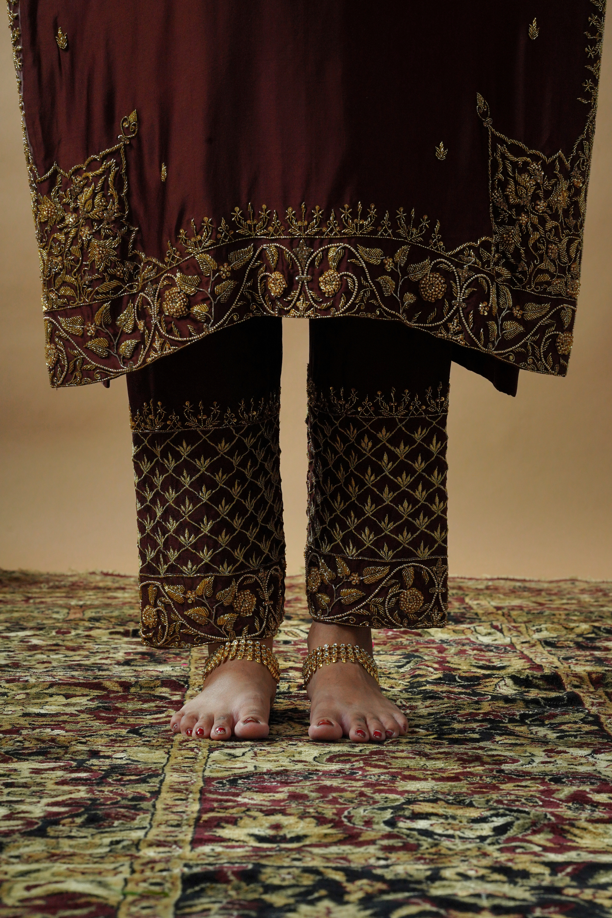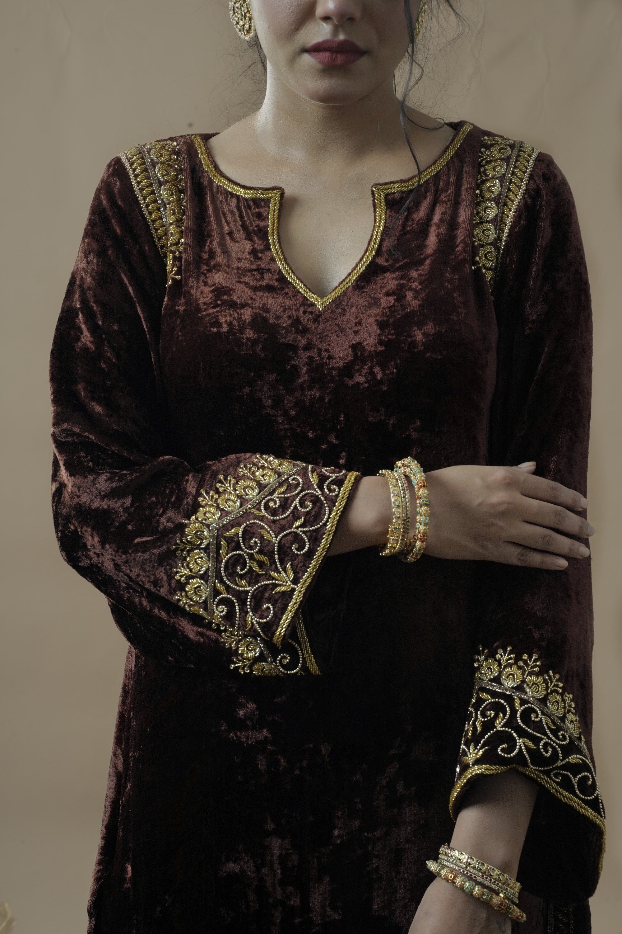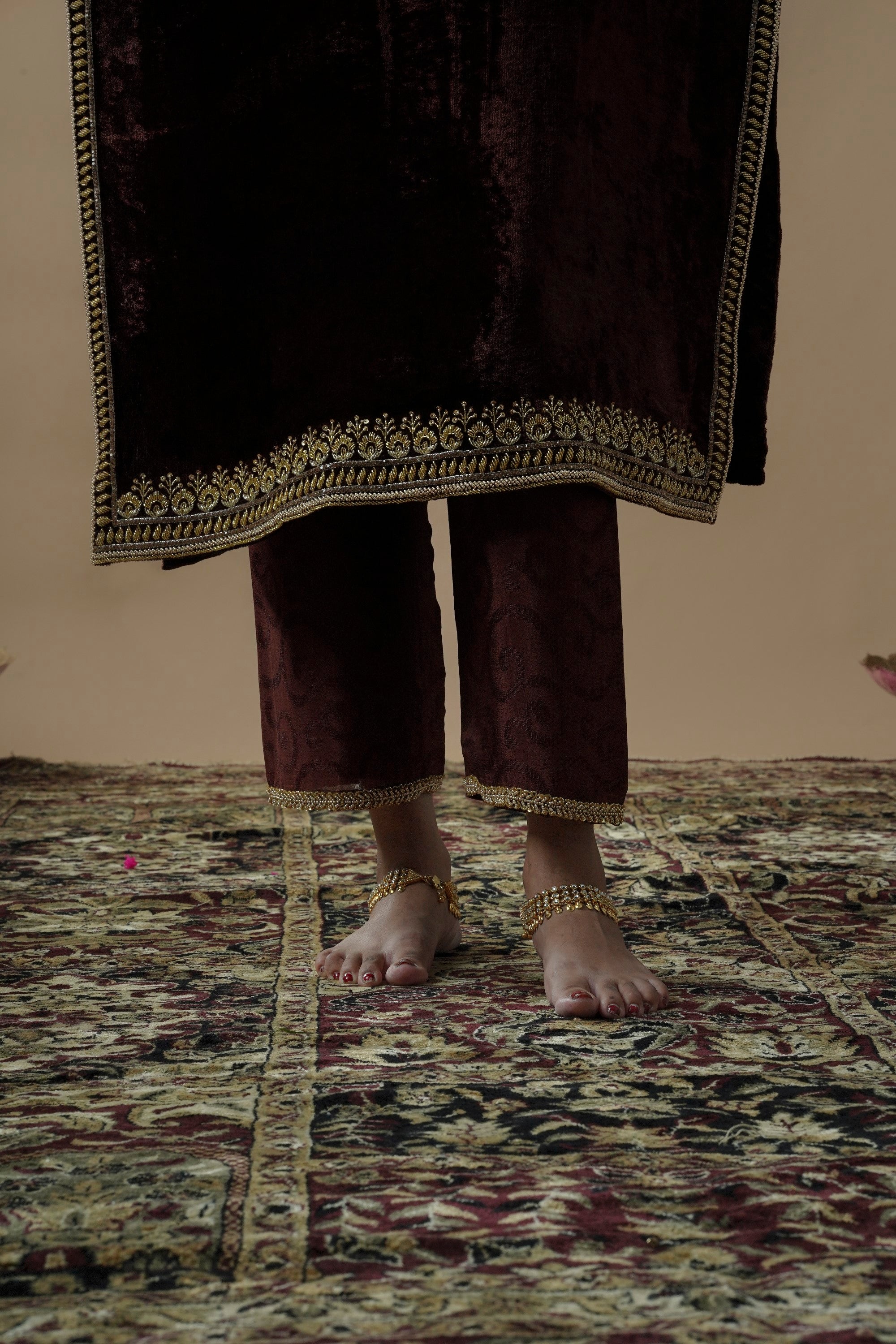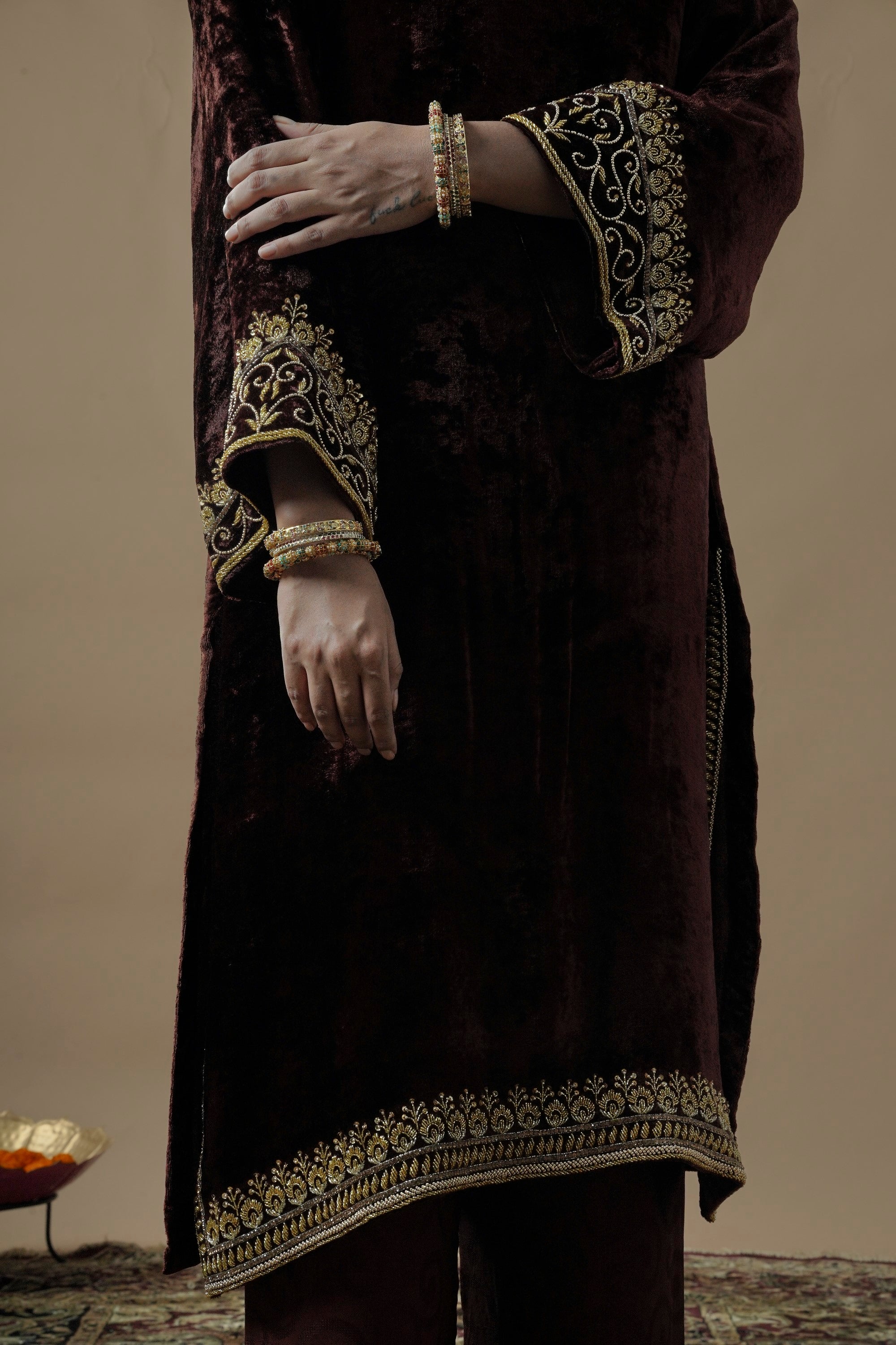 BOTTLE GREEN GARLAND NECKLINE KURTA SET