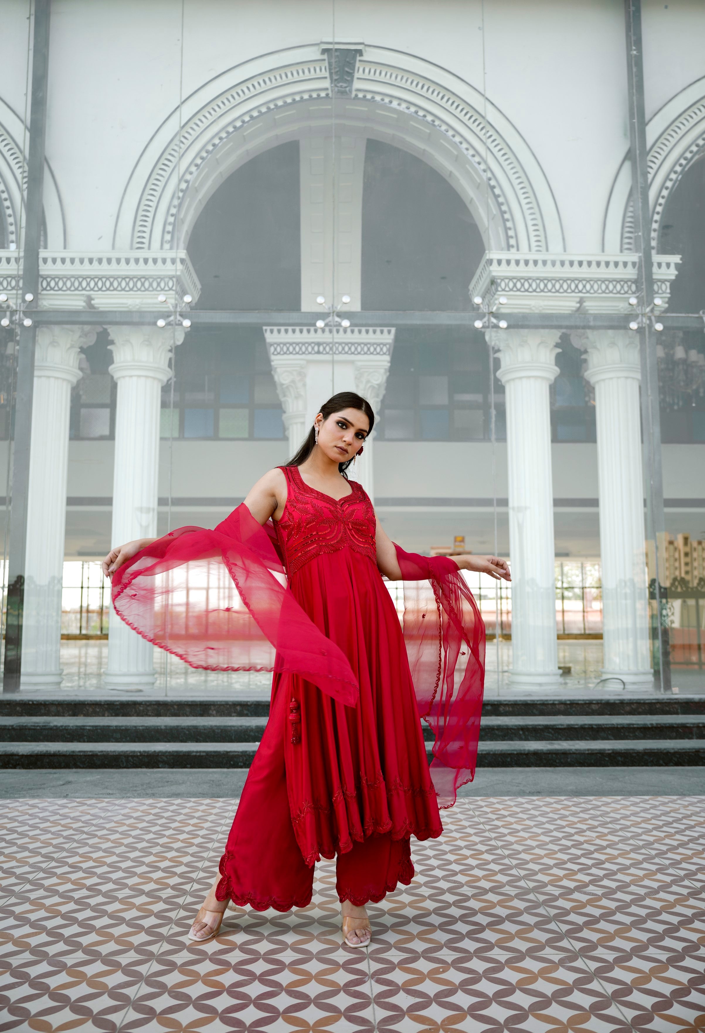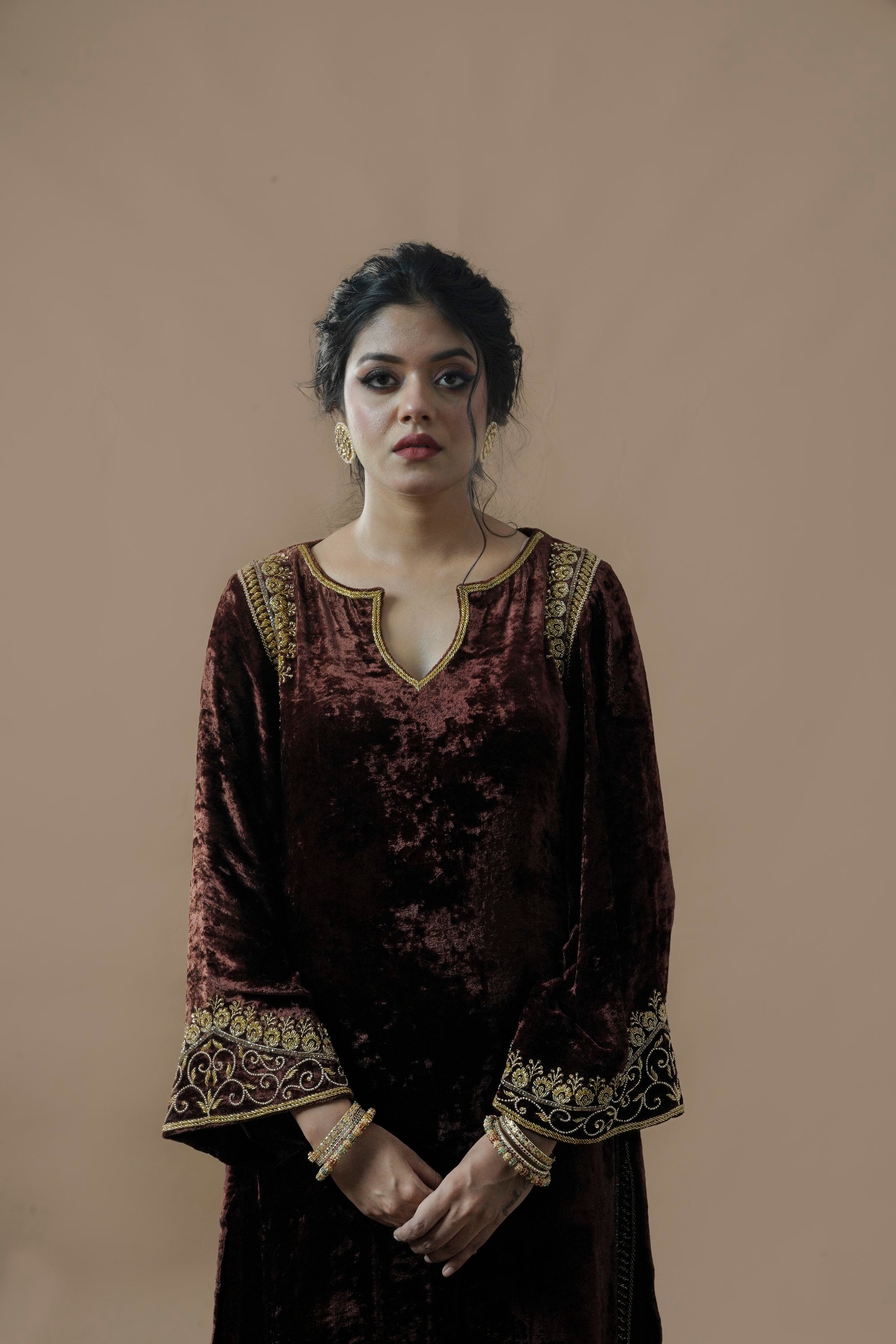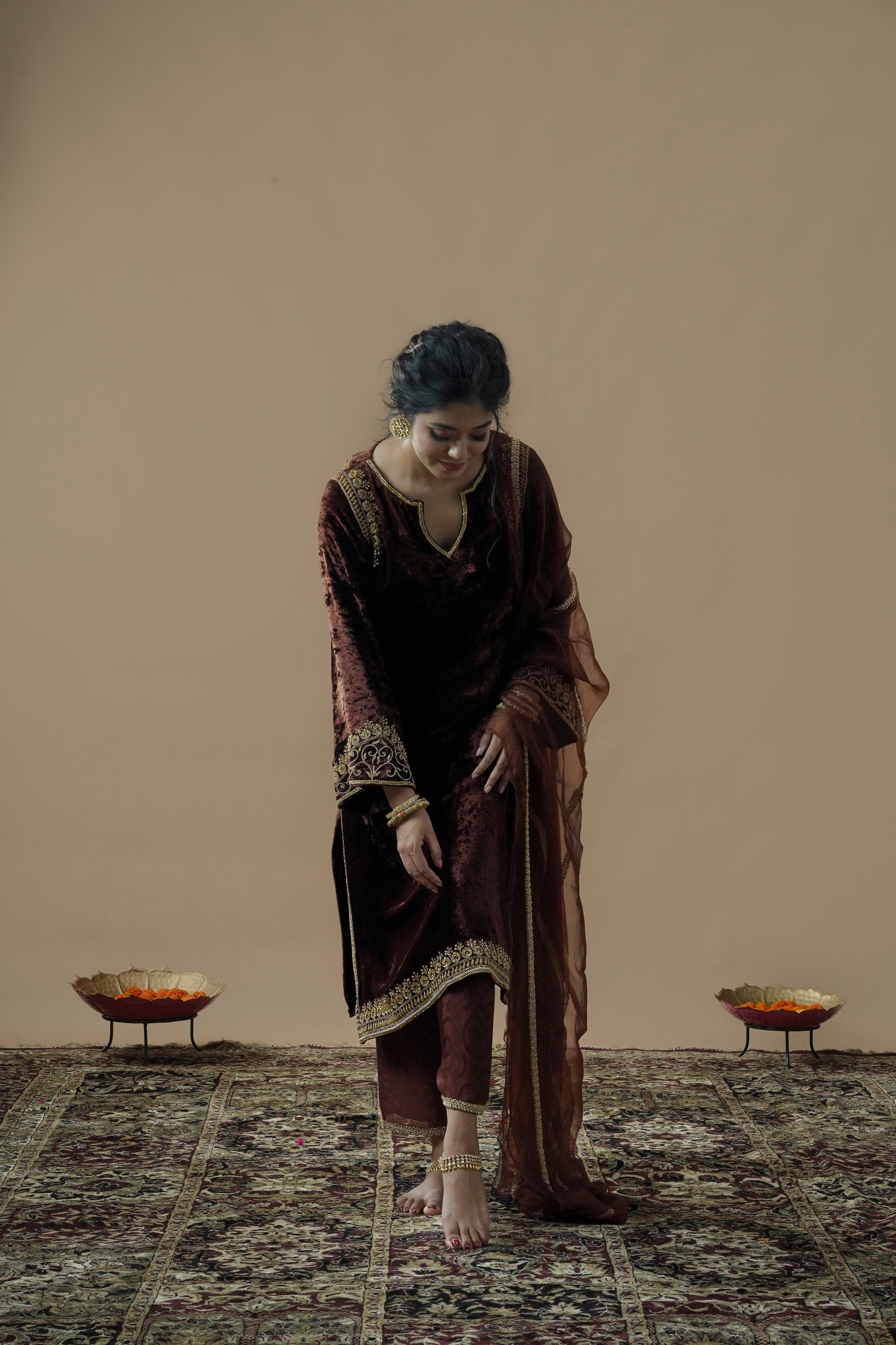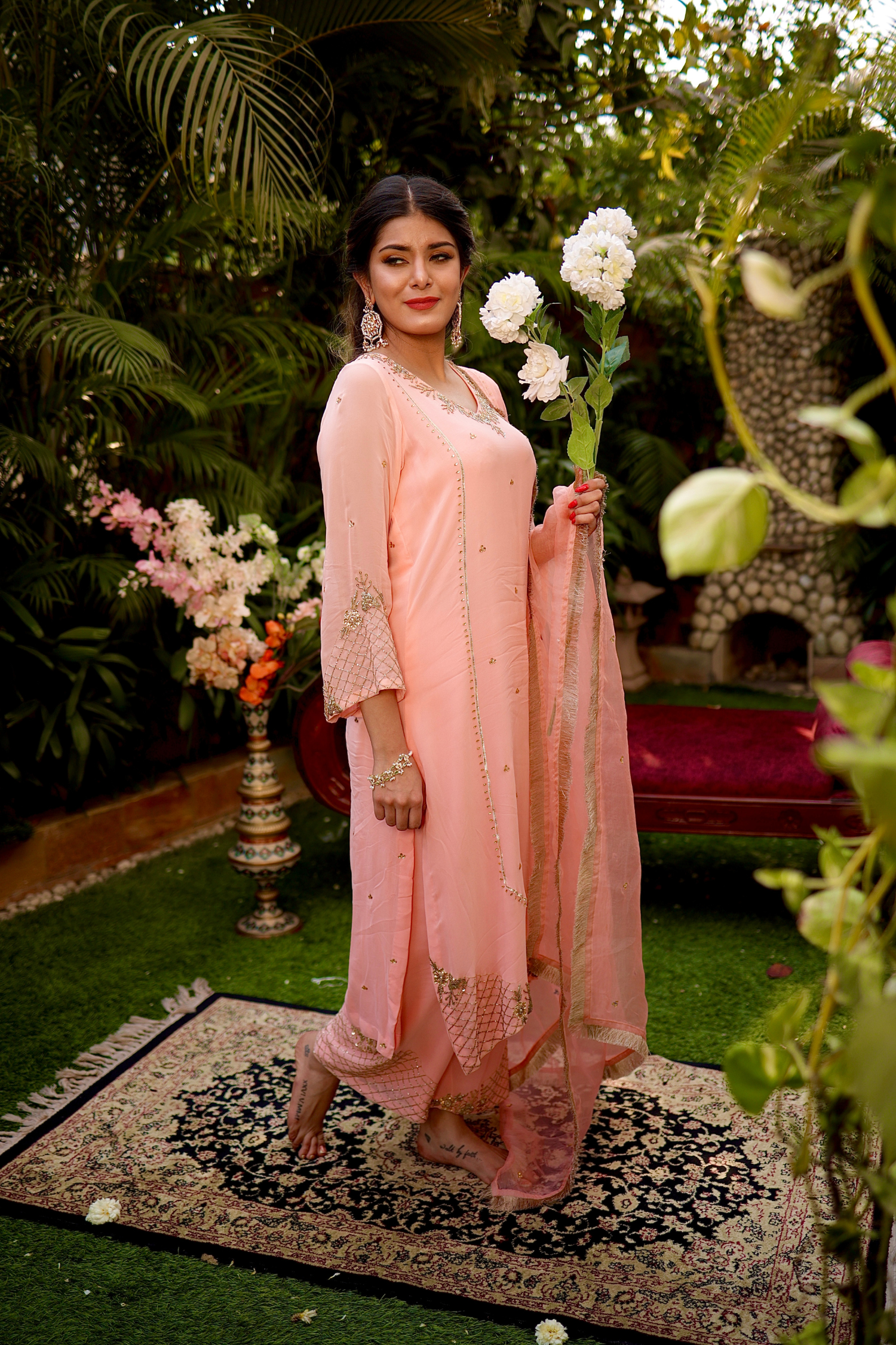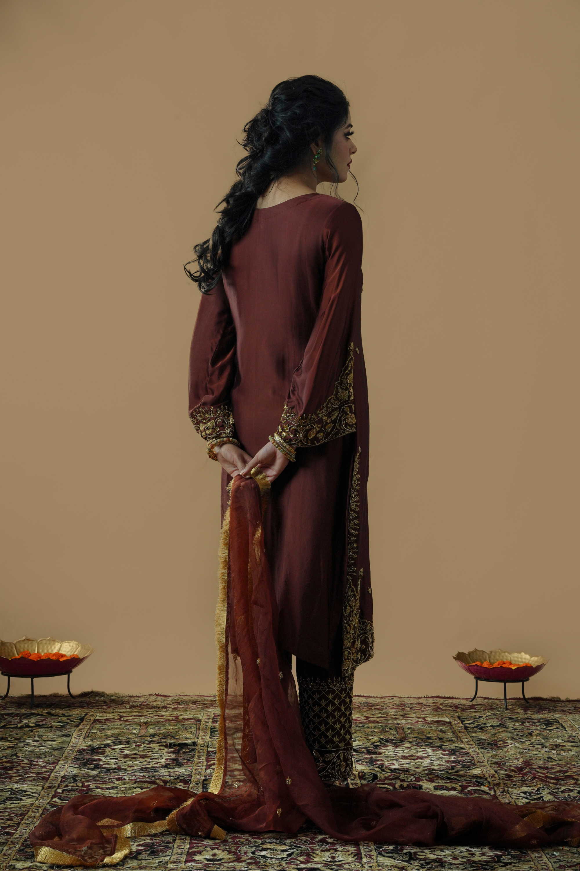 BOTTLE GREEN GARLAND NECKLINE KURTA SET