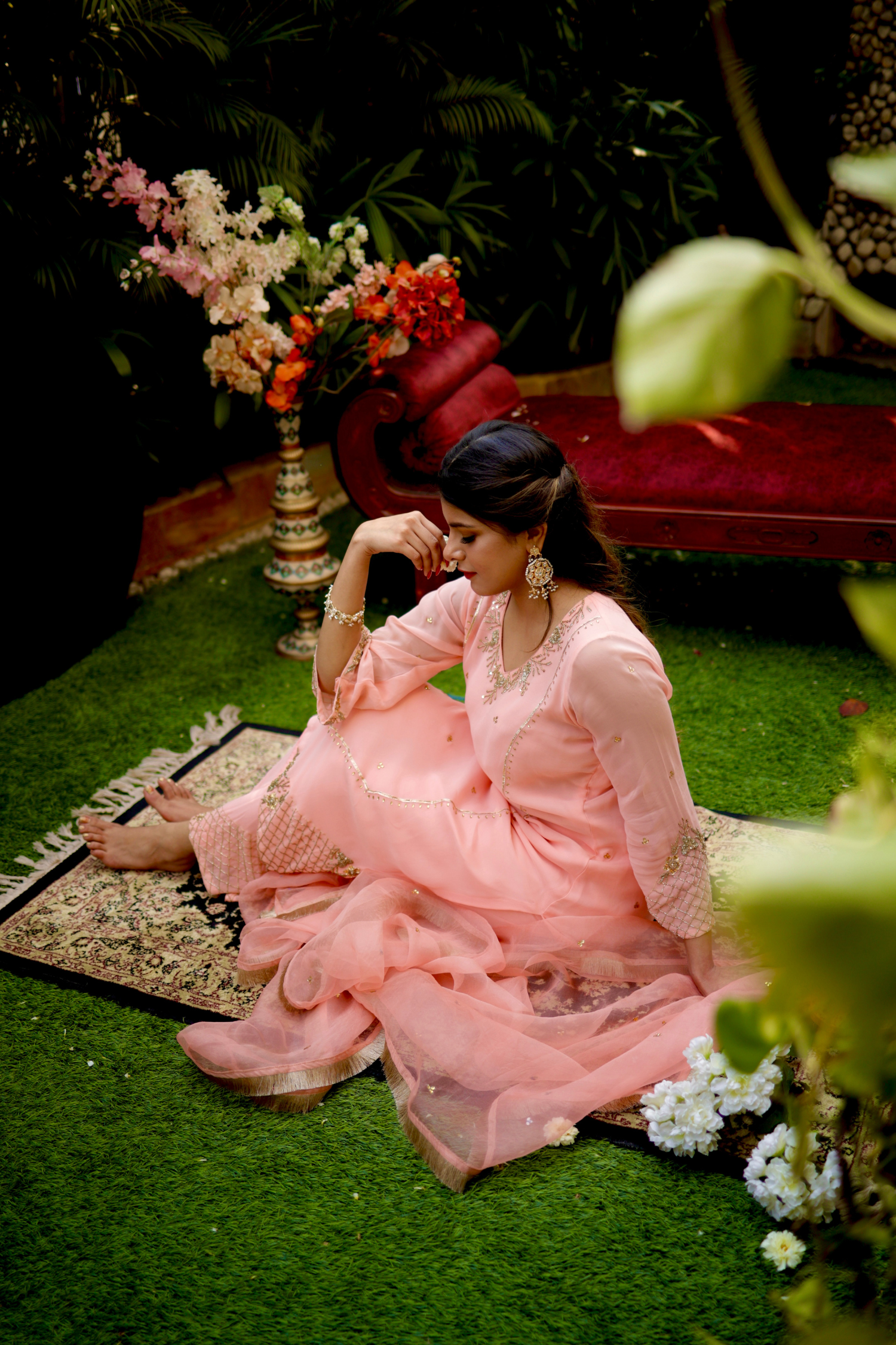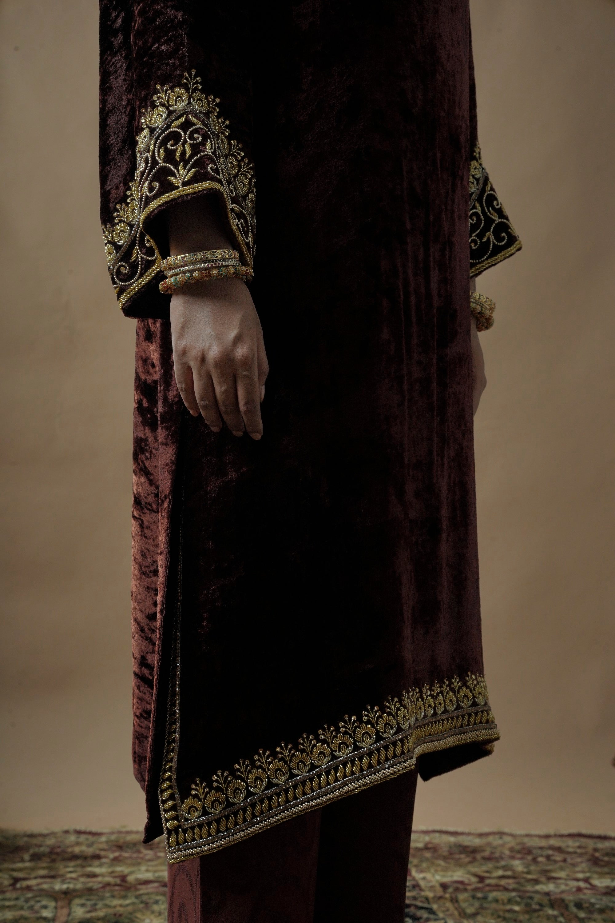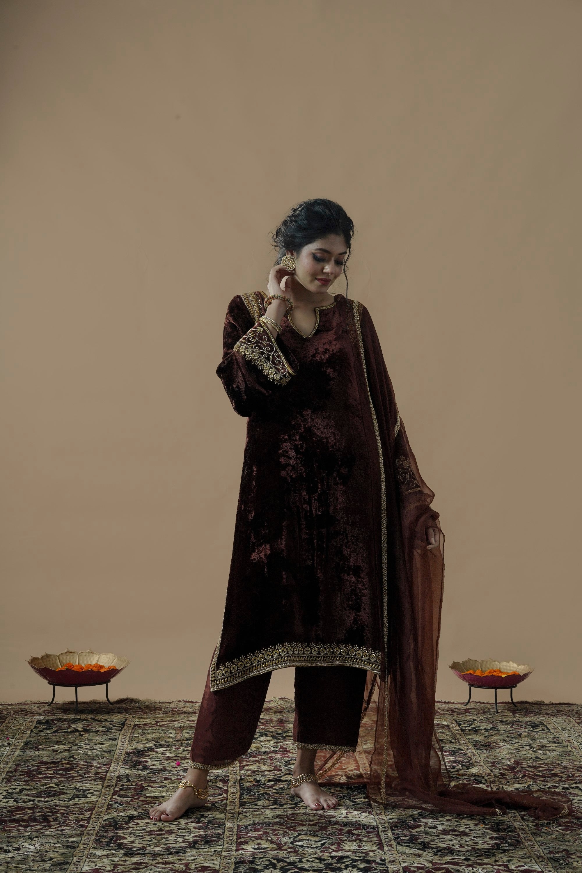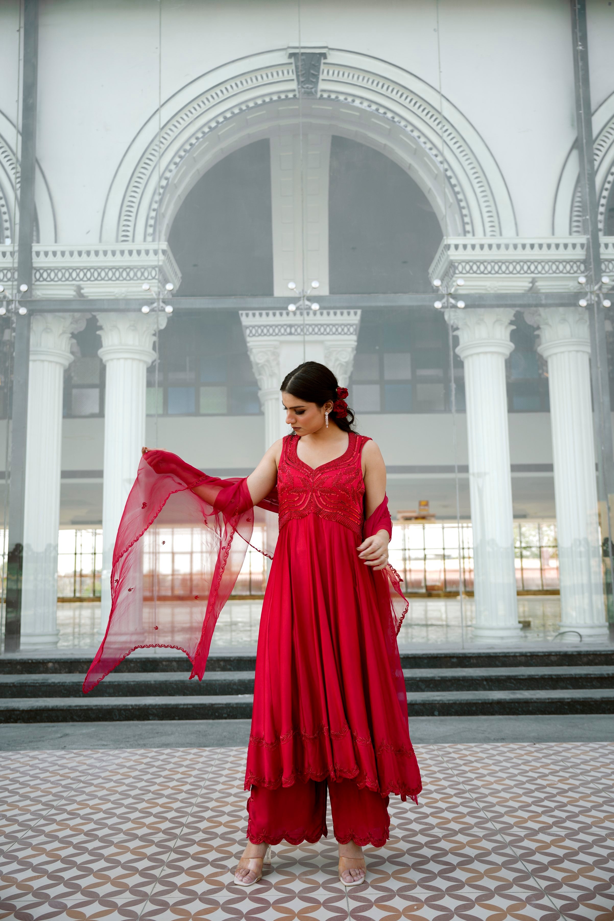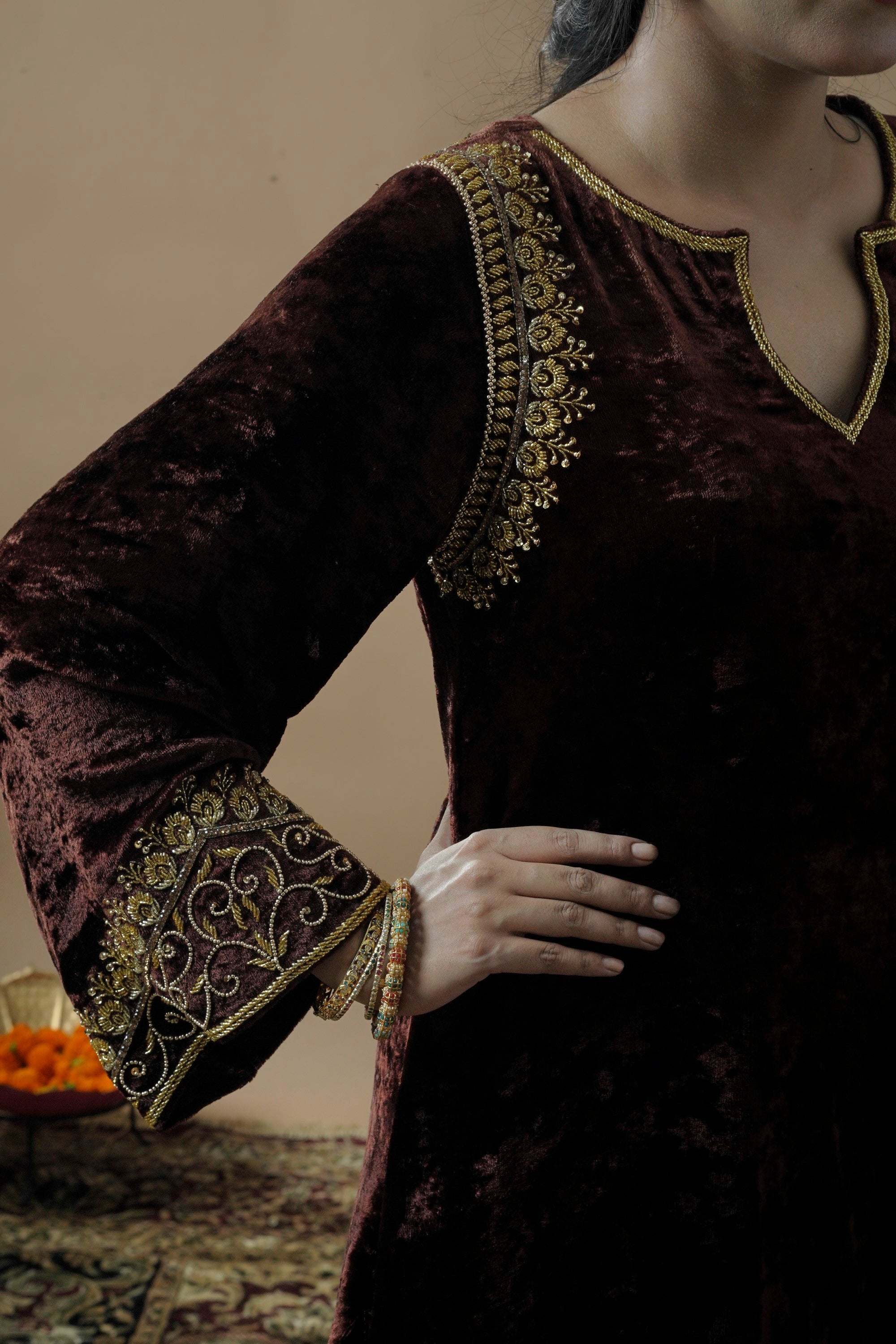 BOTTLE GREEN GARLAND NECKLINE KURTA SET