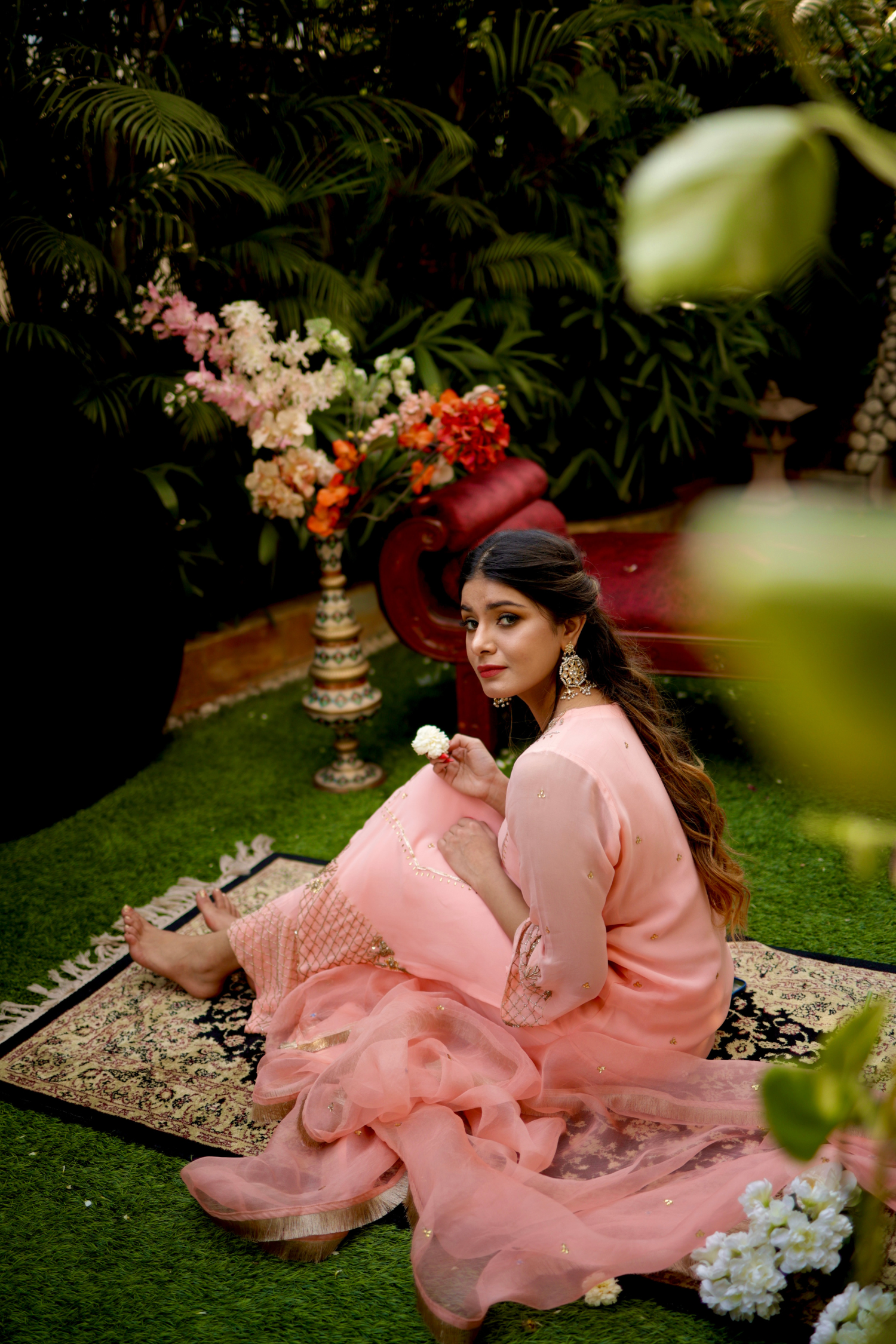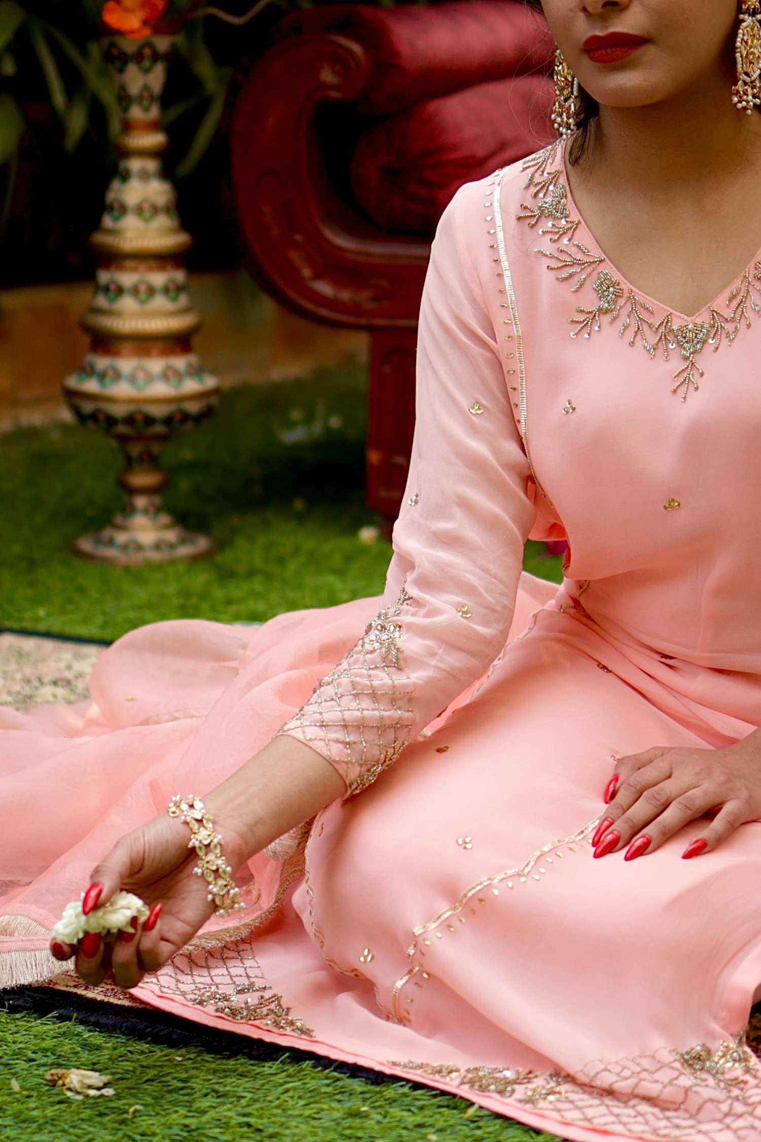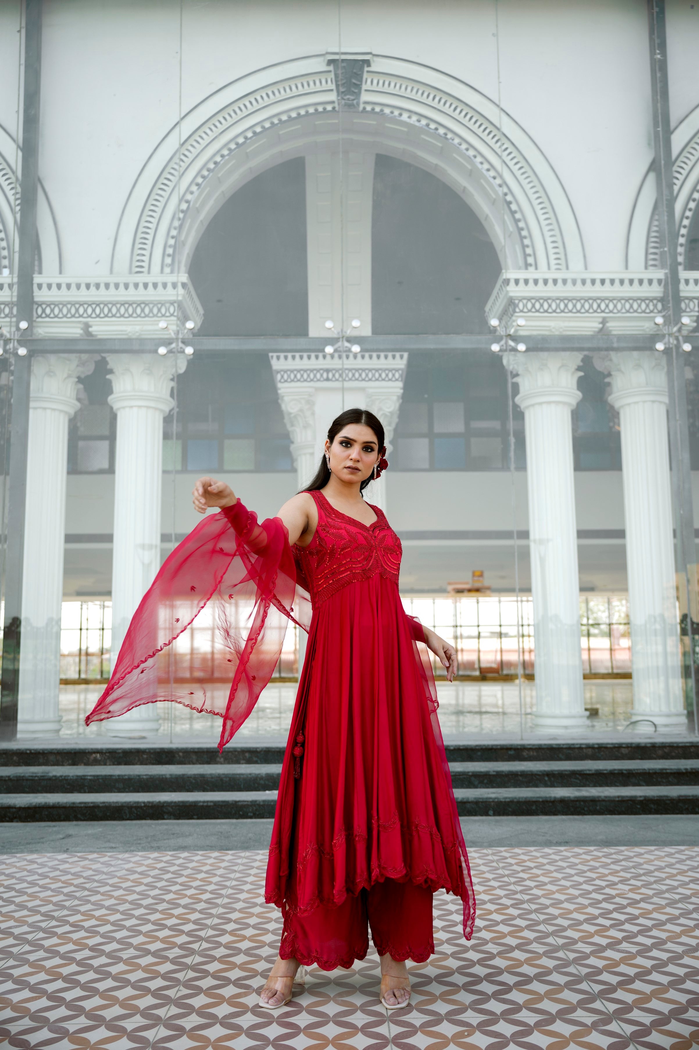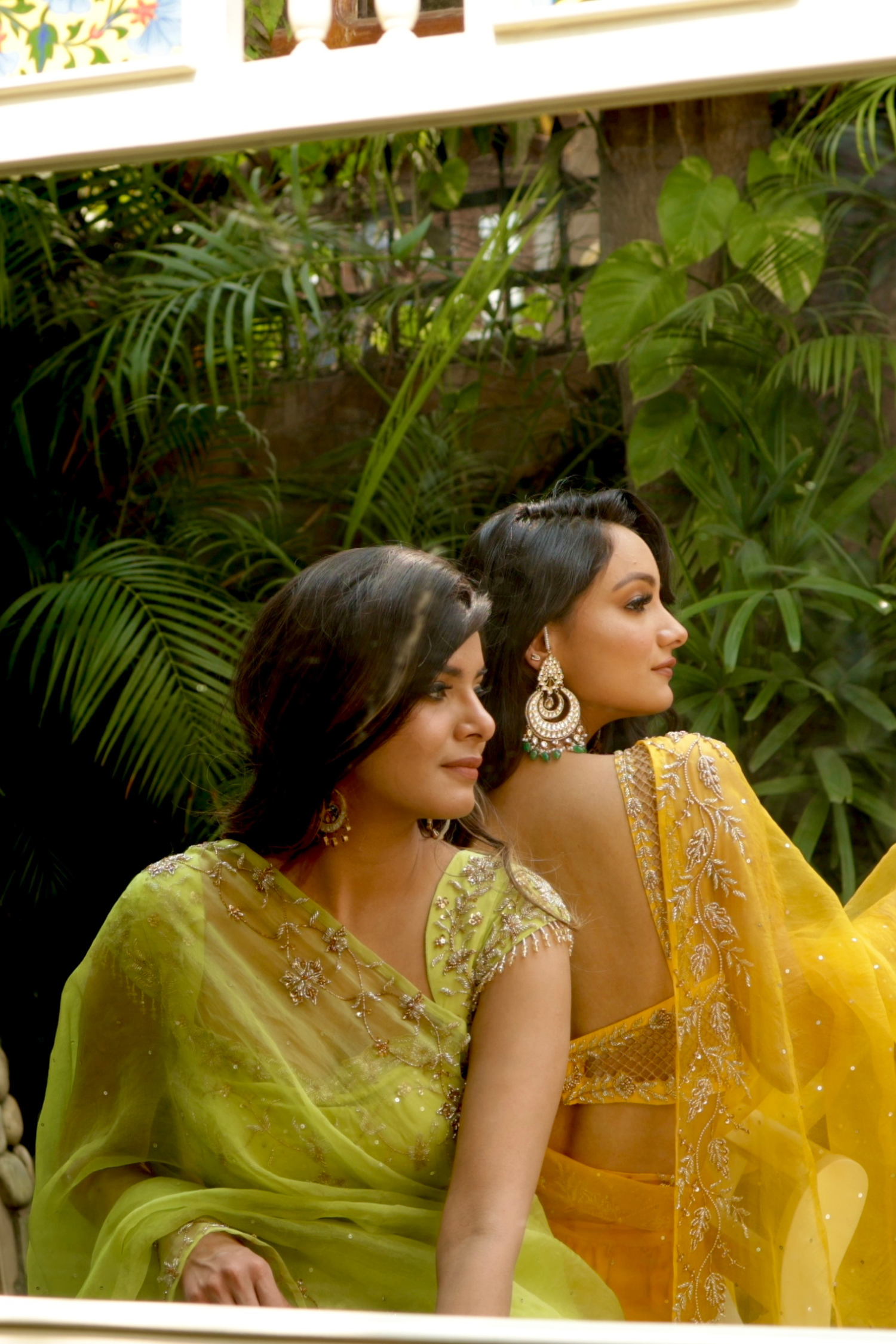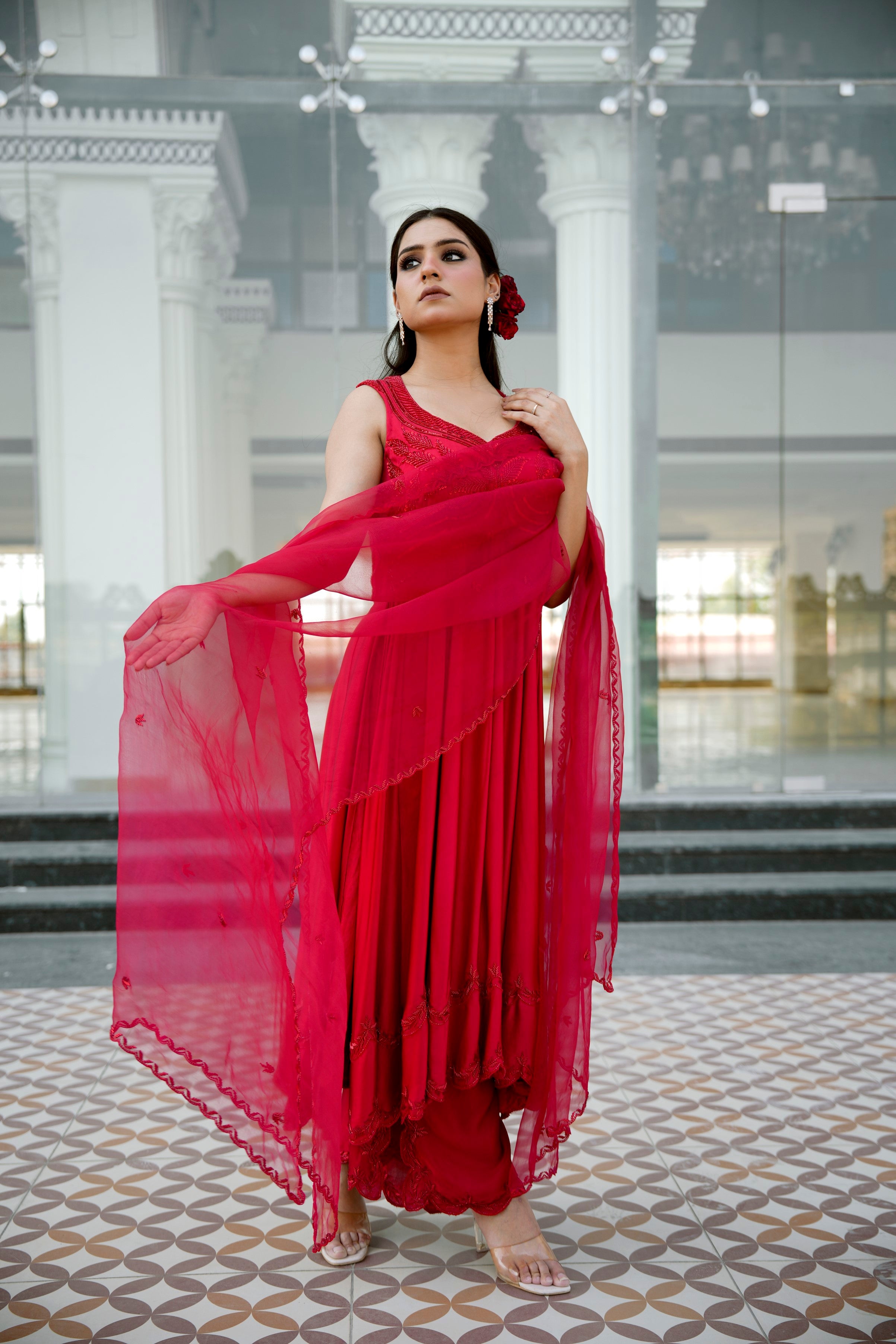 BOTTLE GREEN GARLAND NECKLINE KURTA SET