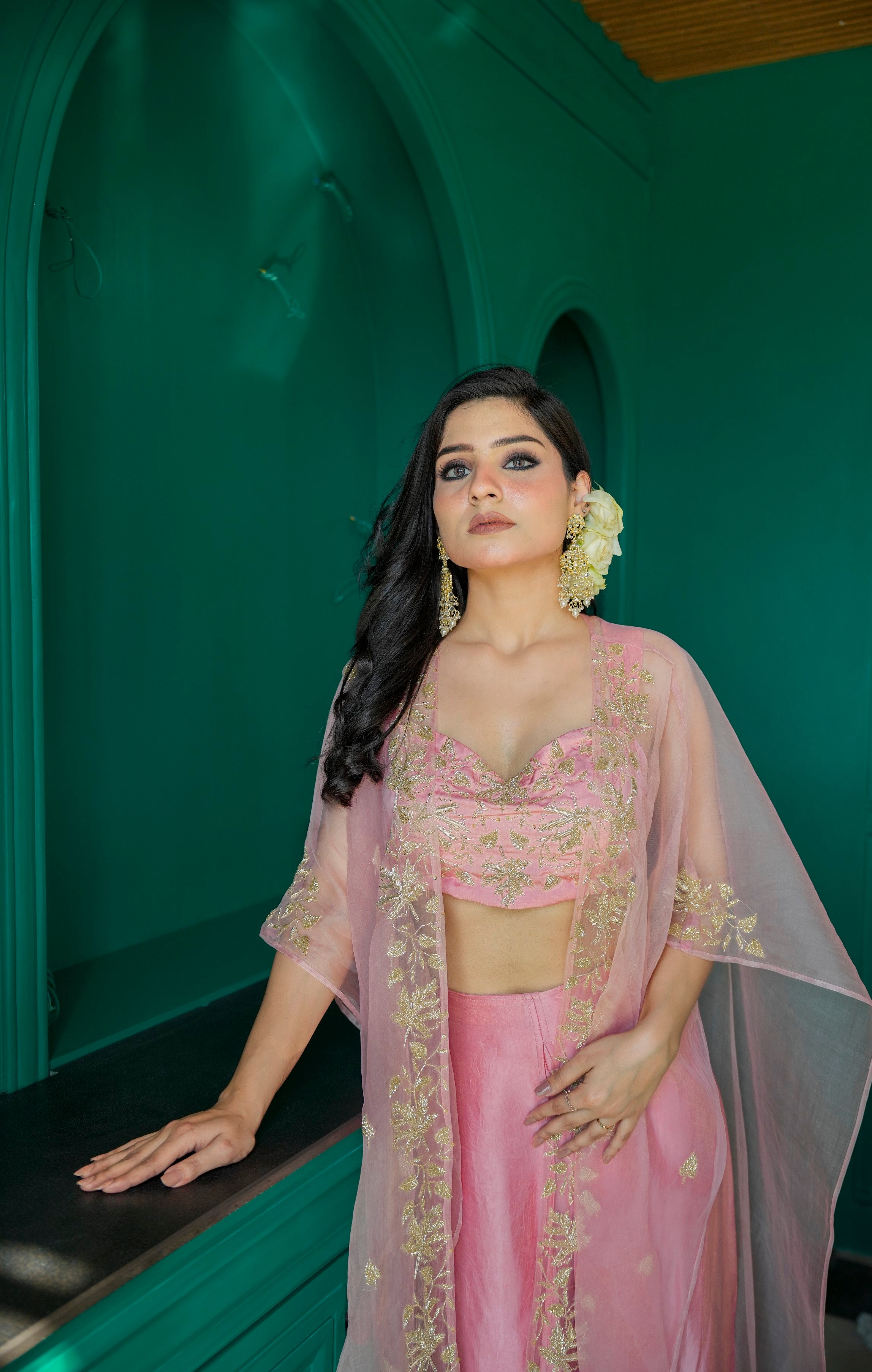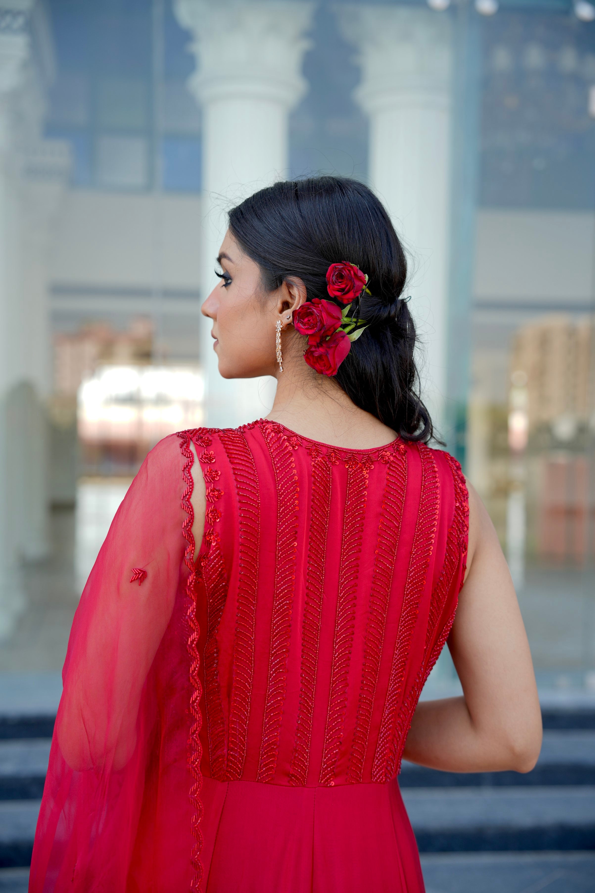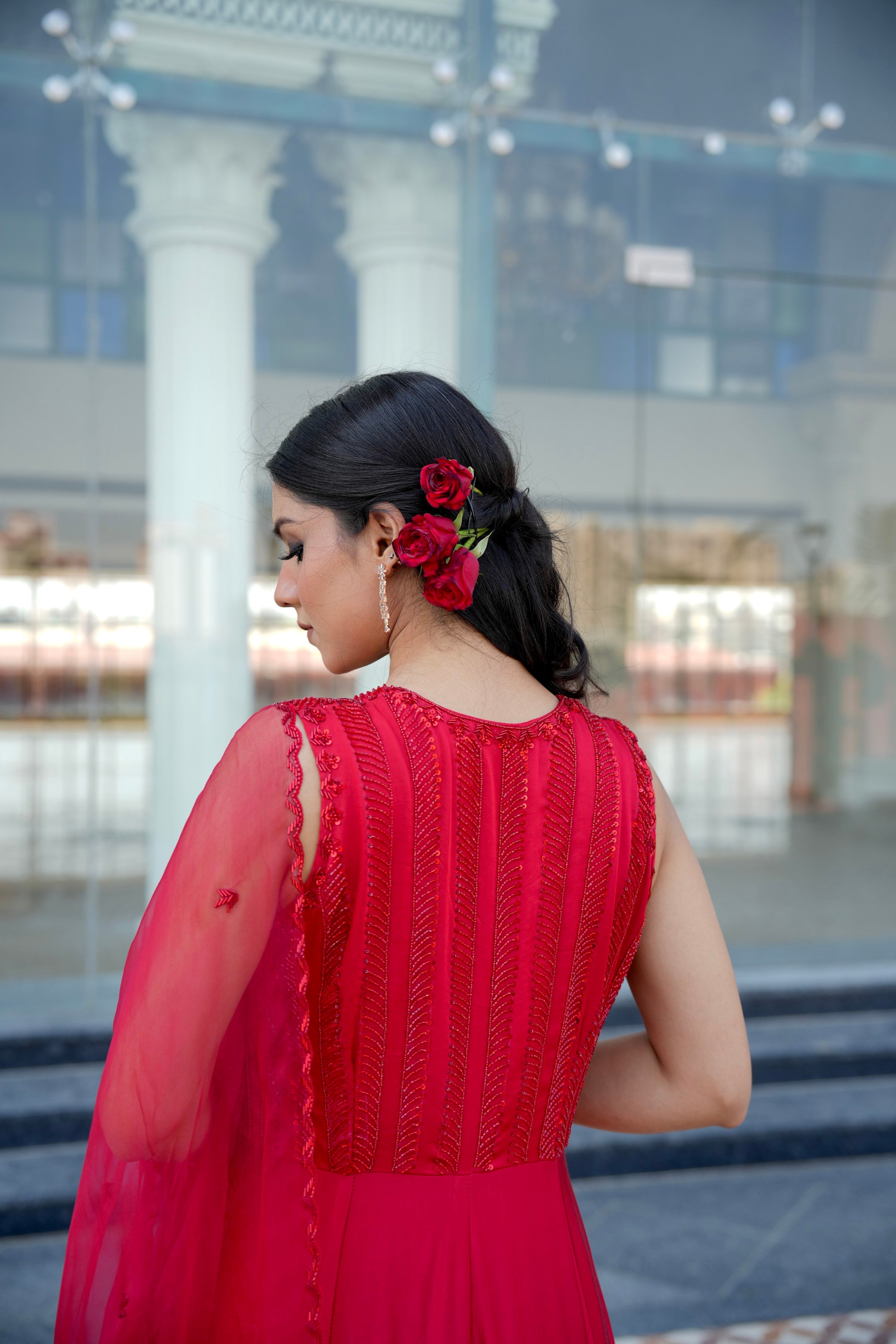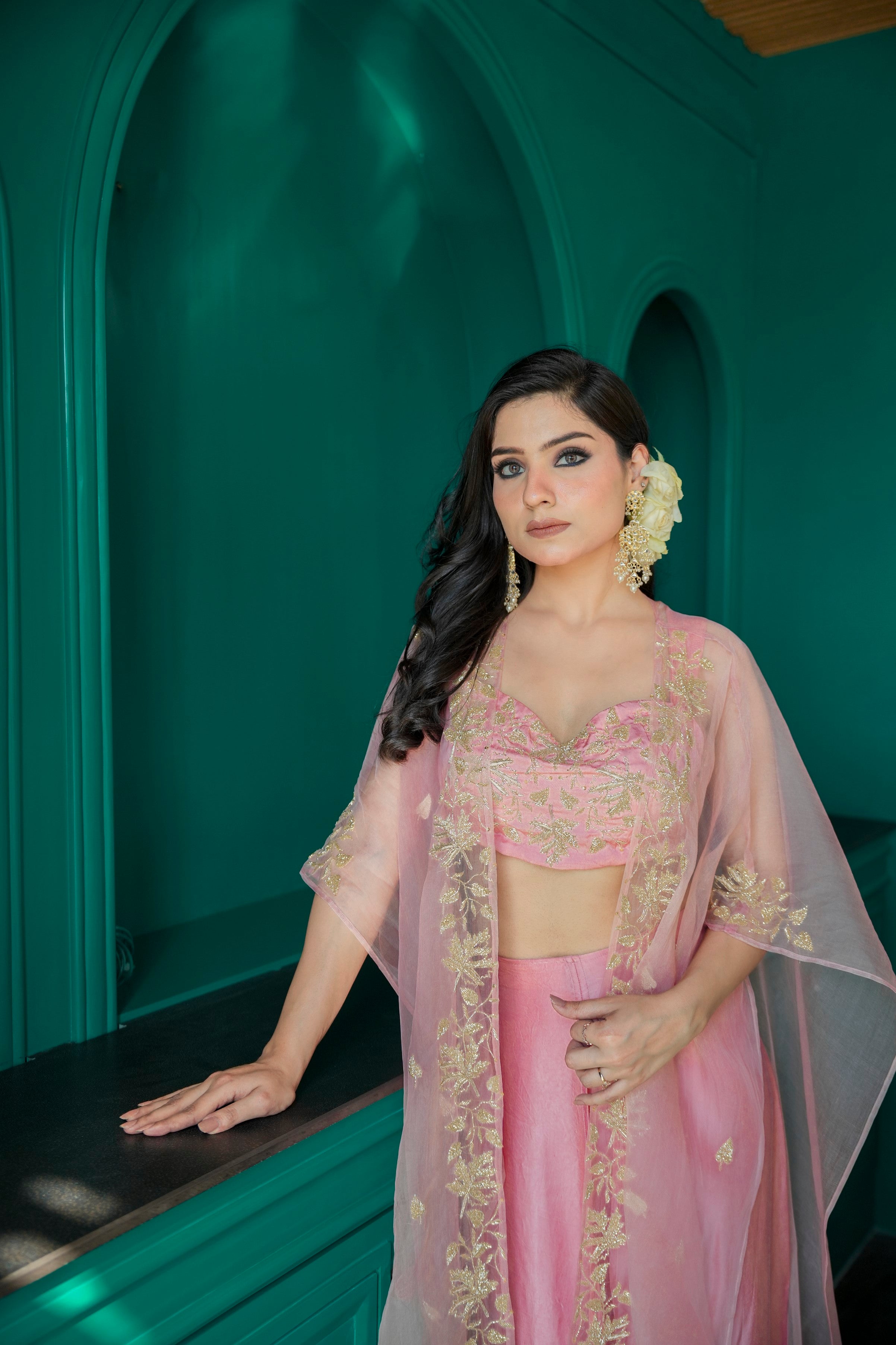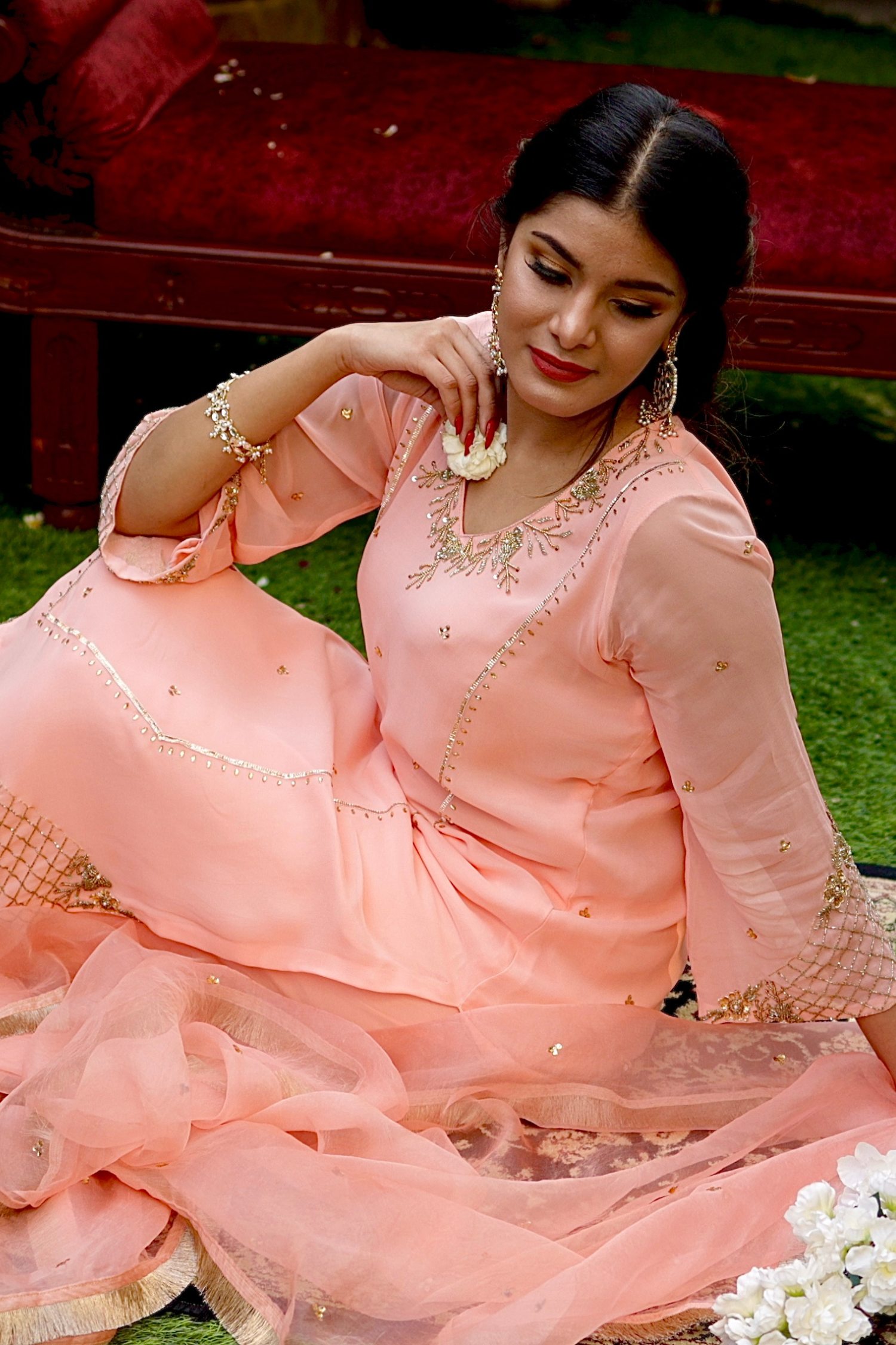 BOTTLE GREEN GARLAND NECKLINE KURTA SET