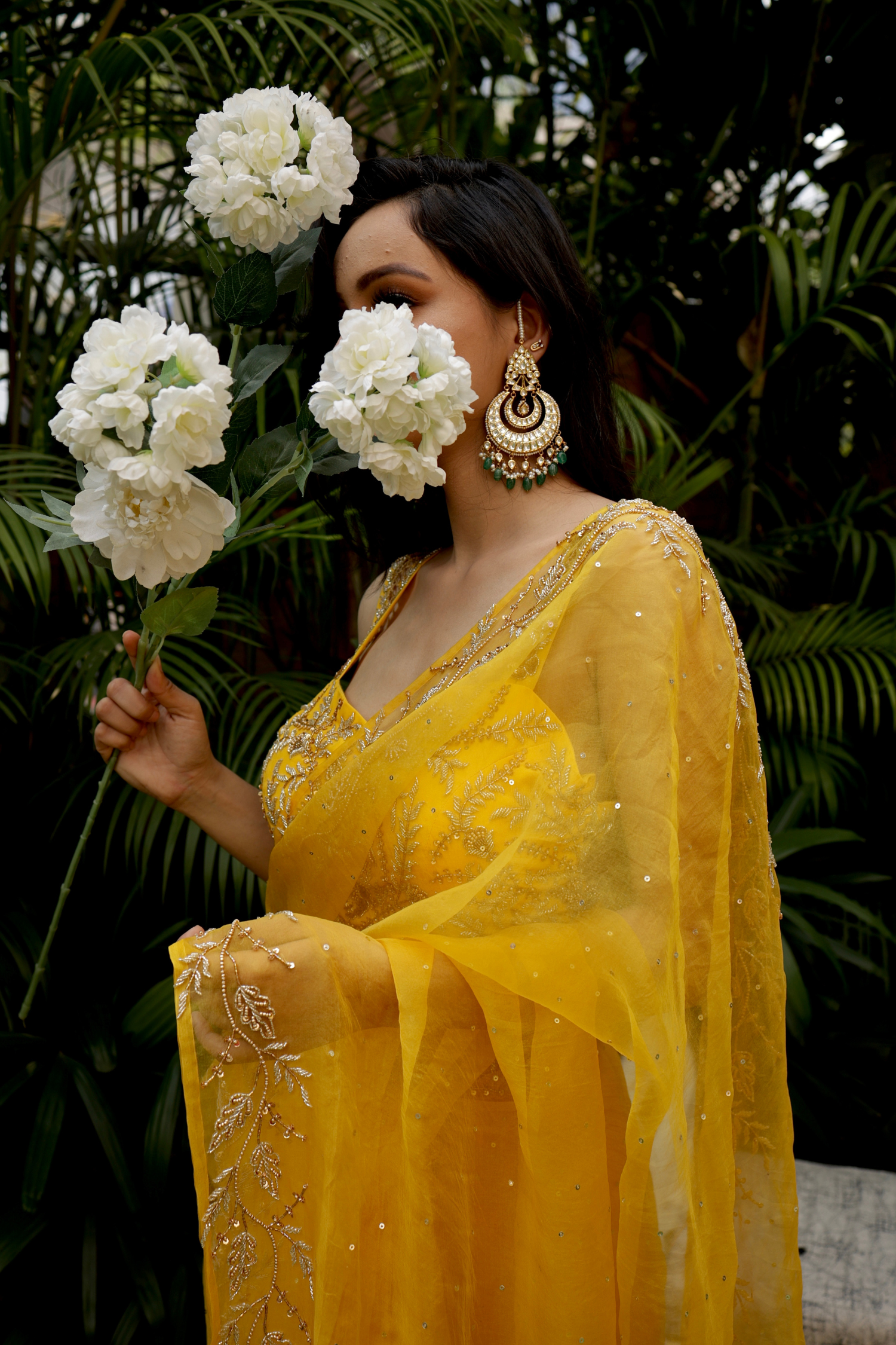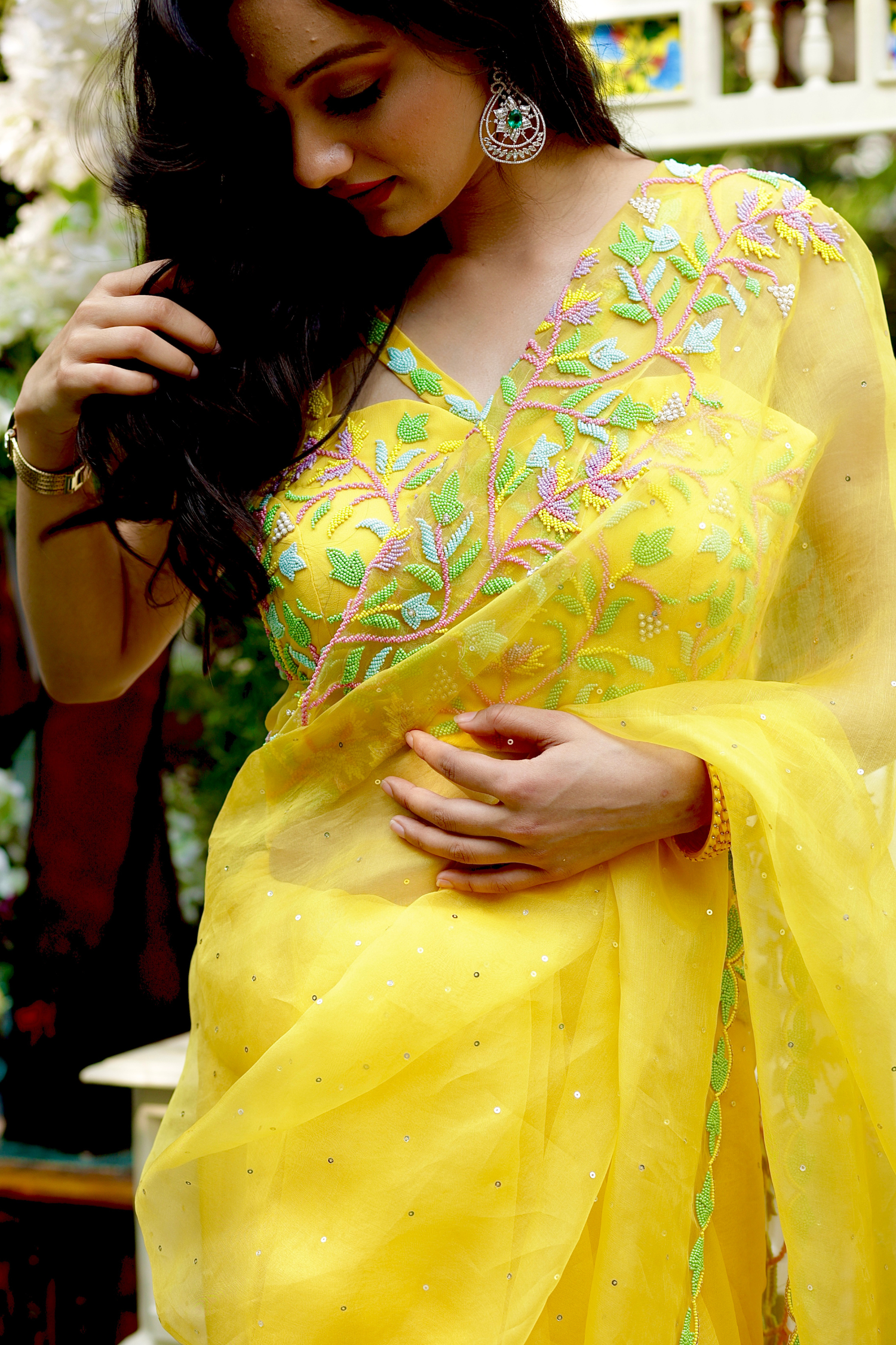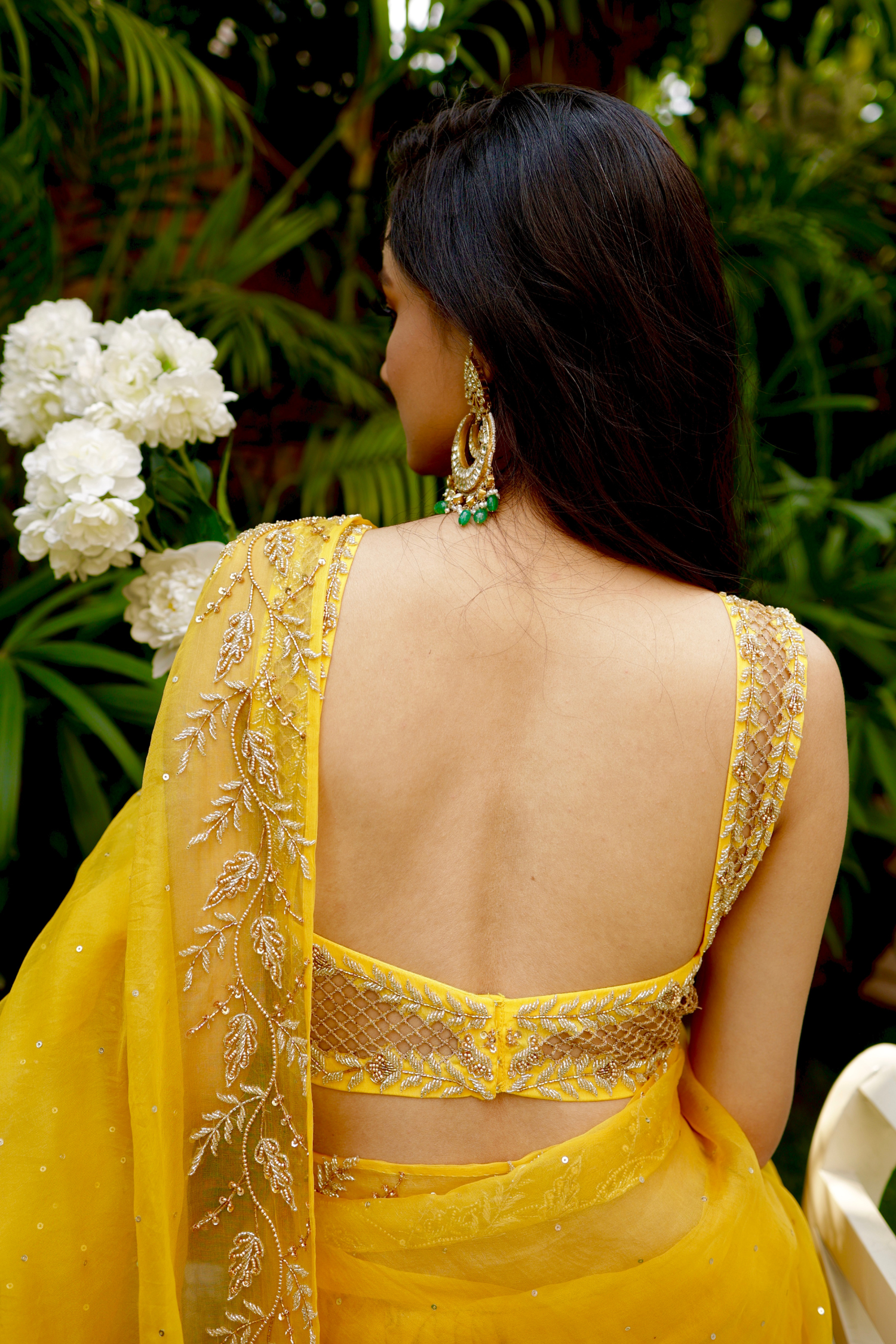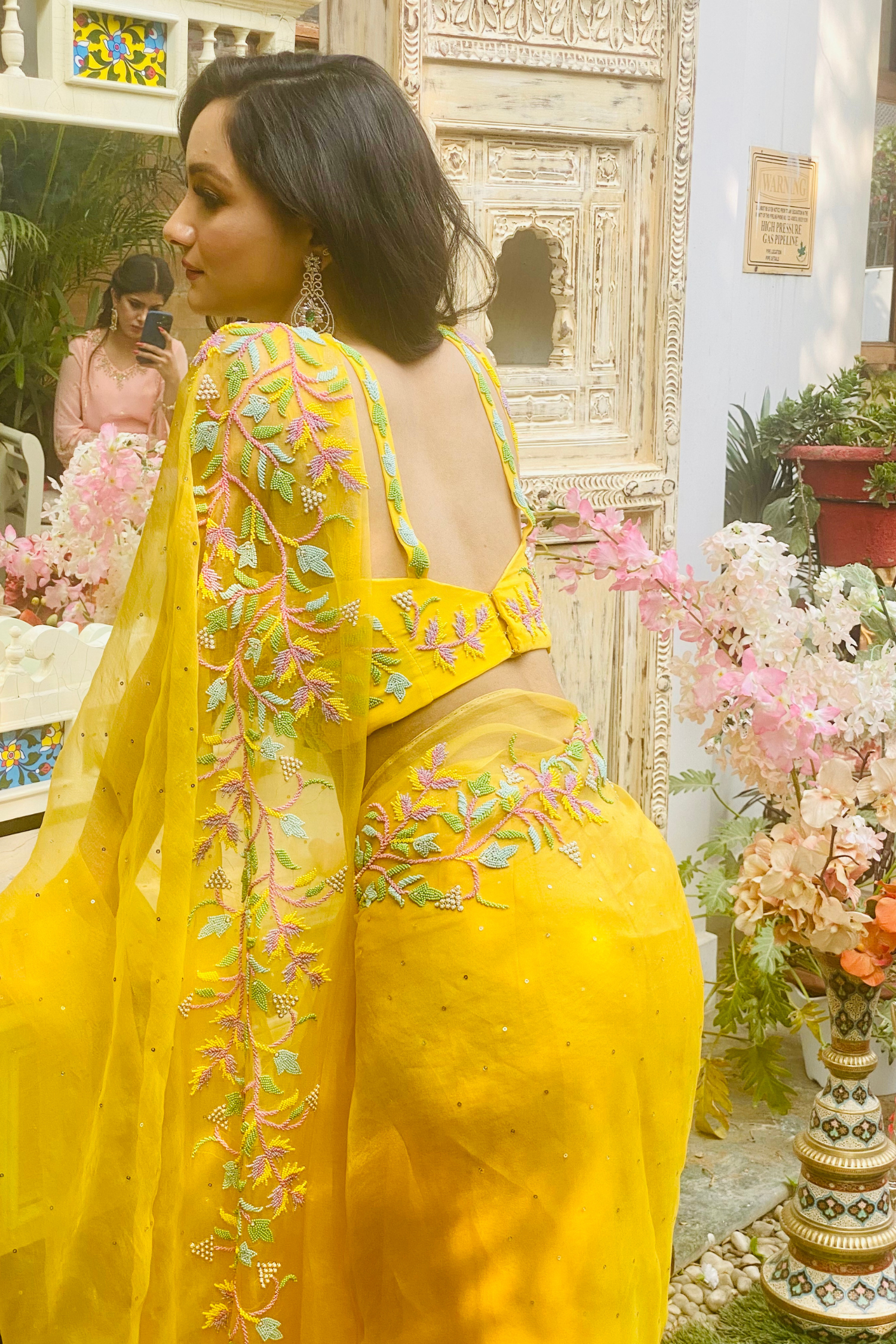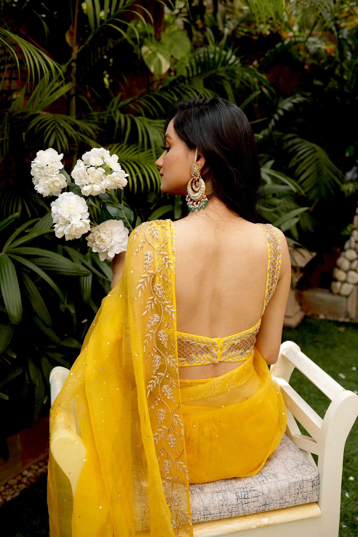 Black rajasthani embroidered mirrorwork saree and blouse set