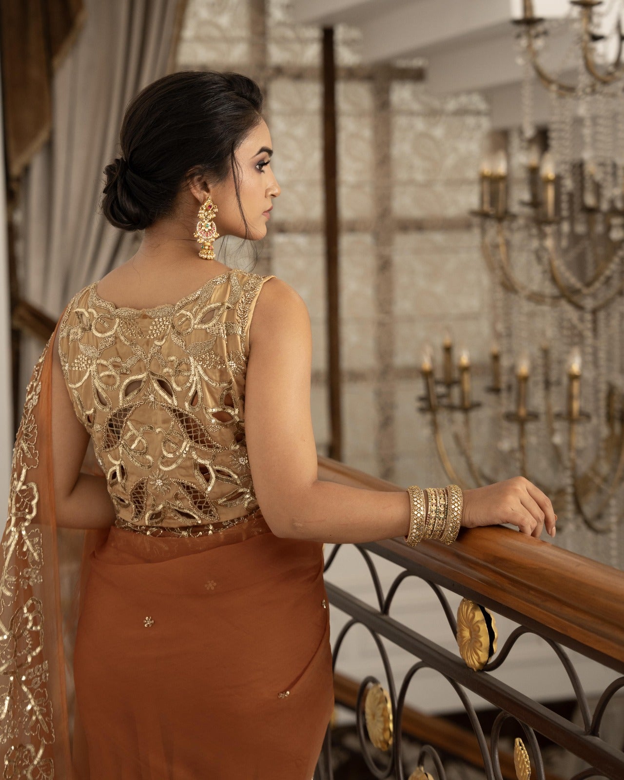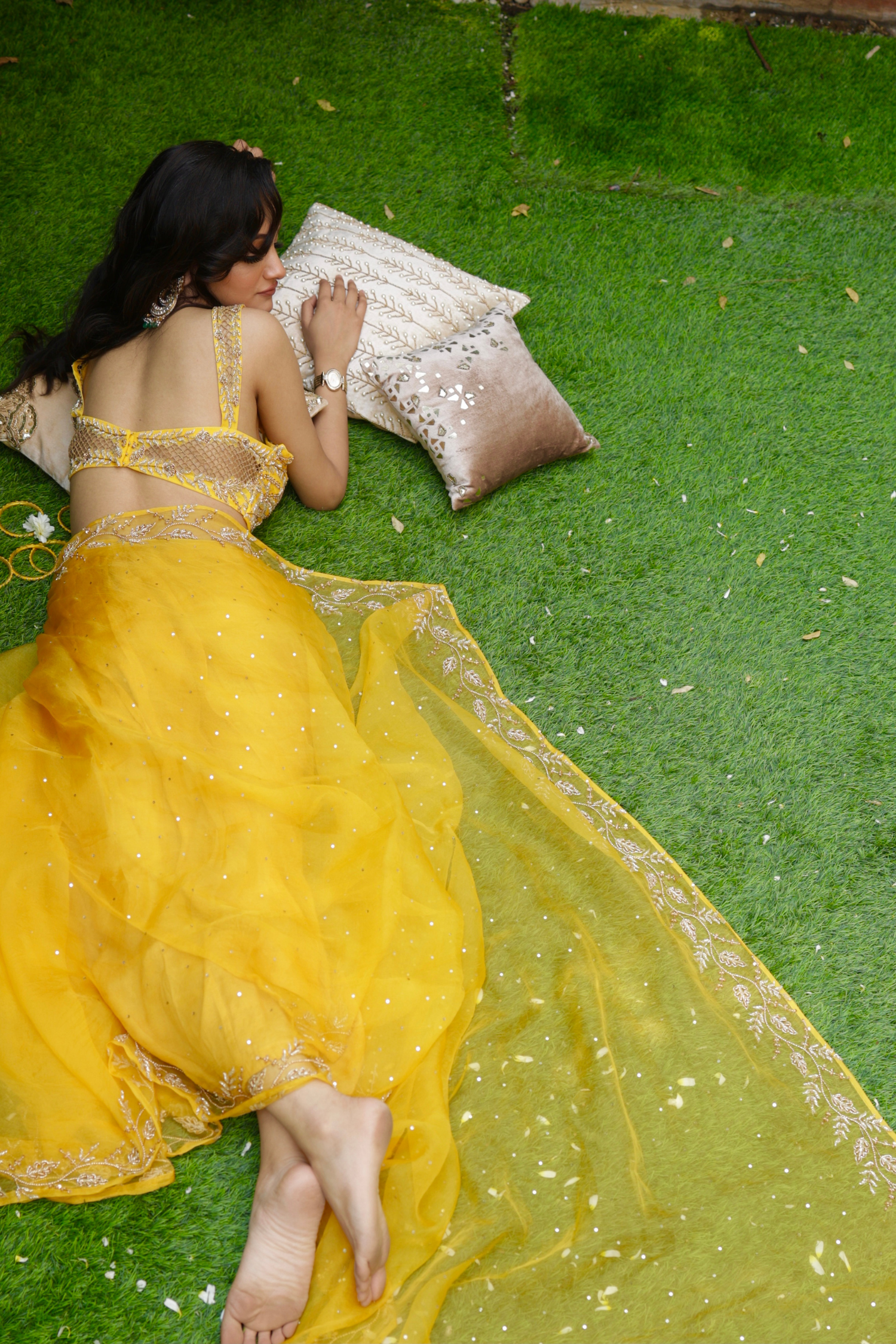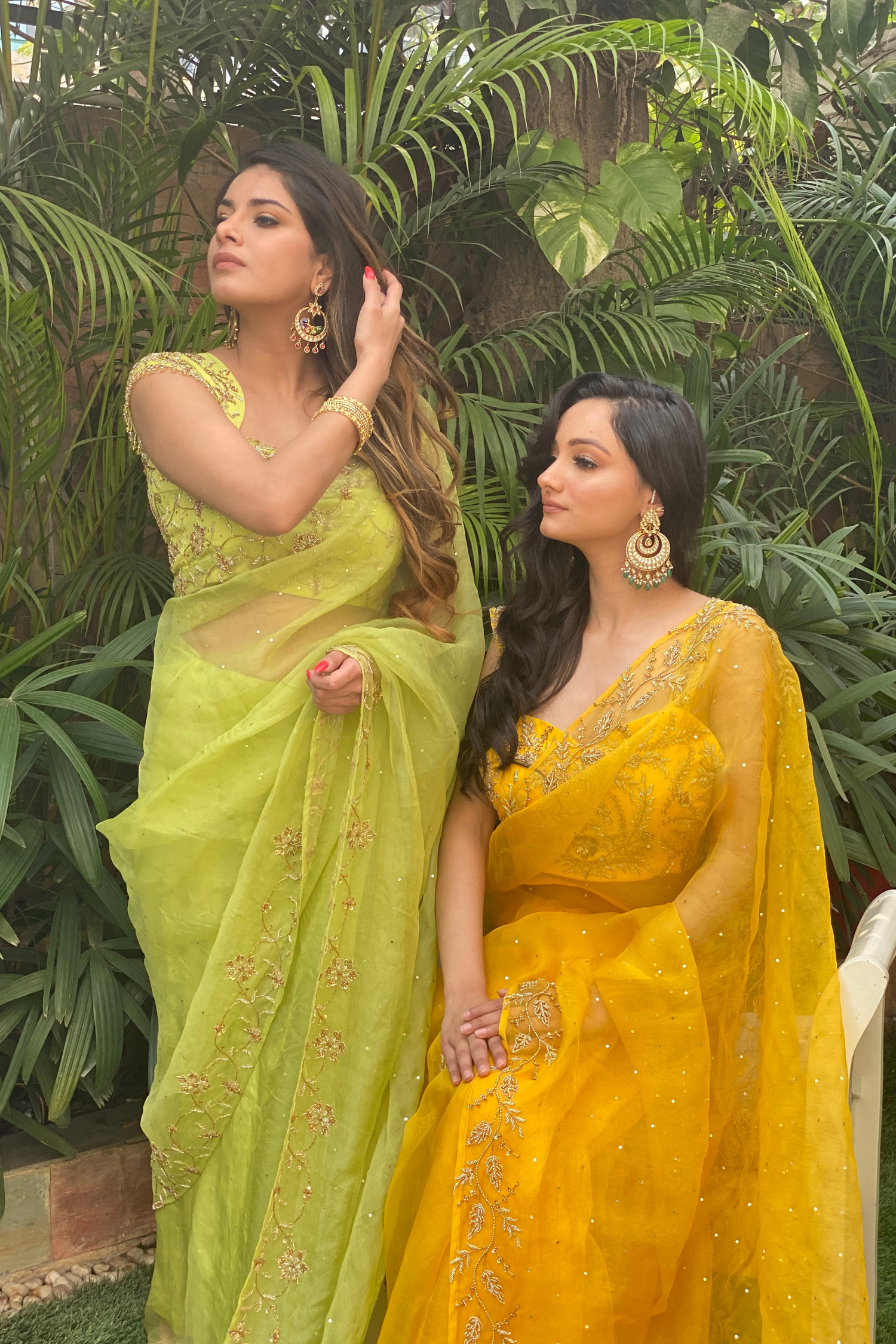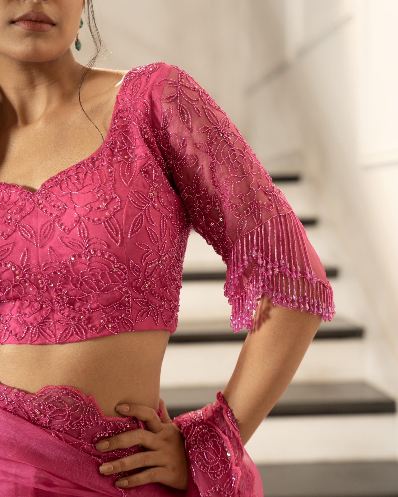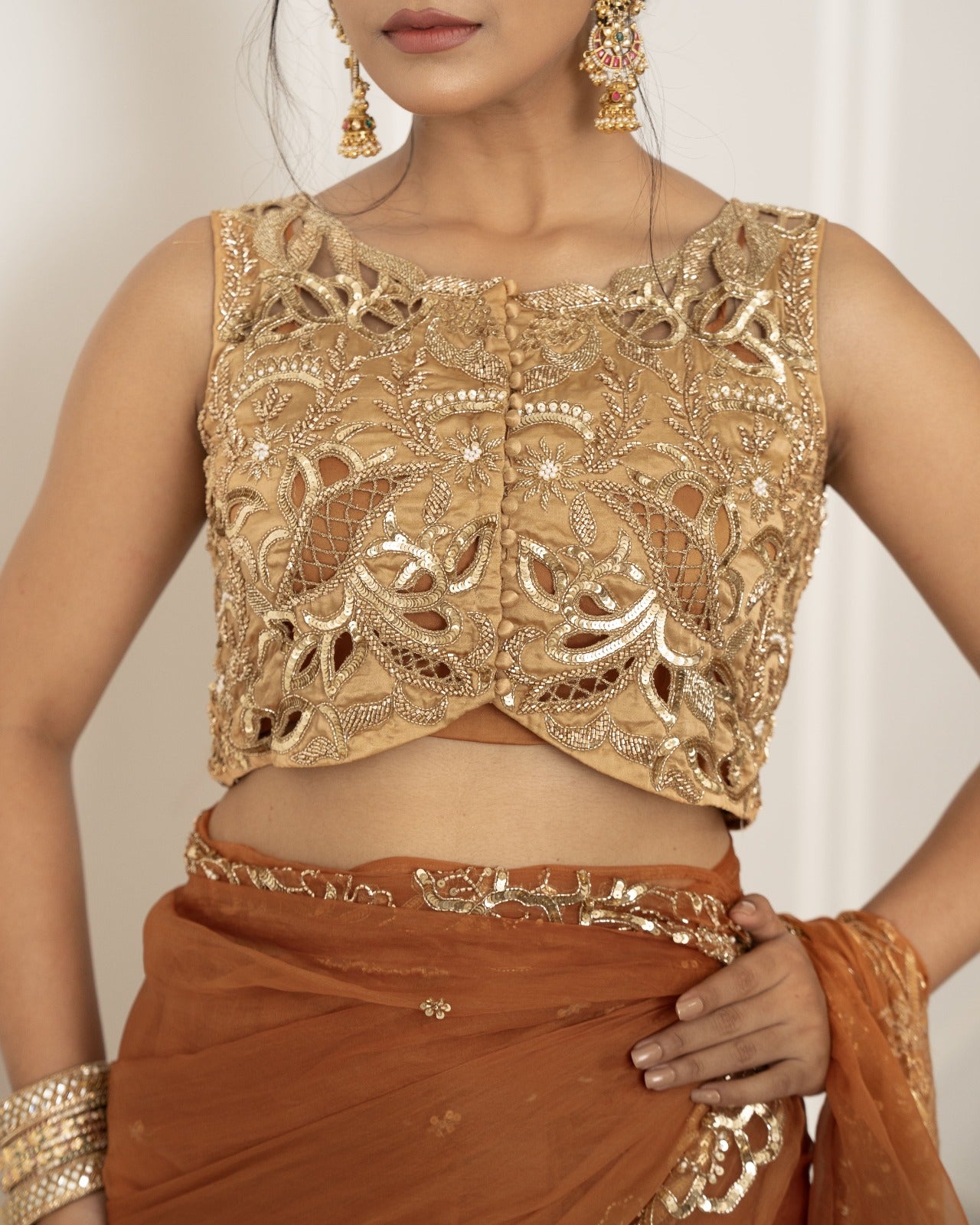 Black rajasthani embroidered mirrorwork saree and blouse set