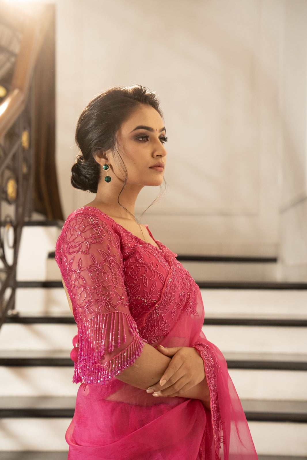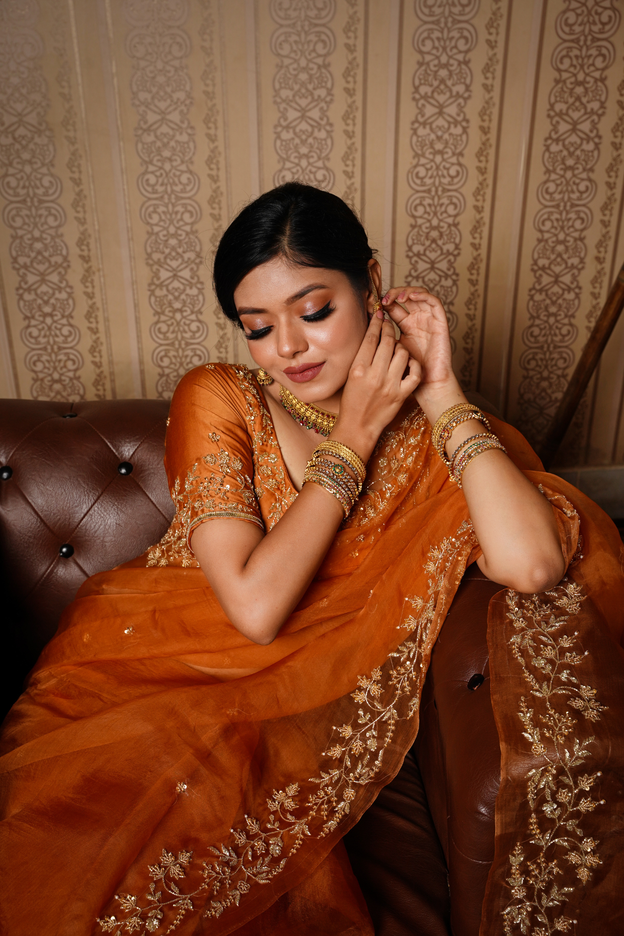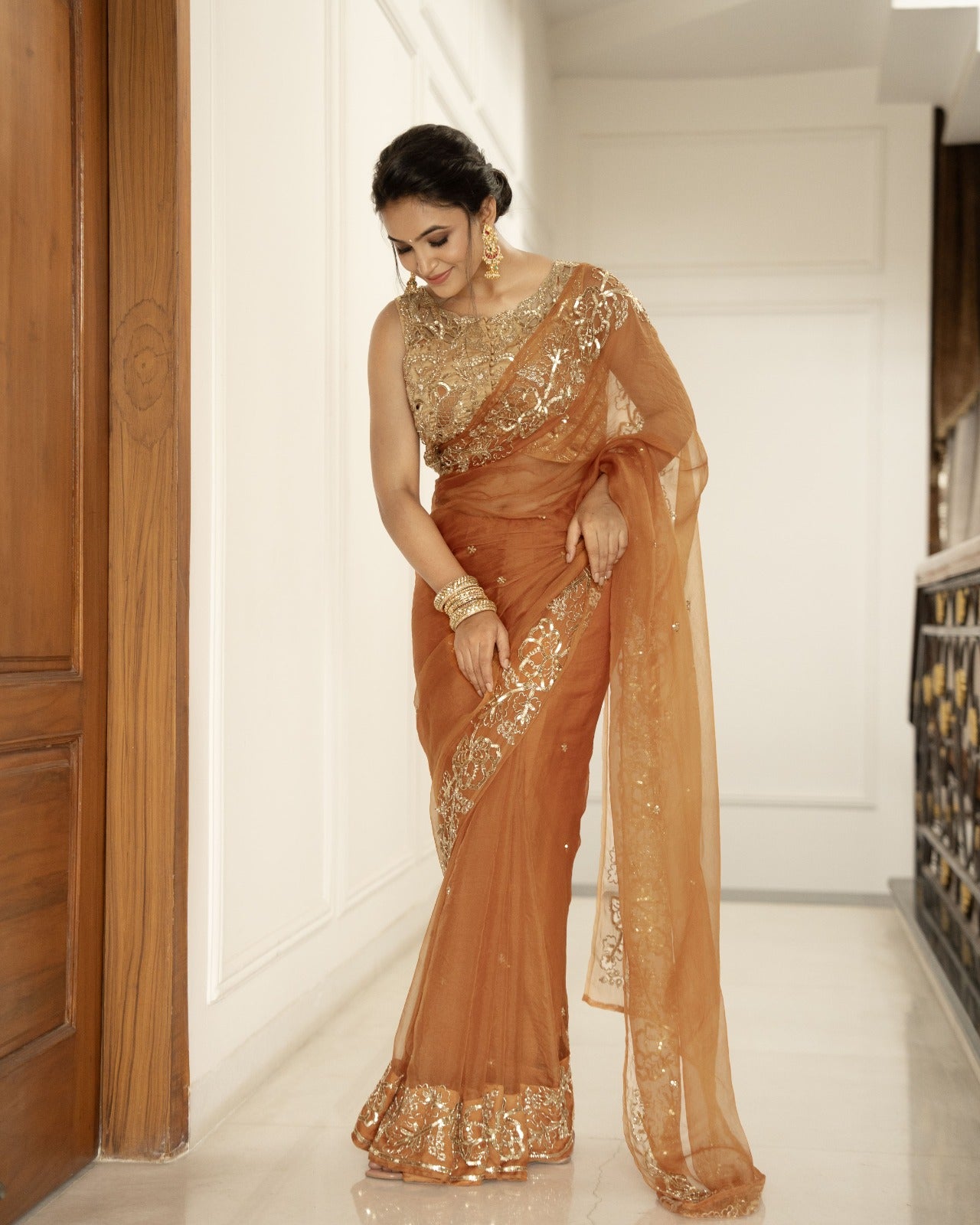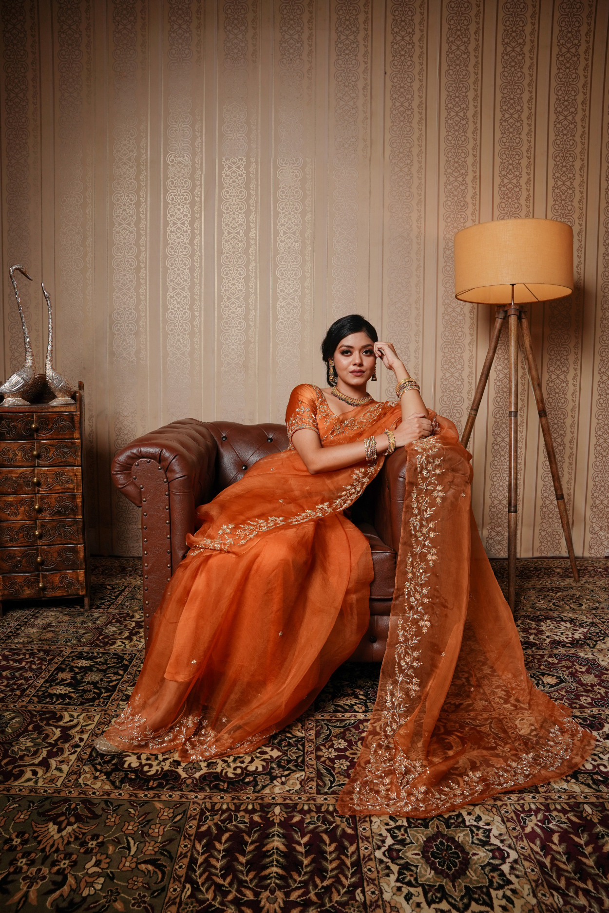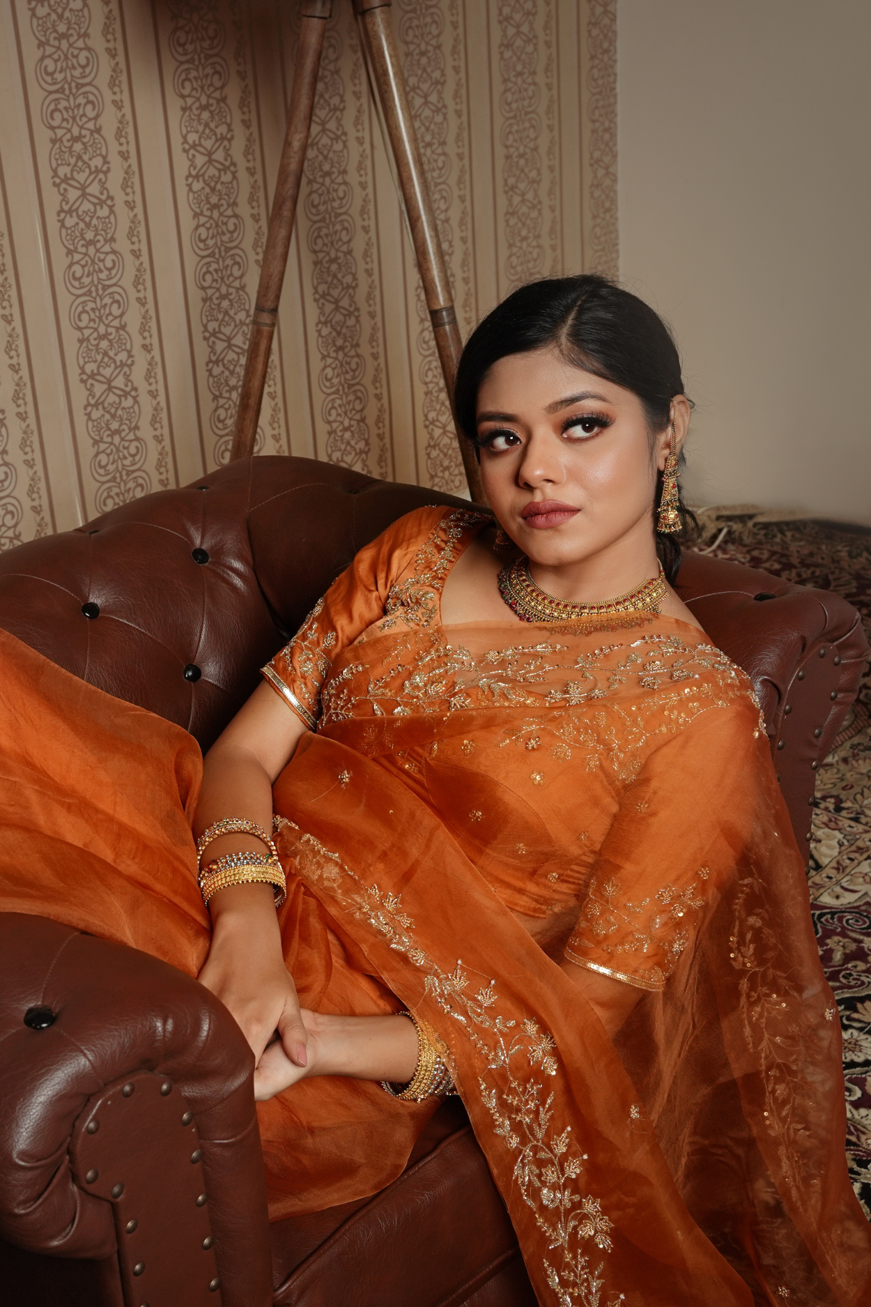 Black rajasthani embroidered mirrorwork saree and blouse set
