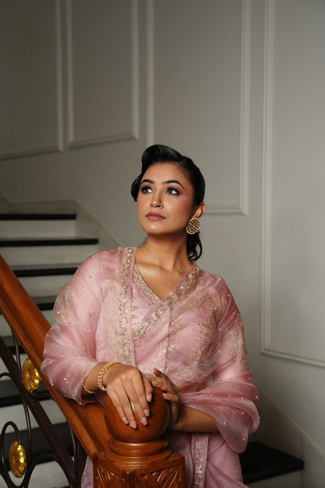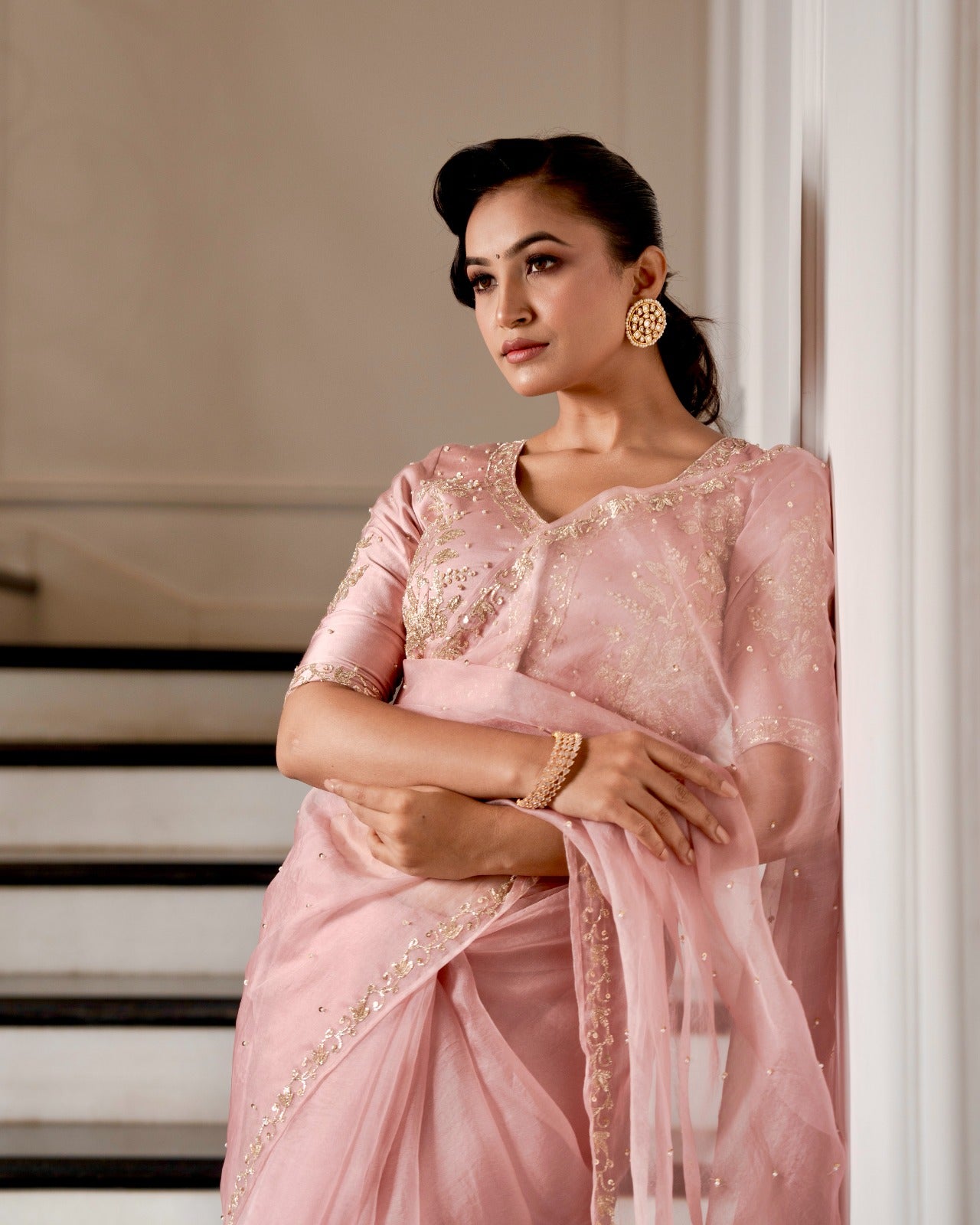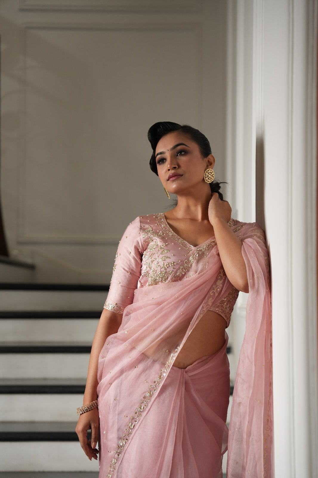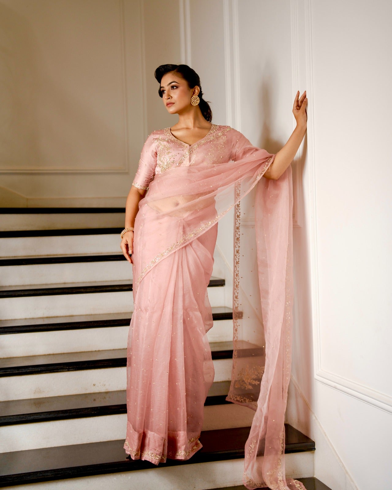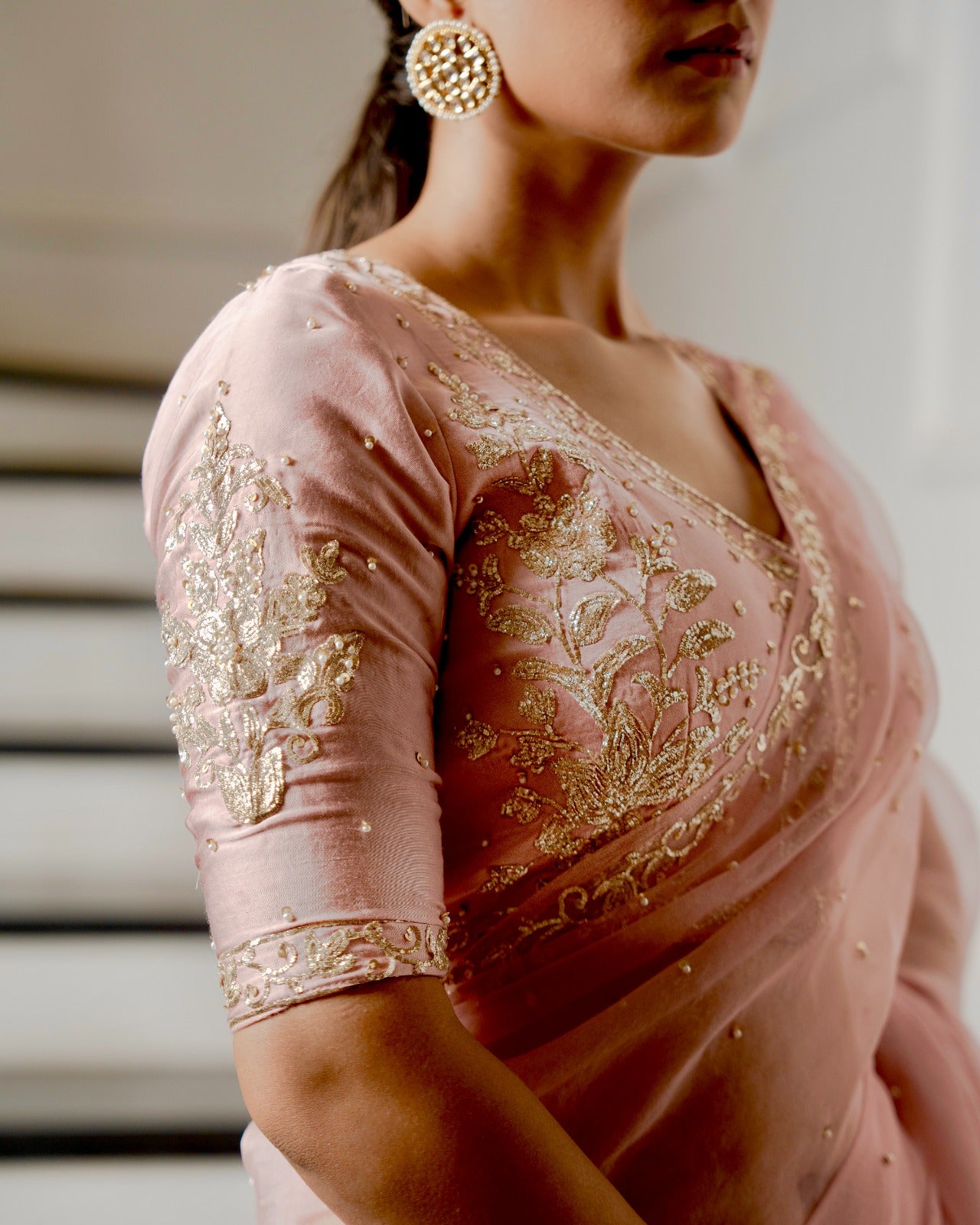 Powder Pink Zardozi Pitta Work Saree