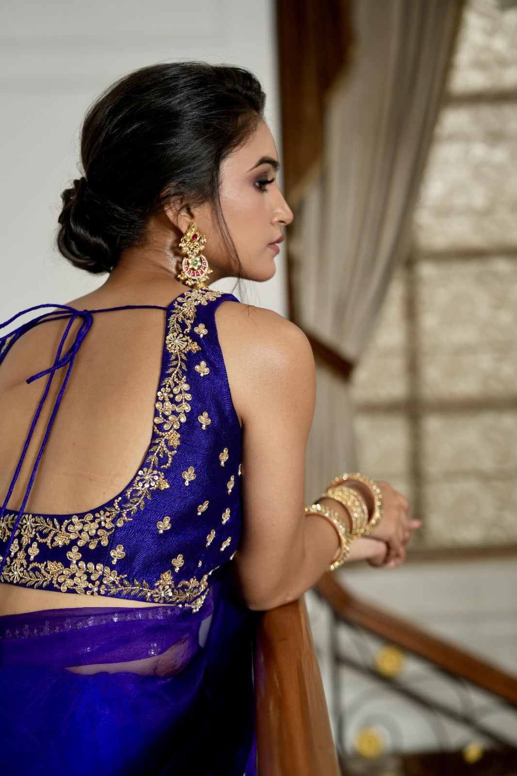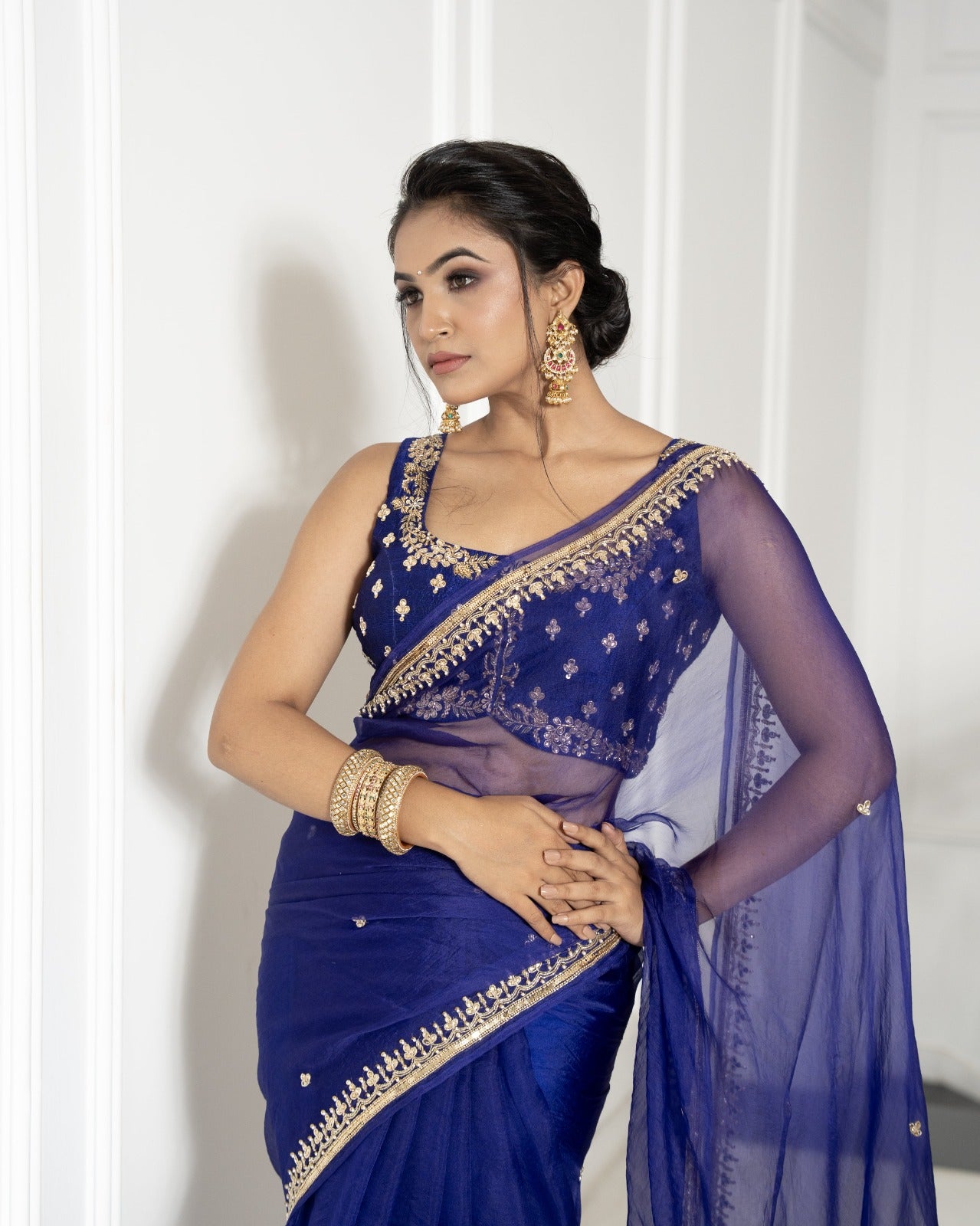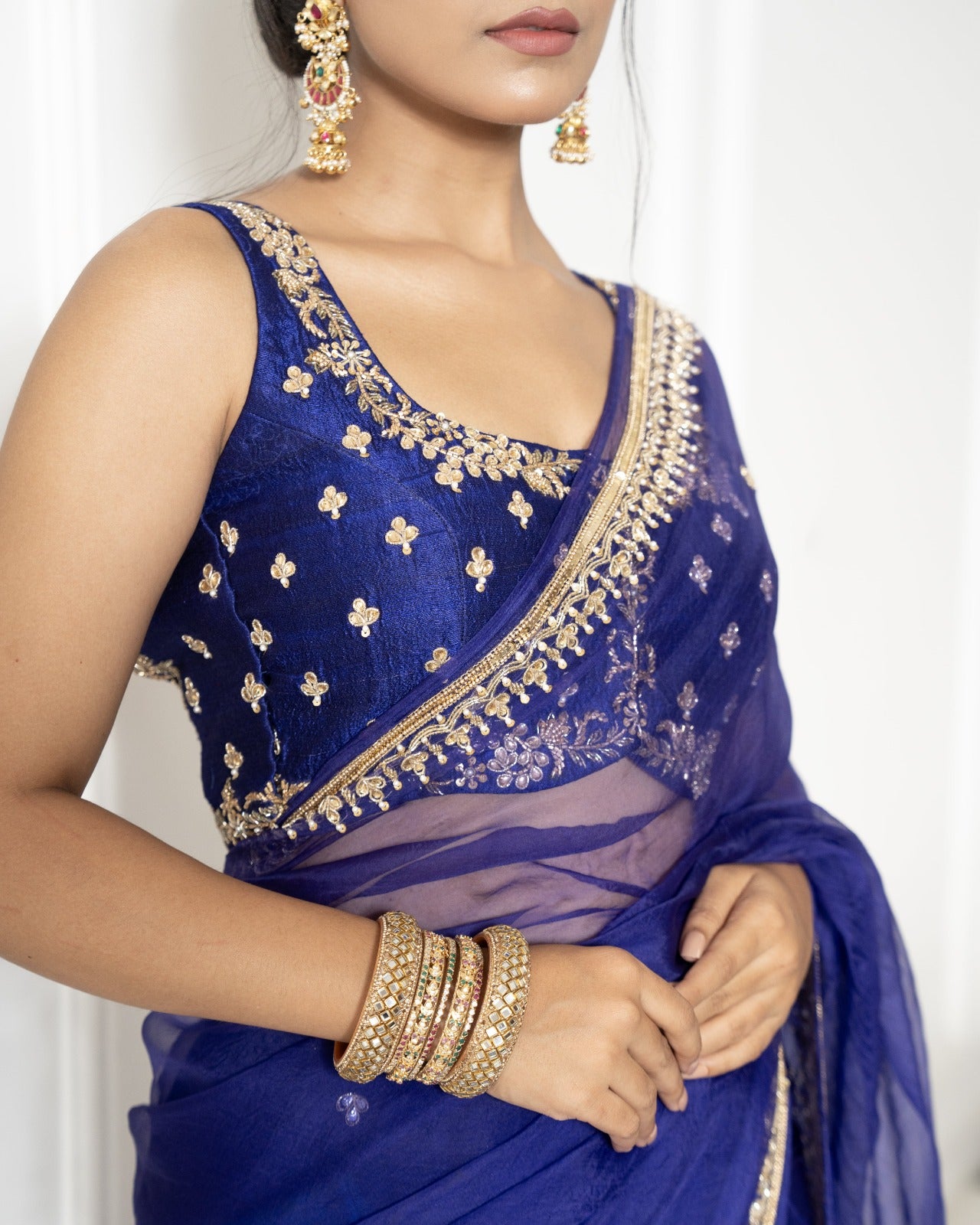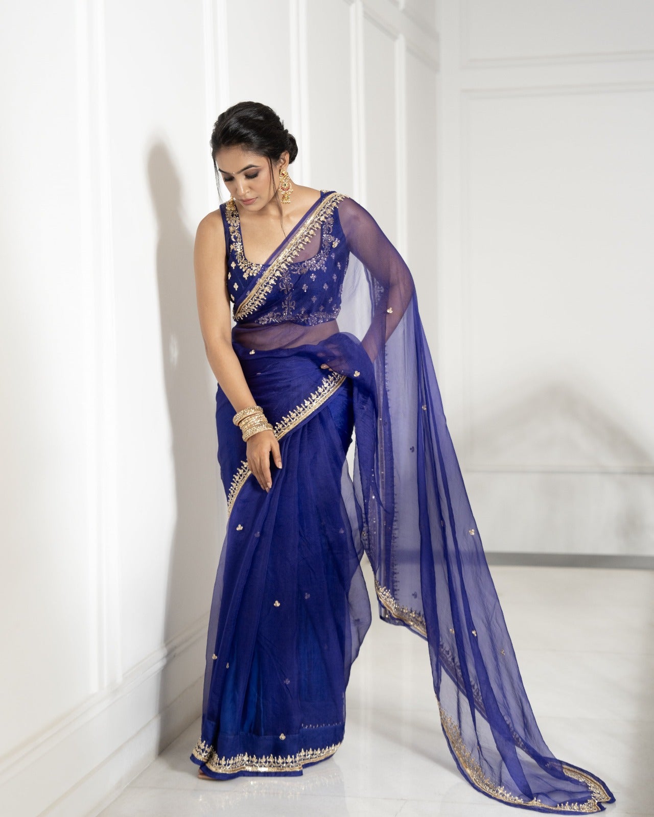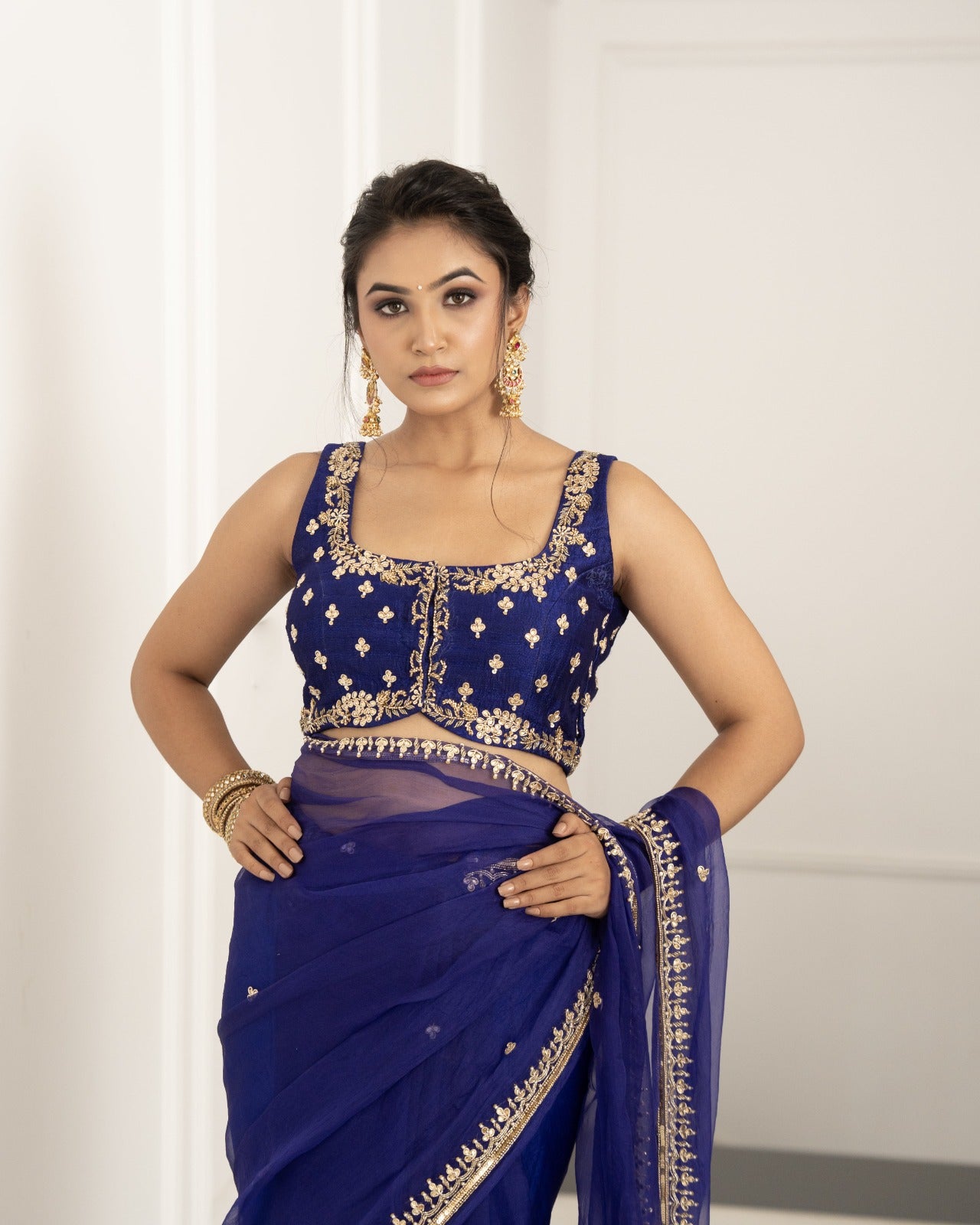 Indigo blue saree and blouse set