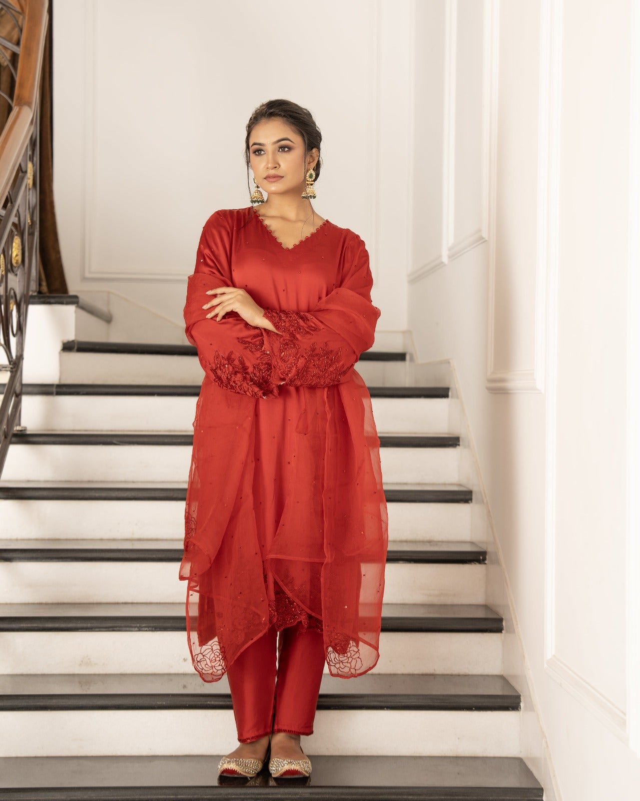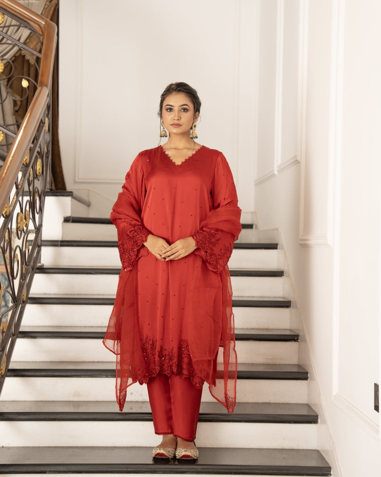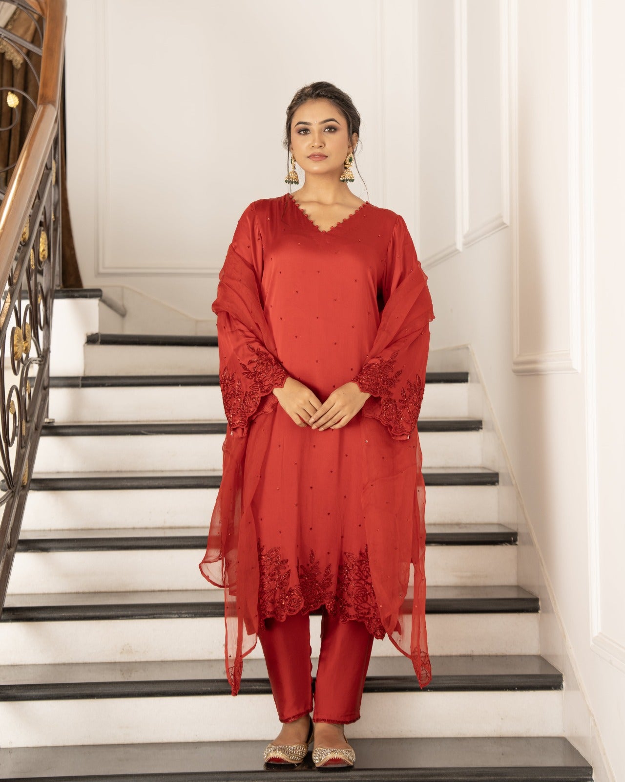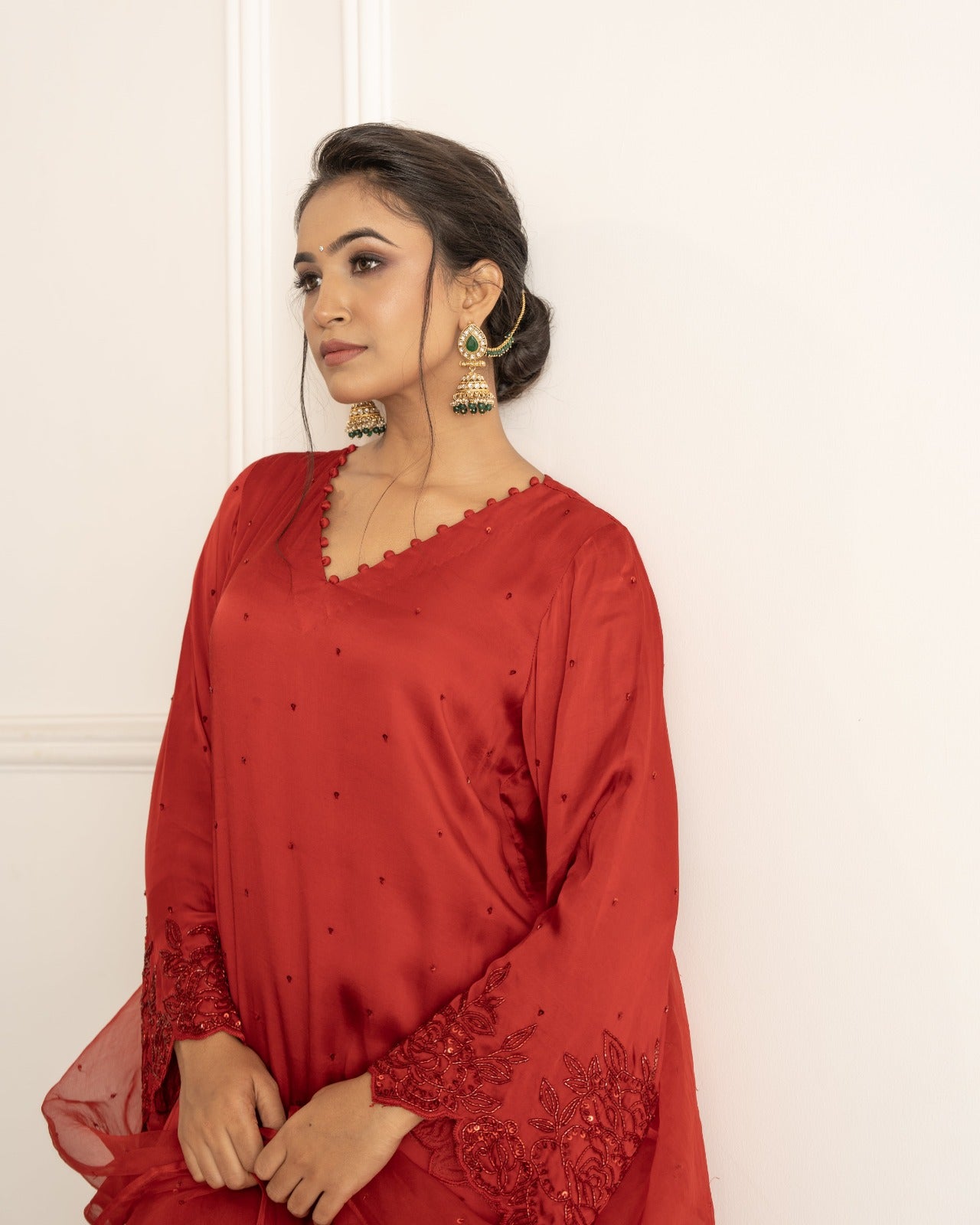 Bright red and raani satin silk suit