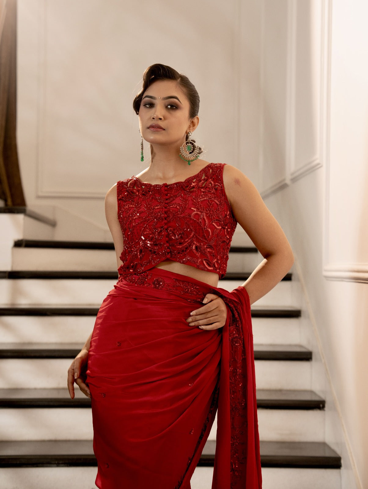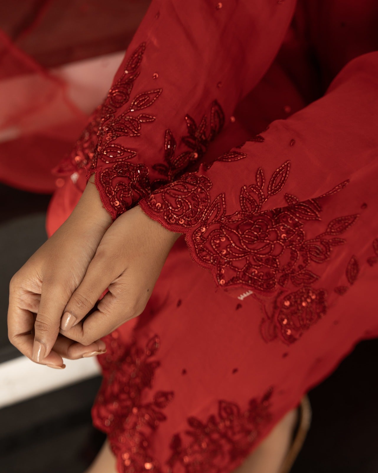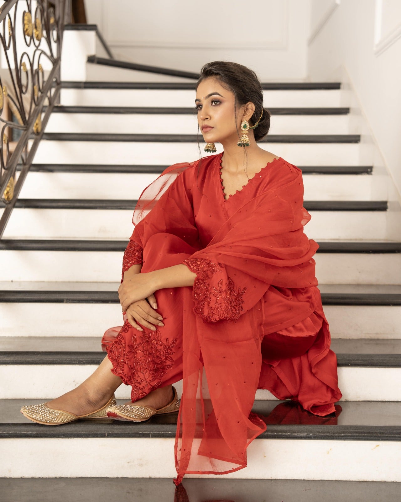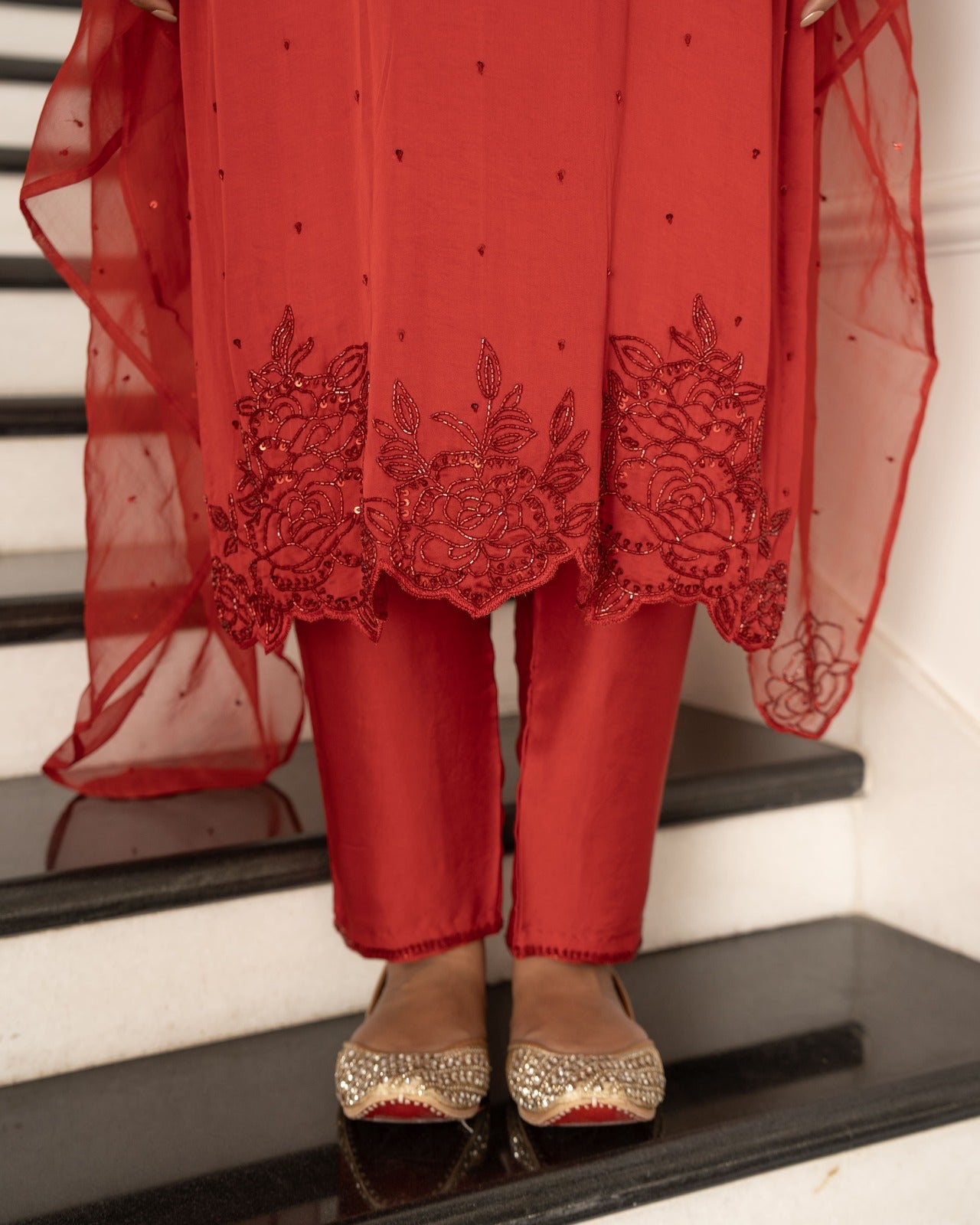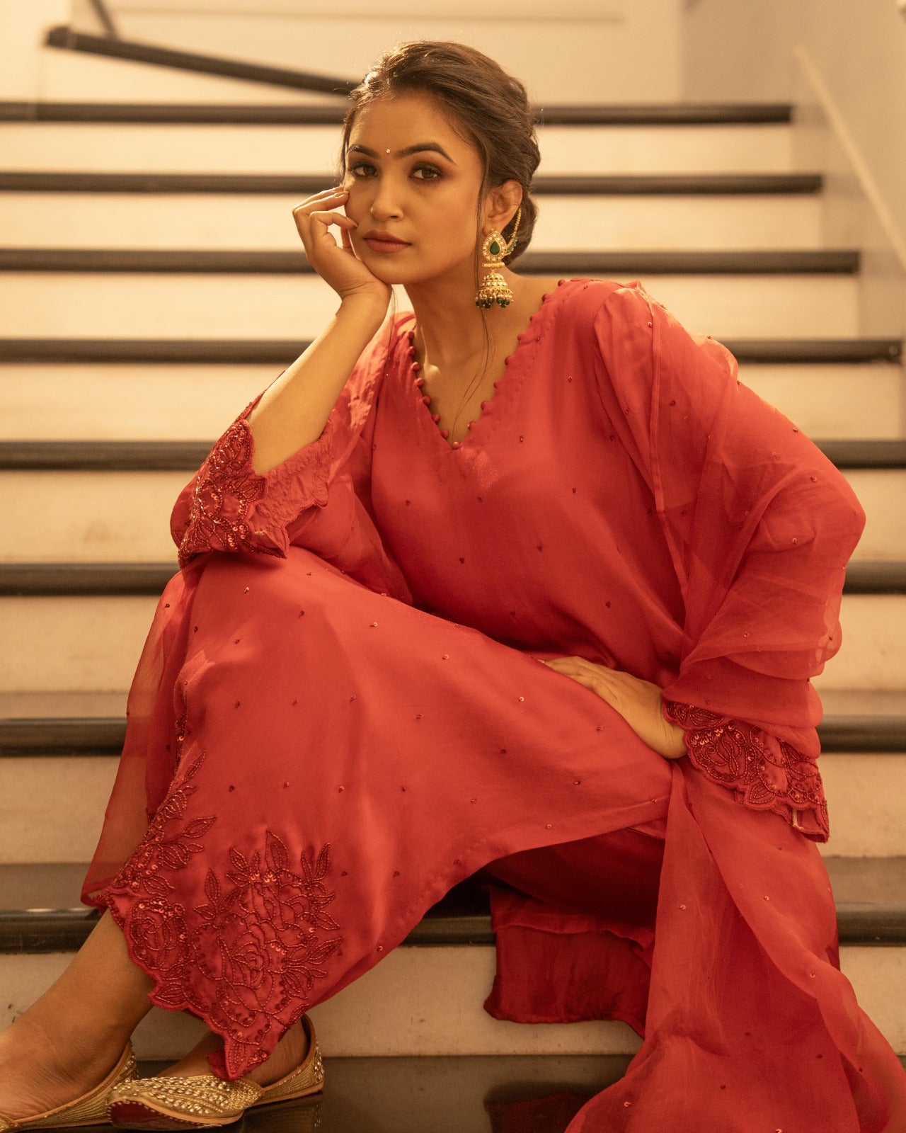 Bright red and raani satin silk suit