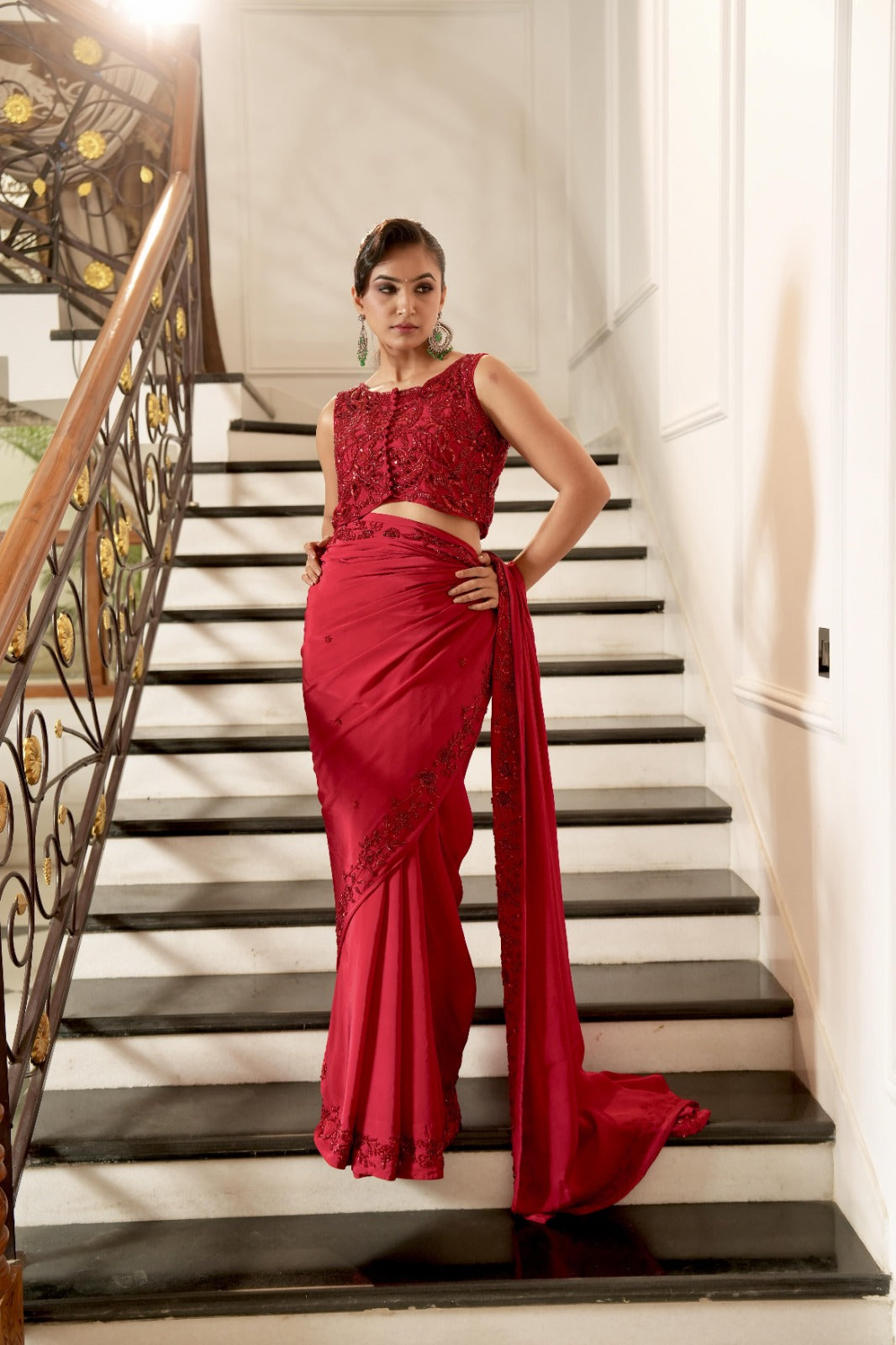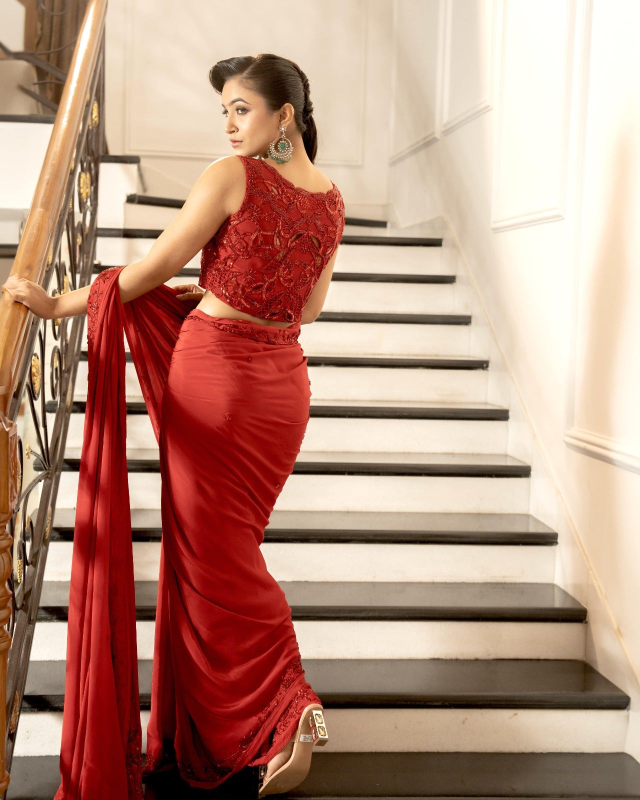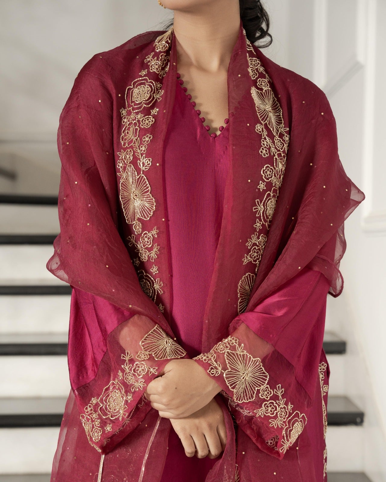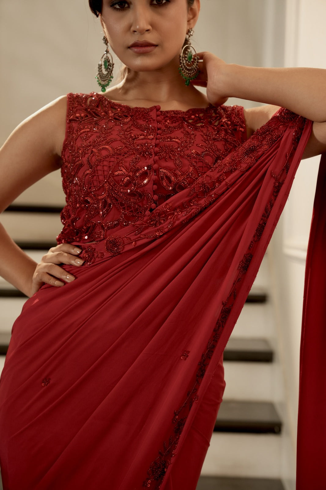 Deep red silk organza saree