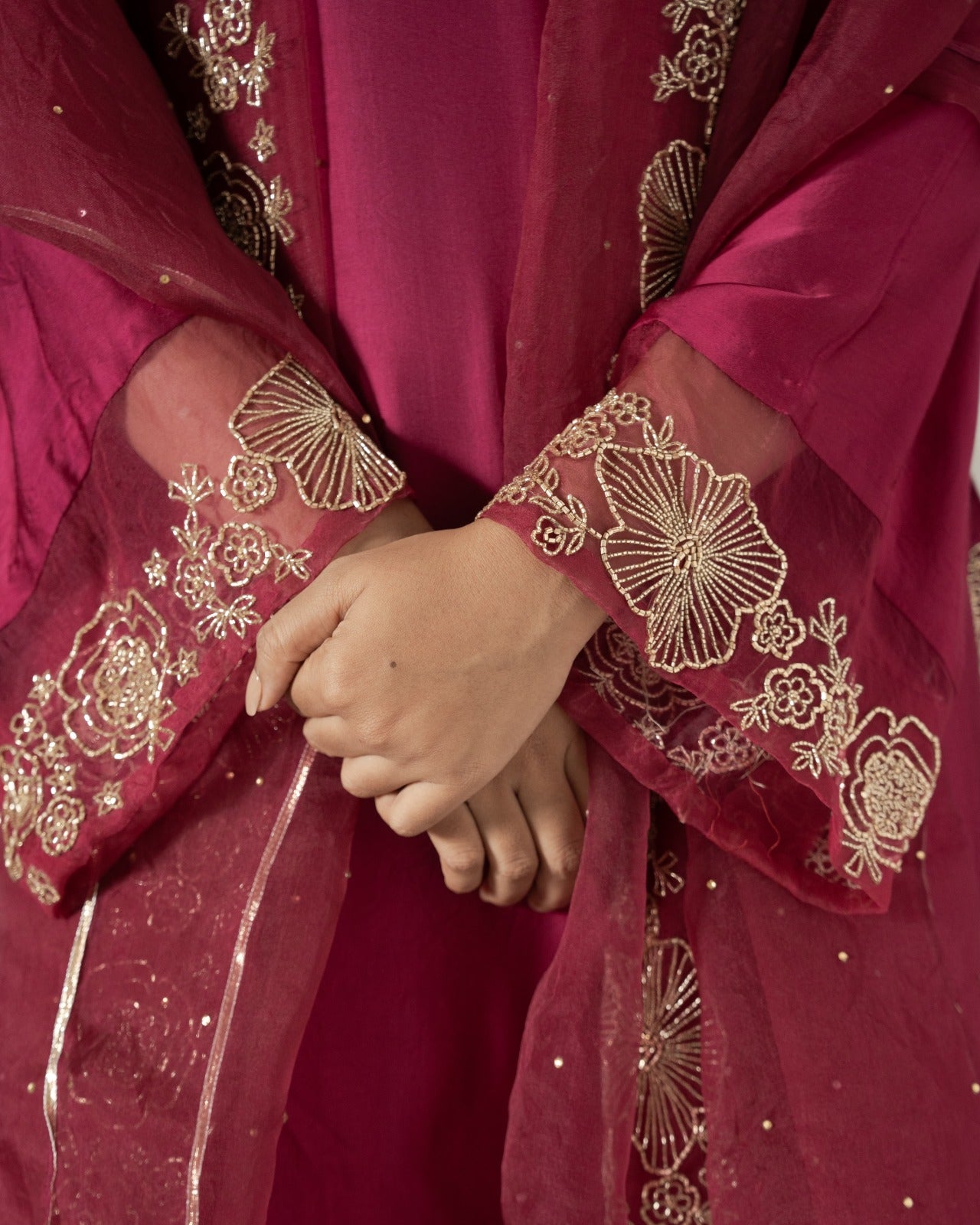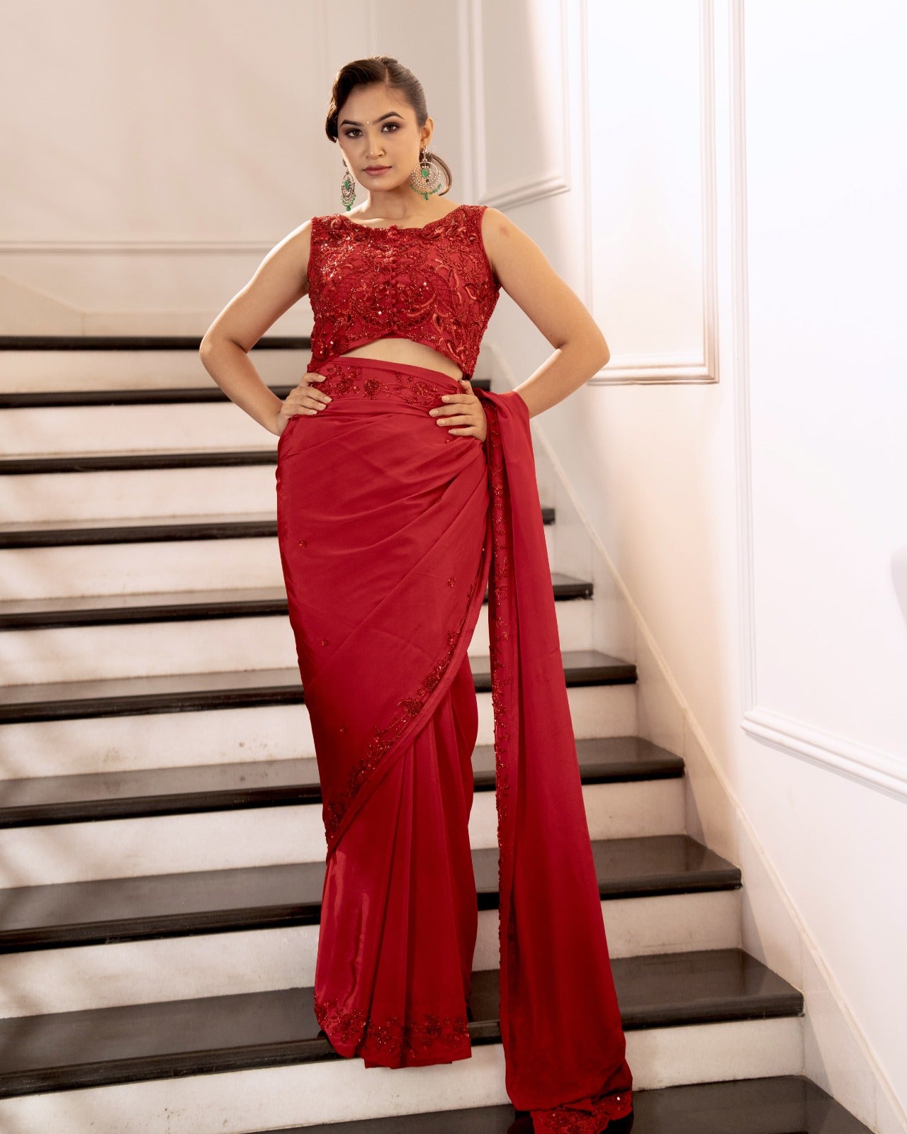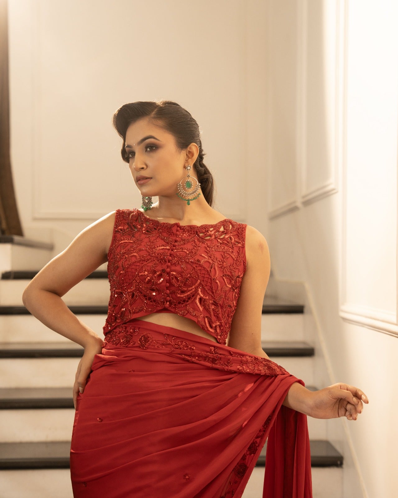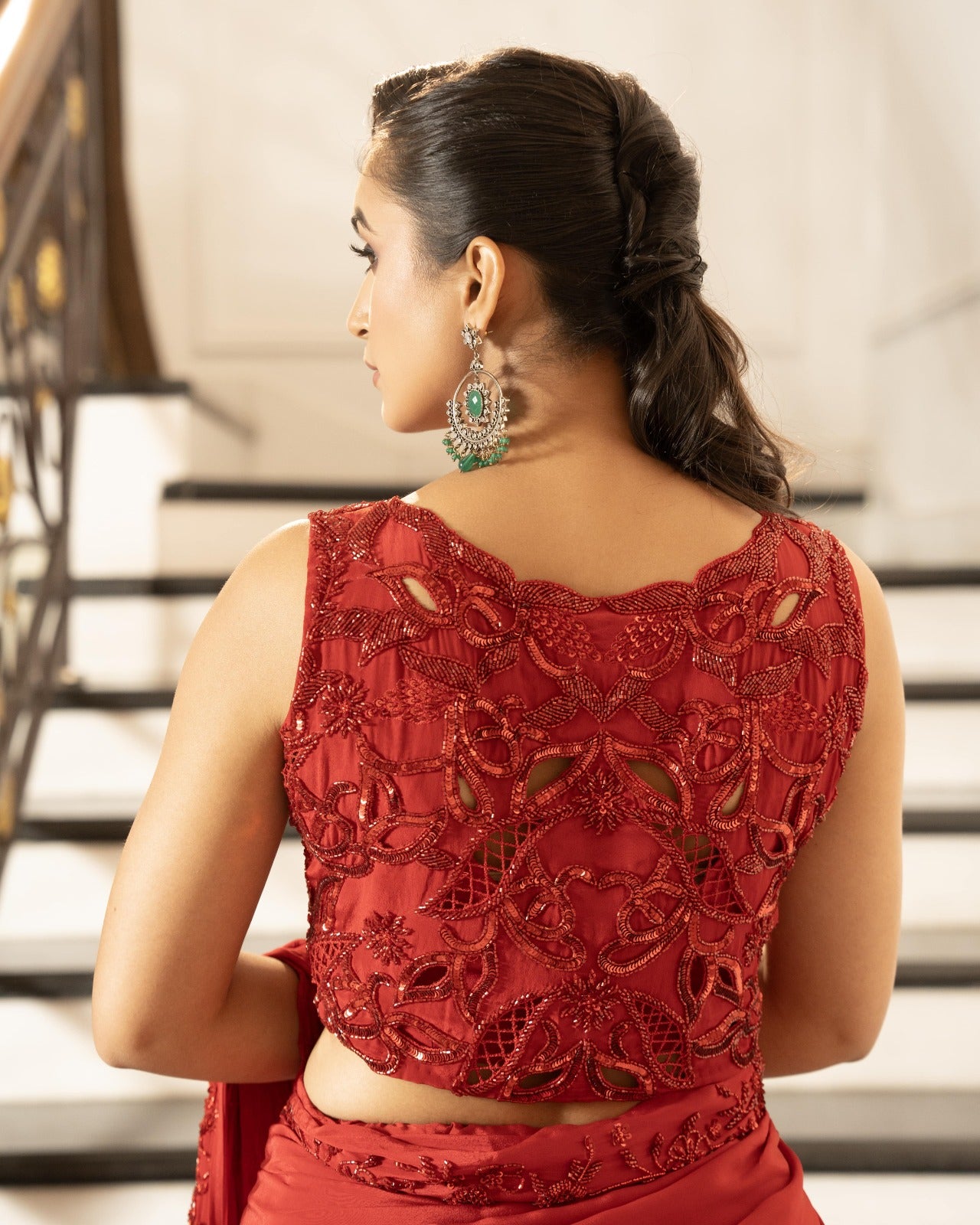 Deep red silk organza saree
