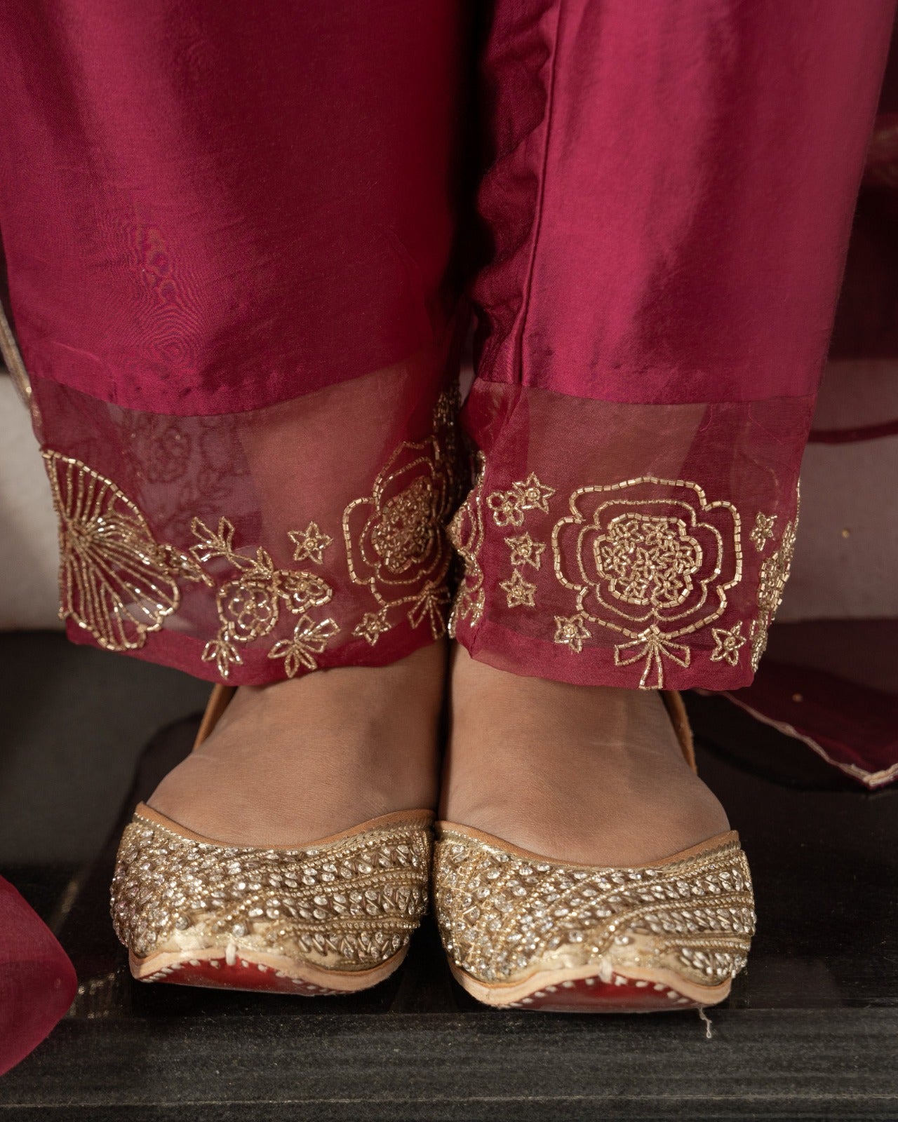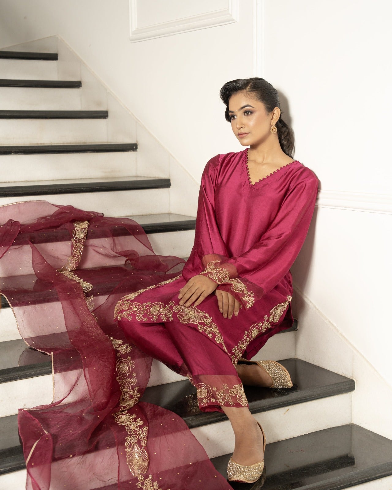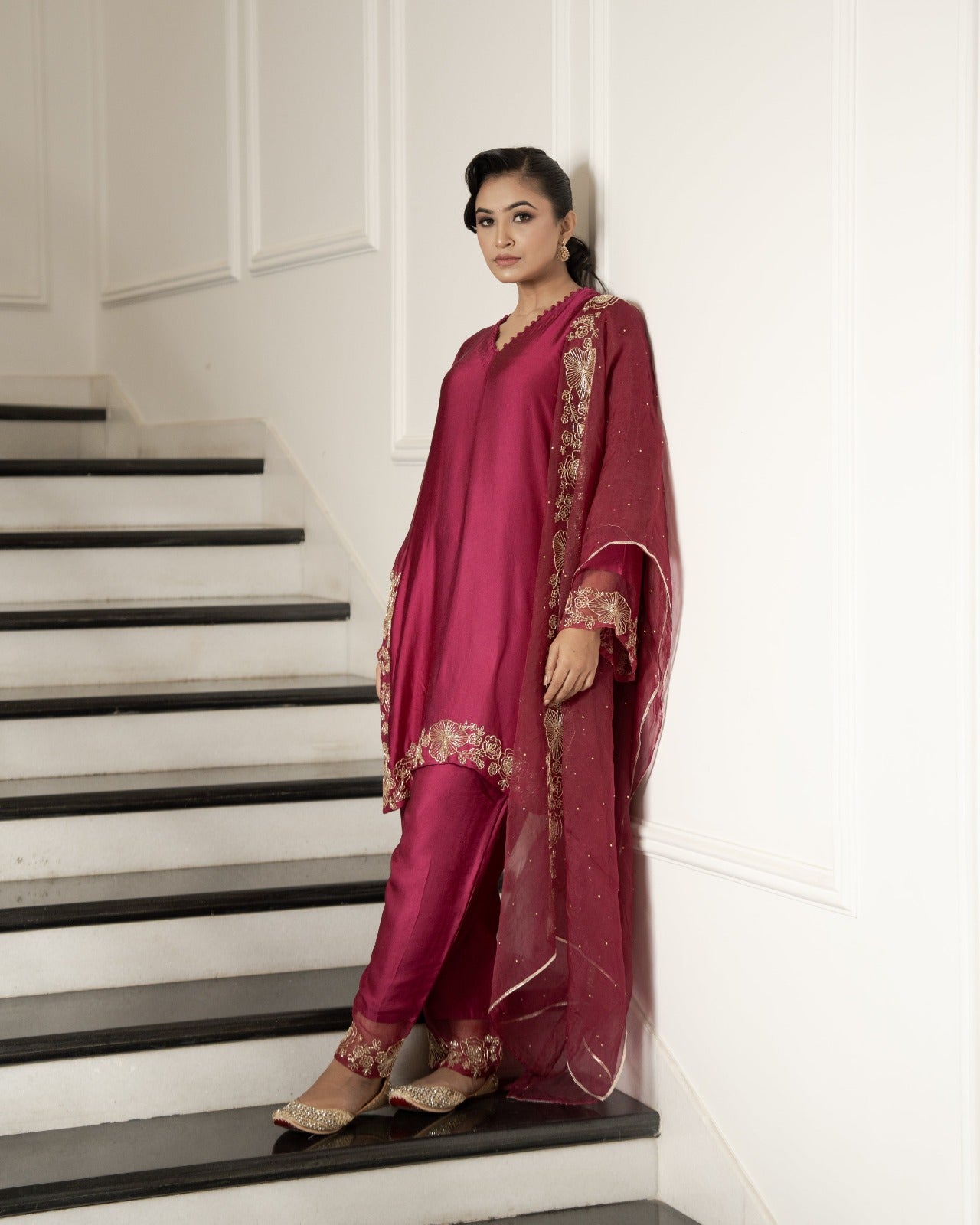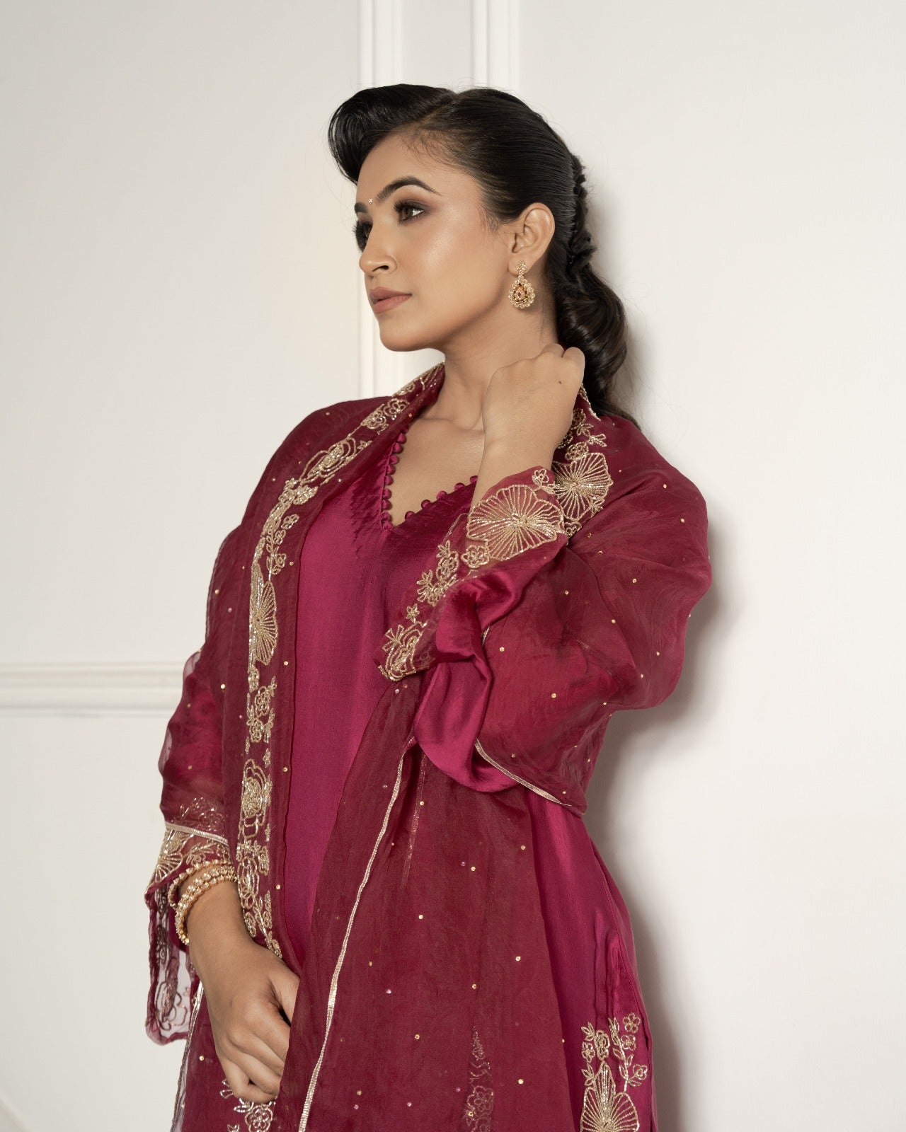 Maroon satin silk suit set