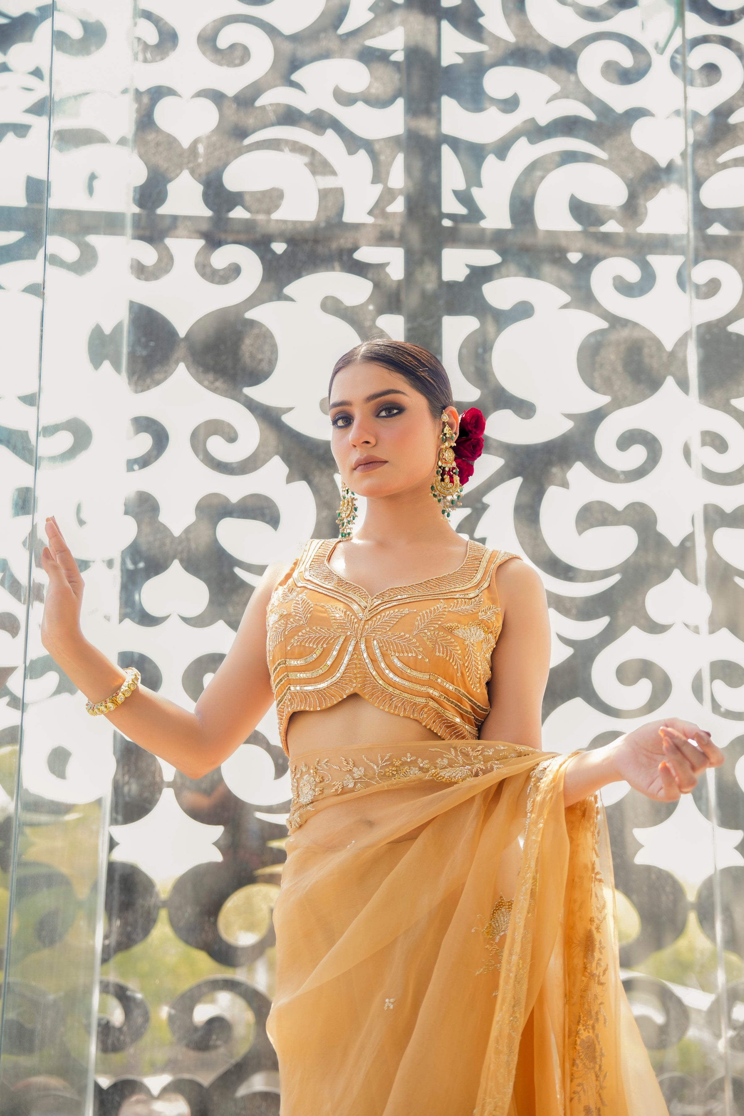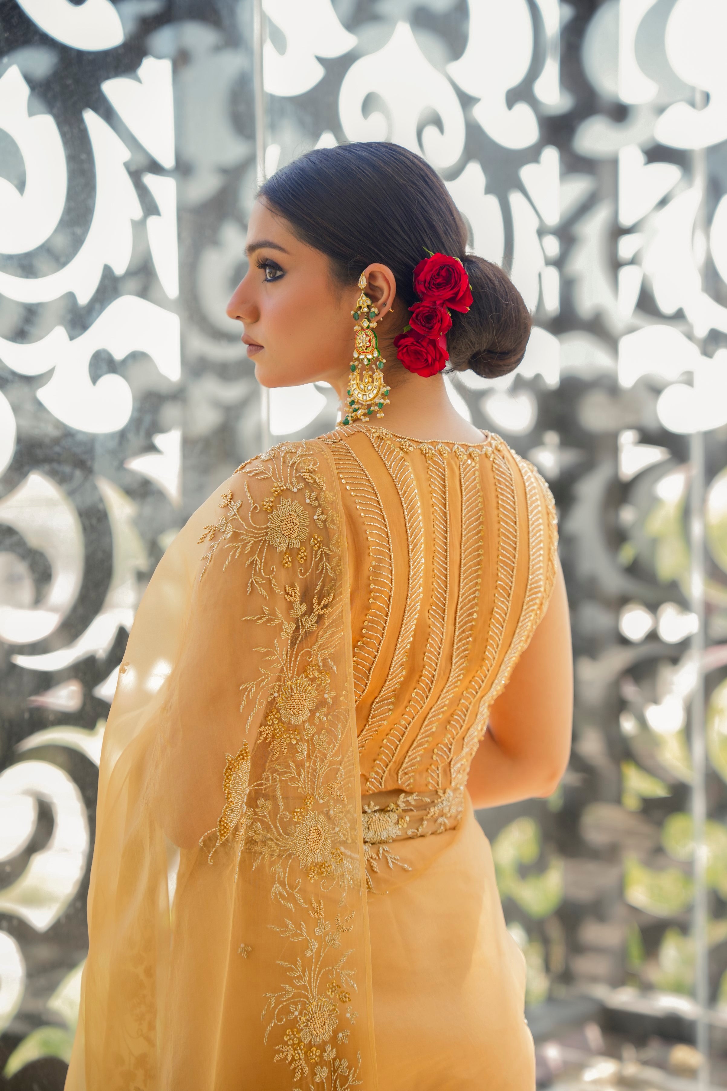 Hand embroidered zardozi, cutdana, beads and sequin work