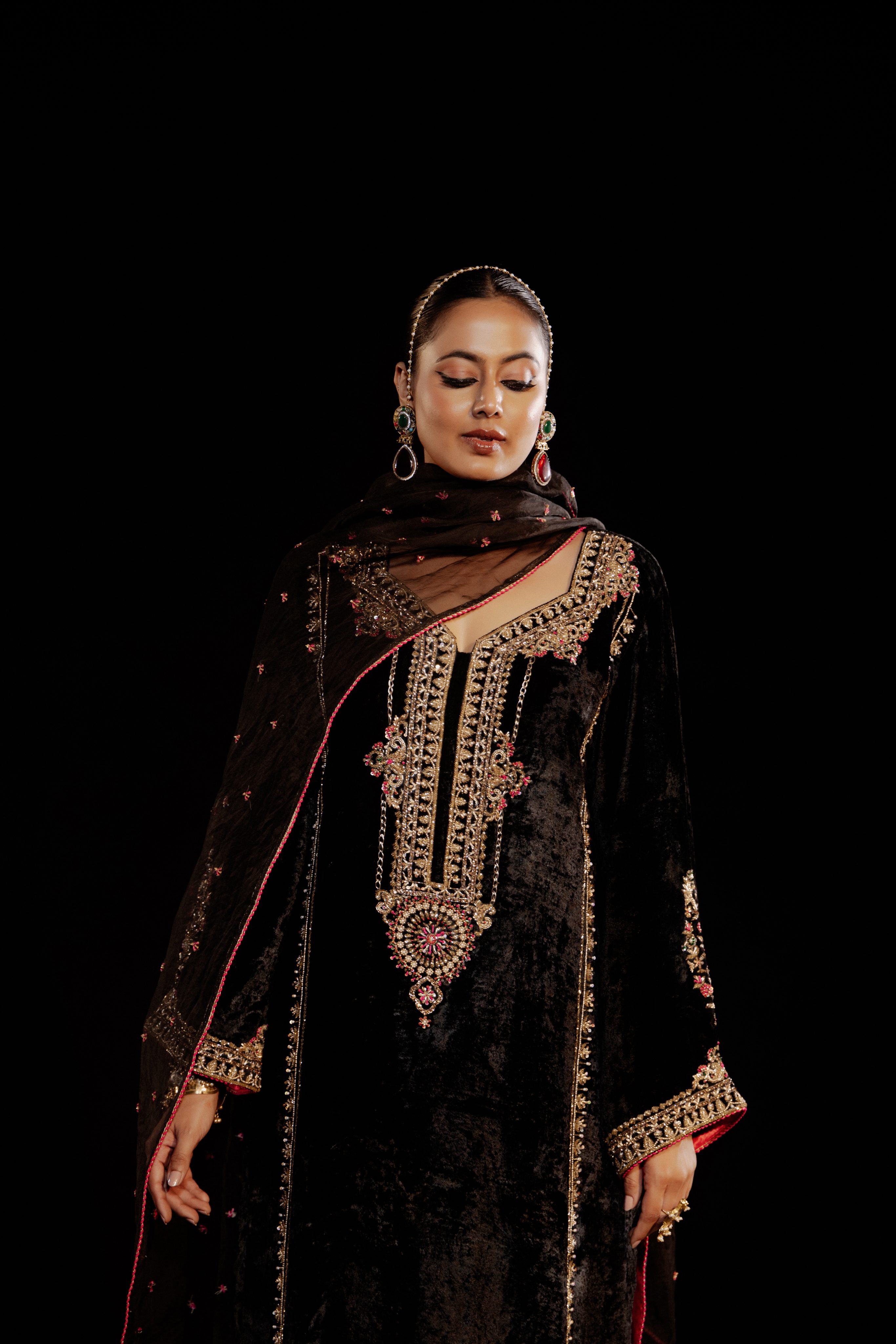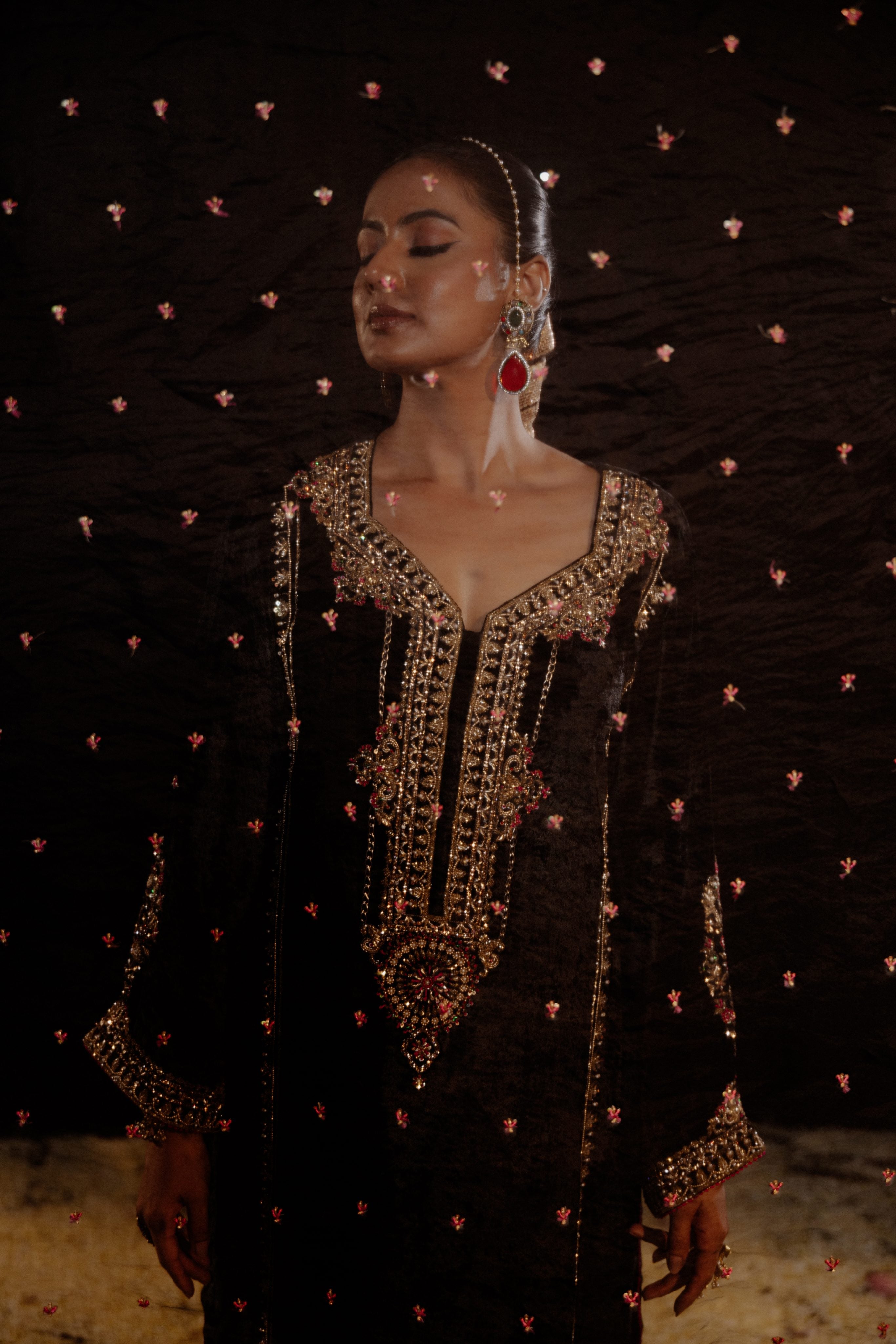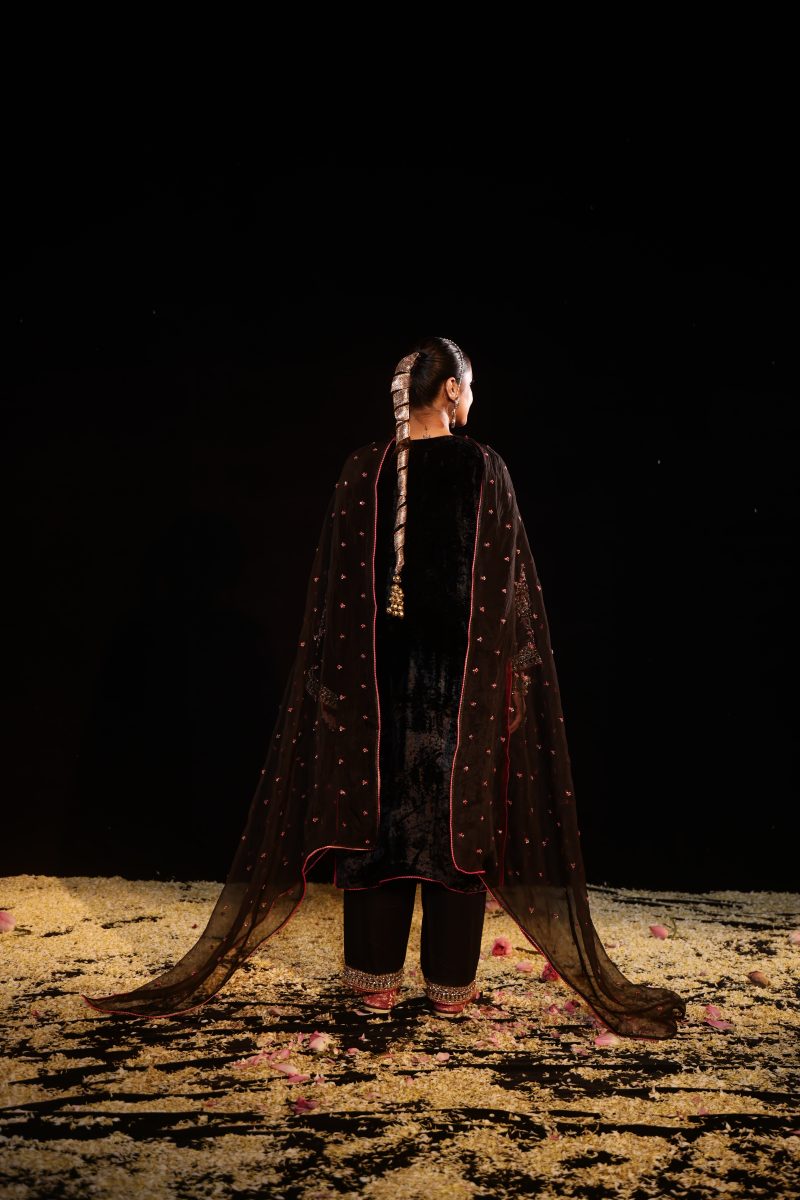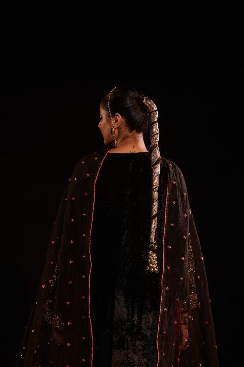 BOTTLE GREEN GARLAND NECKLINE KURTA SET