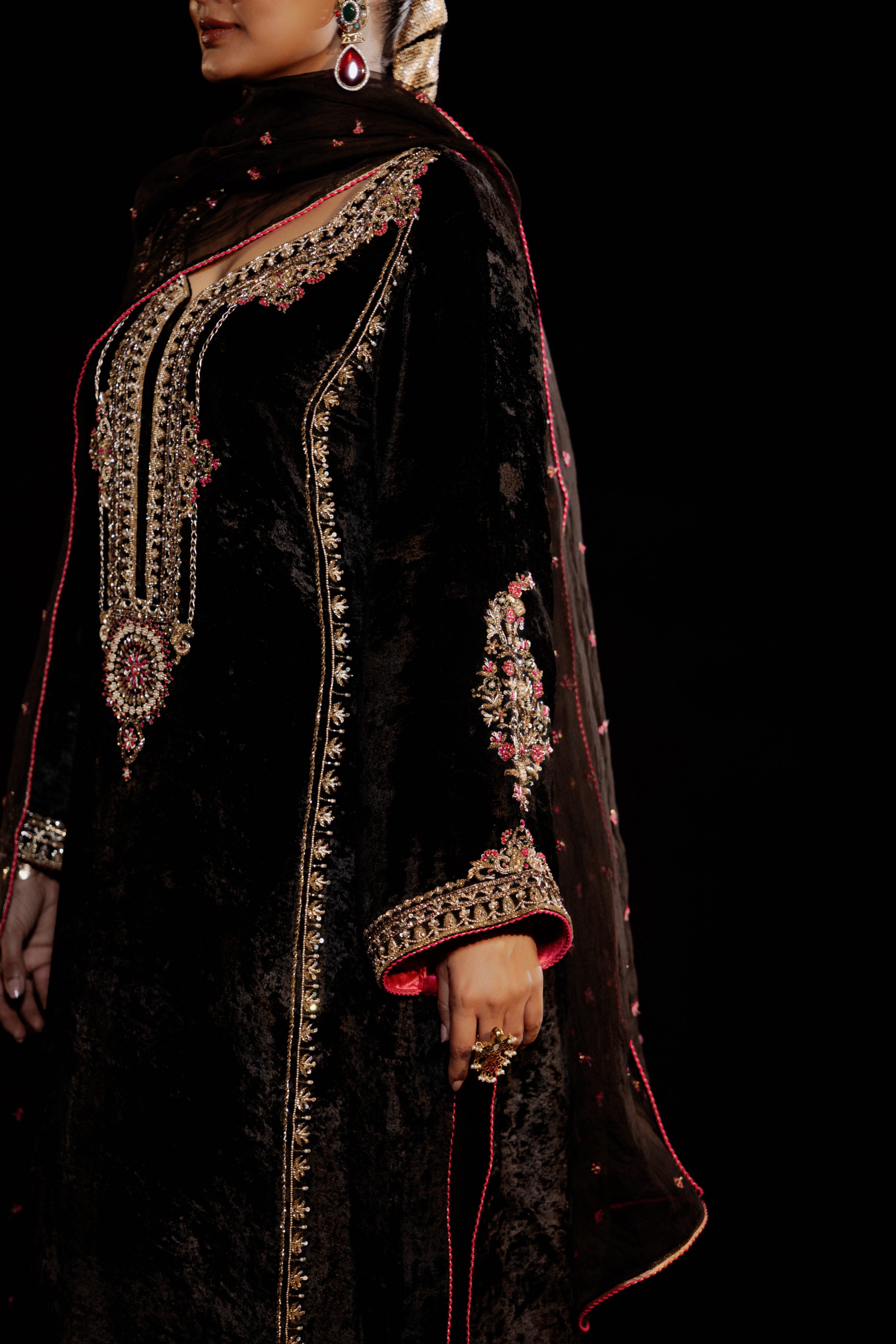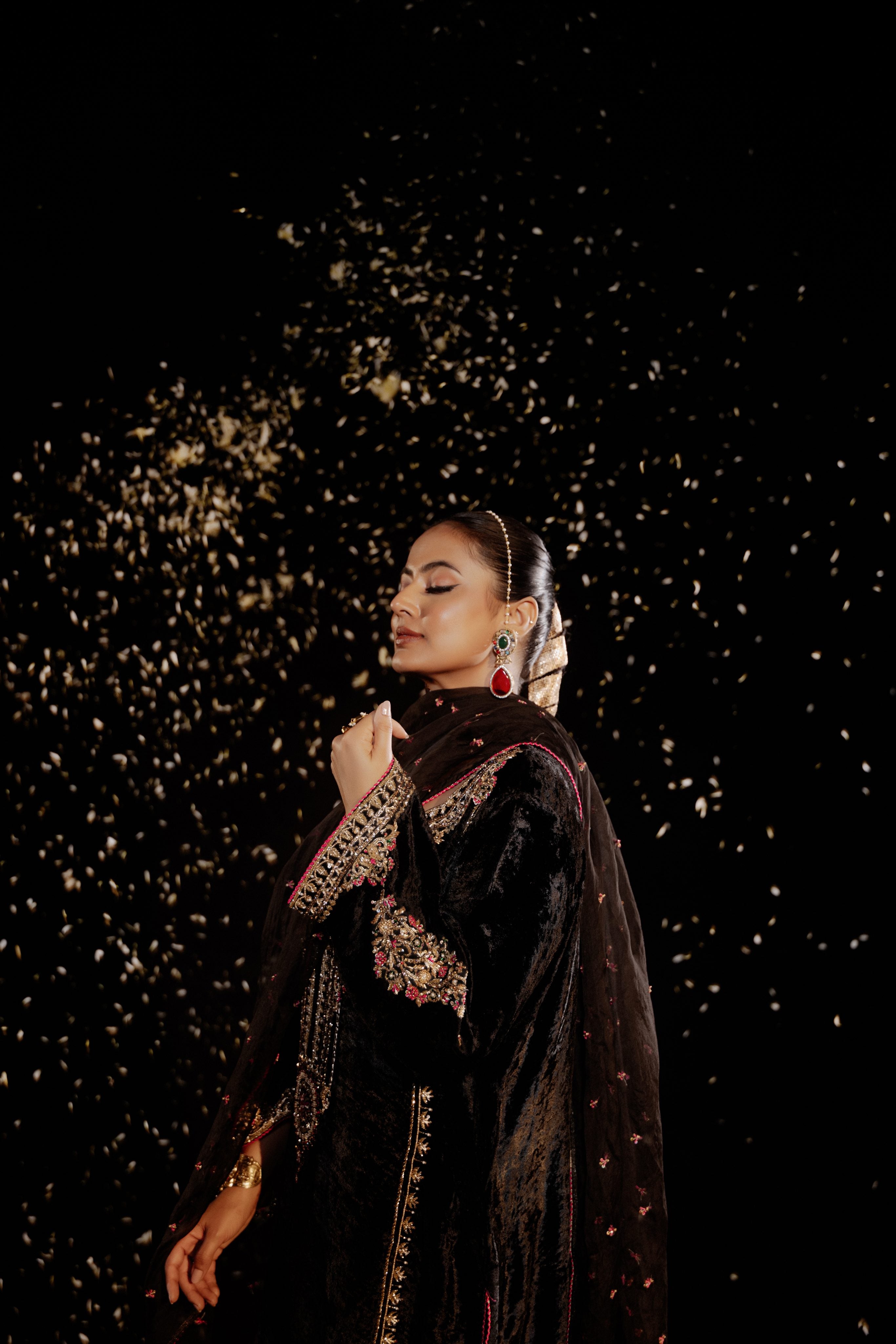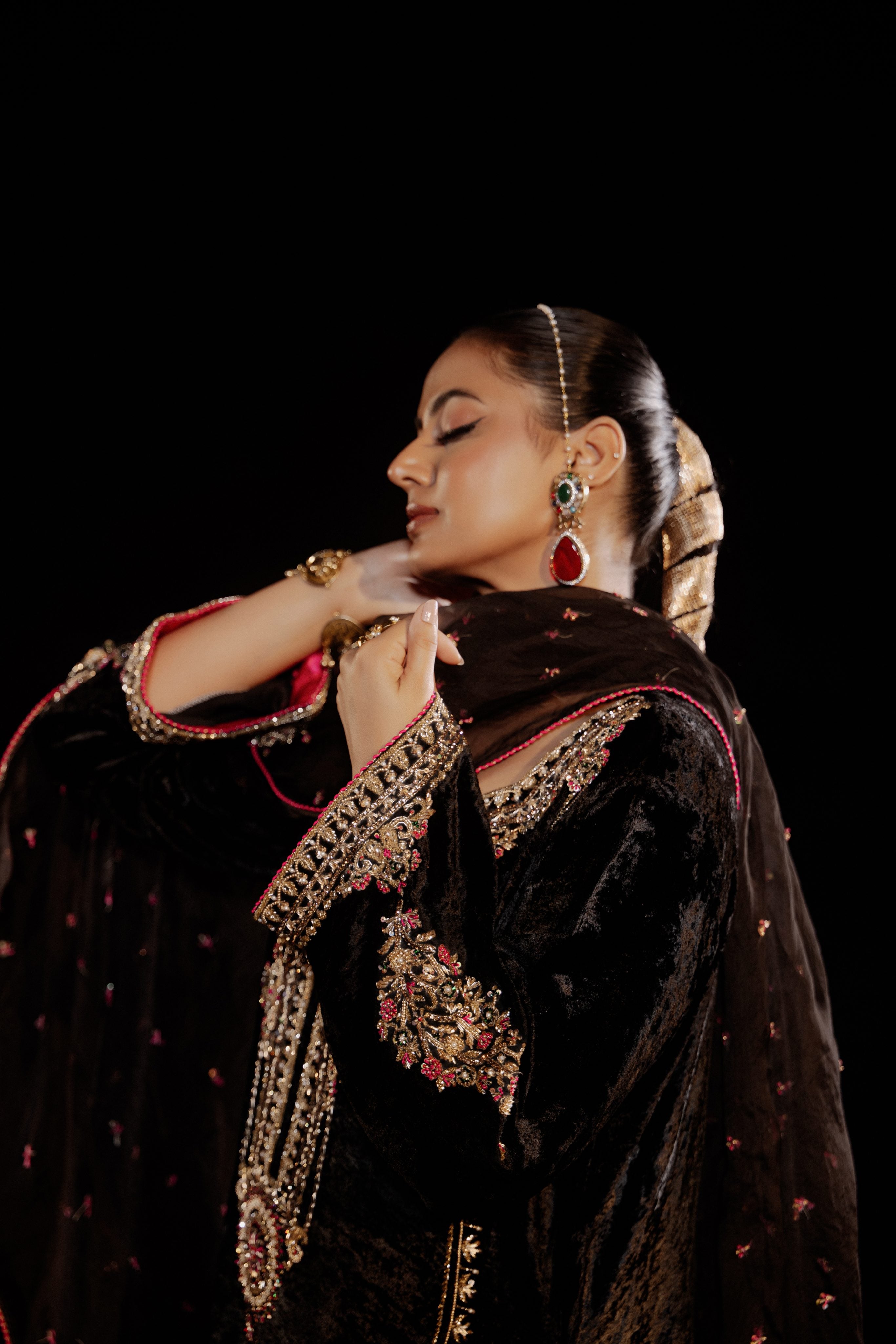 BOTTLE GREEN GARLAND NECKLINE KURTA SET